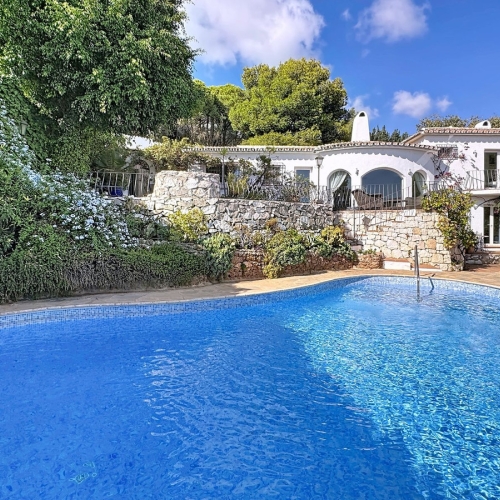 - Udsigt : Hav, Bjerge, Panoramisk, Have, Pool.
