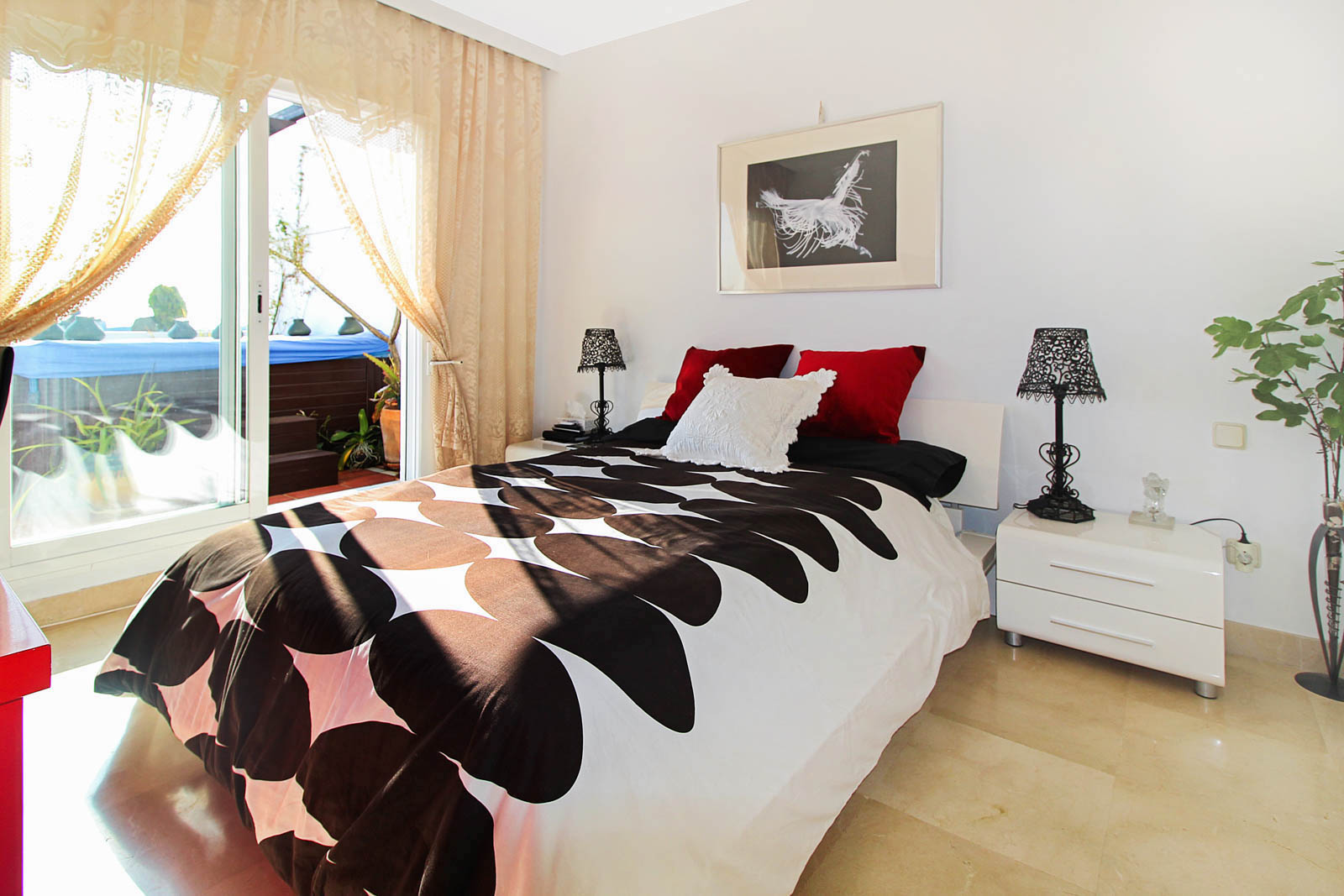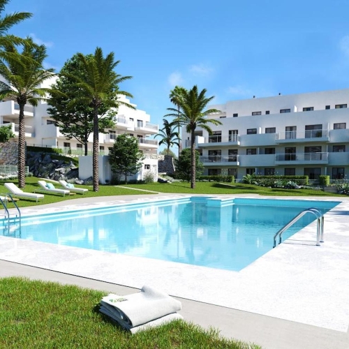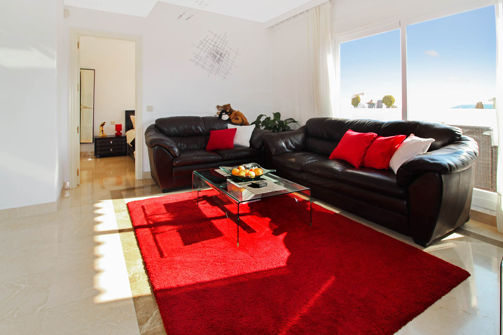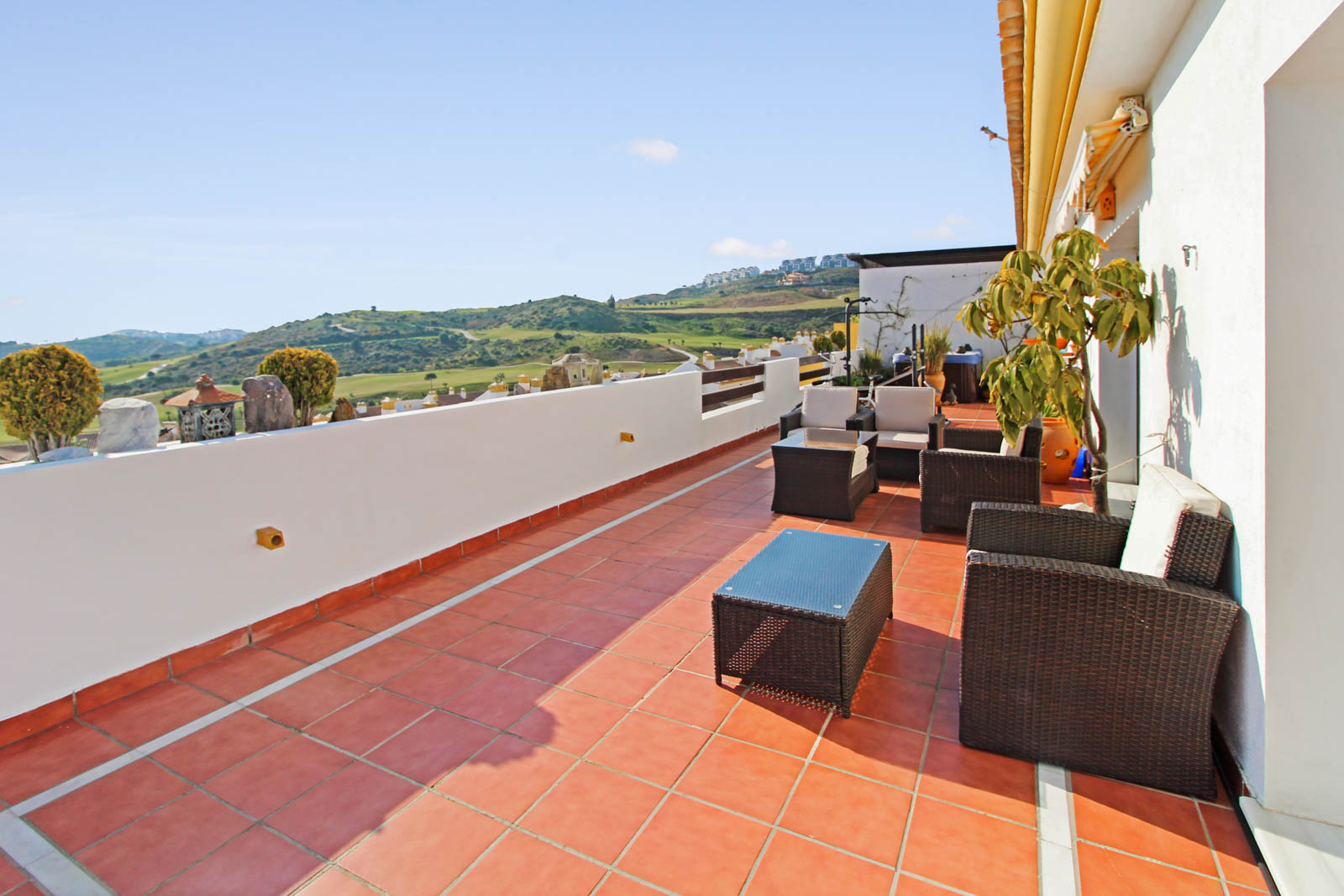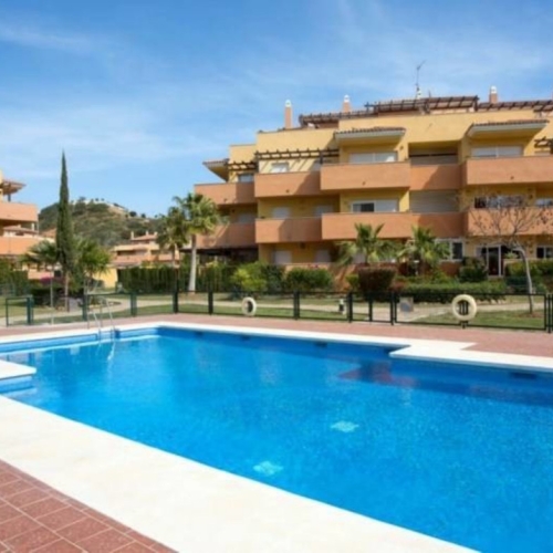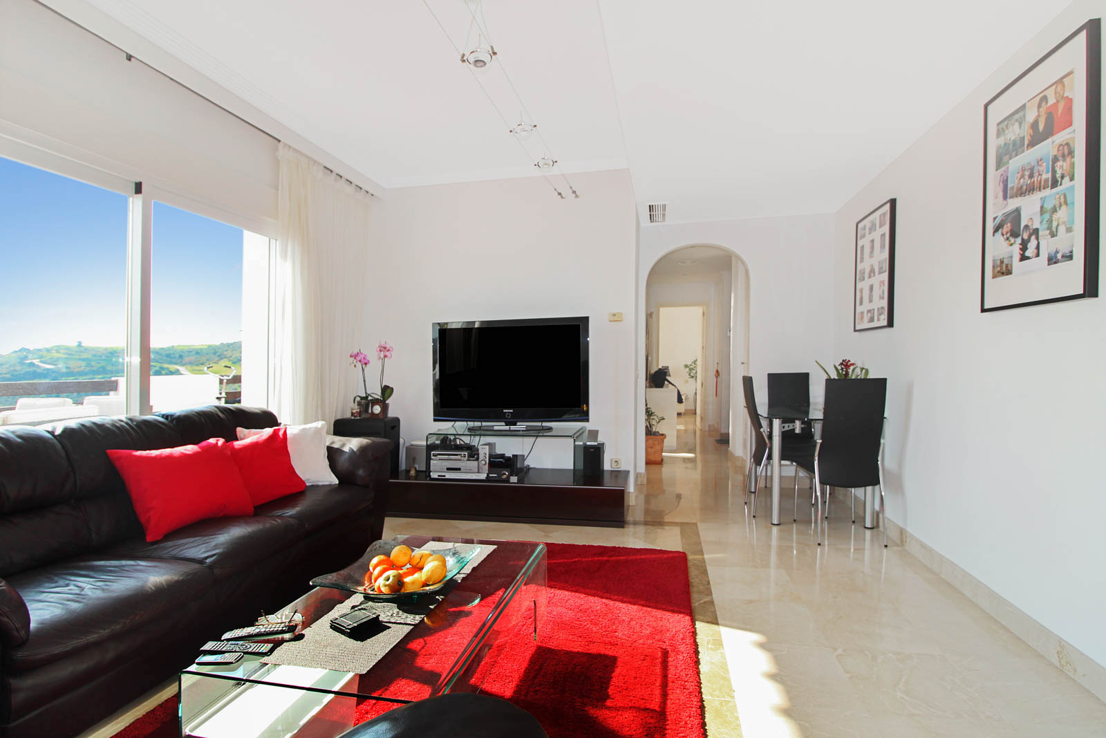 Smuk hjørnelejlighed med en meget stor sydvendt terrasse med en rigtig flot udsigt til La Cala de Mijas, havet, golf og bjergene.