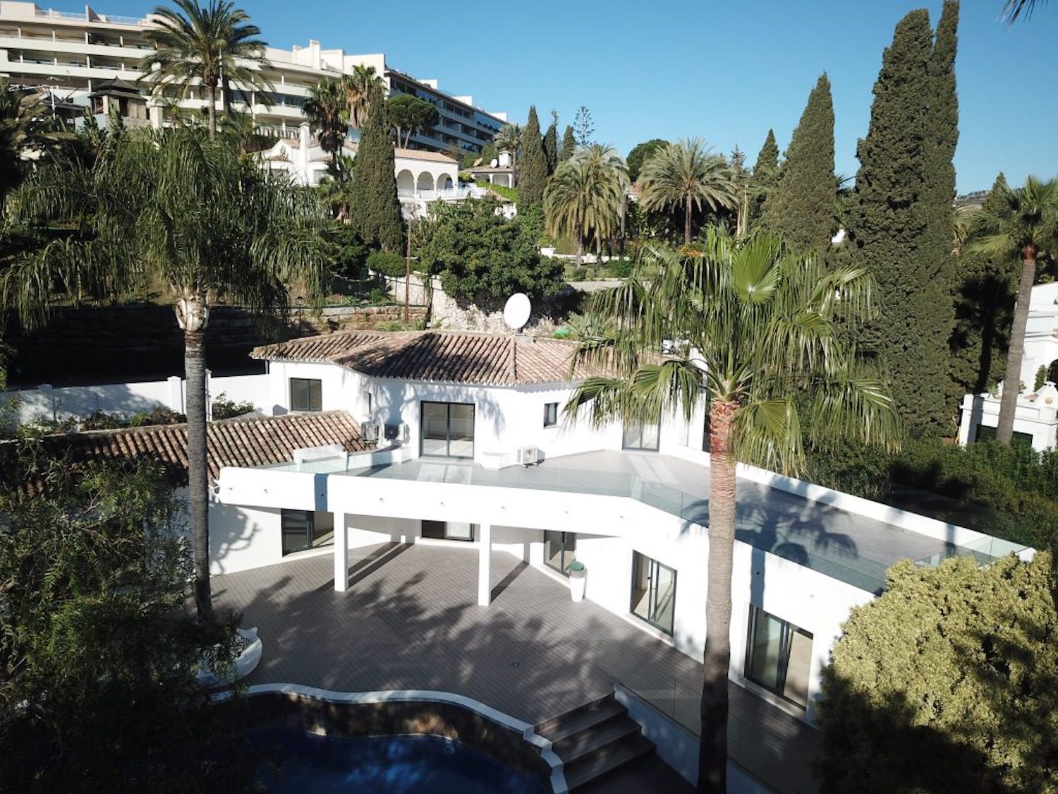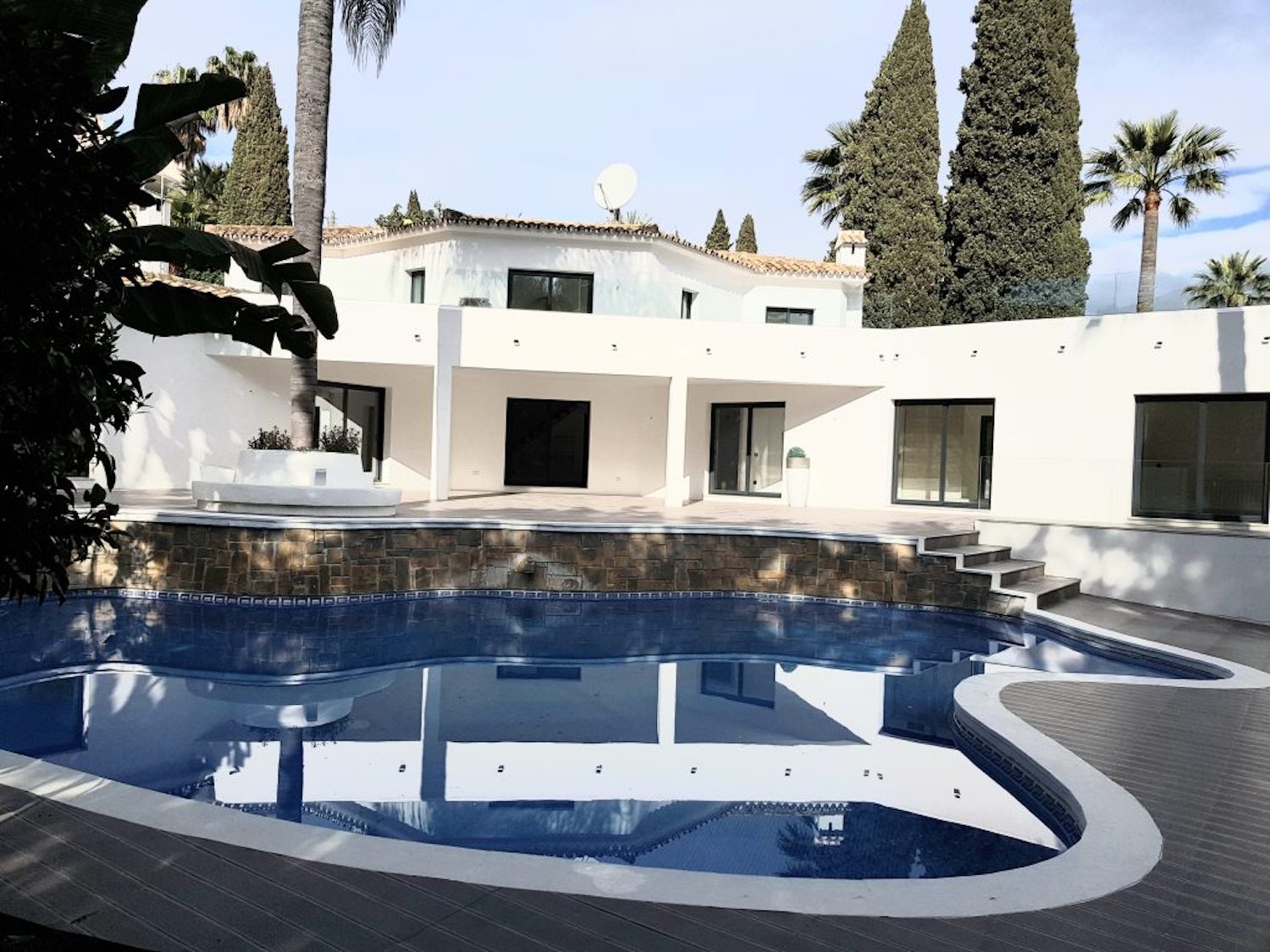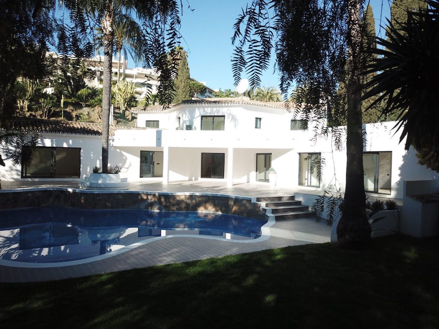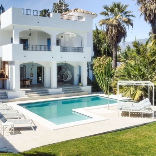 Fantastisk villa i moderne stil beliggende i en fantastisk beliggenhed i Las Brisas og tilbyder smuk udsigt mod golfbanen og La Concha bjerget med privat have og større swimmingpool. Villaen er rummeligt fordelt på tre etager og har gennemgået en større renovering med materialer af top kvalitet til meget høje standarder.