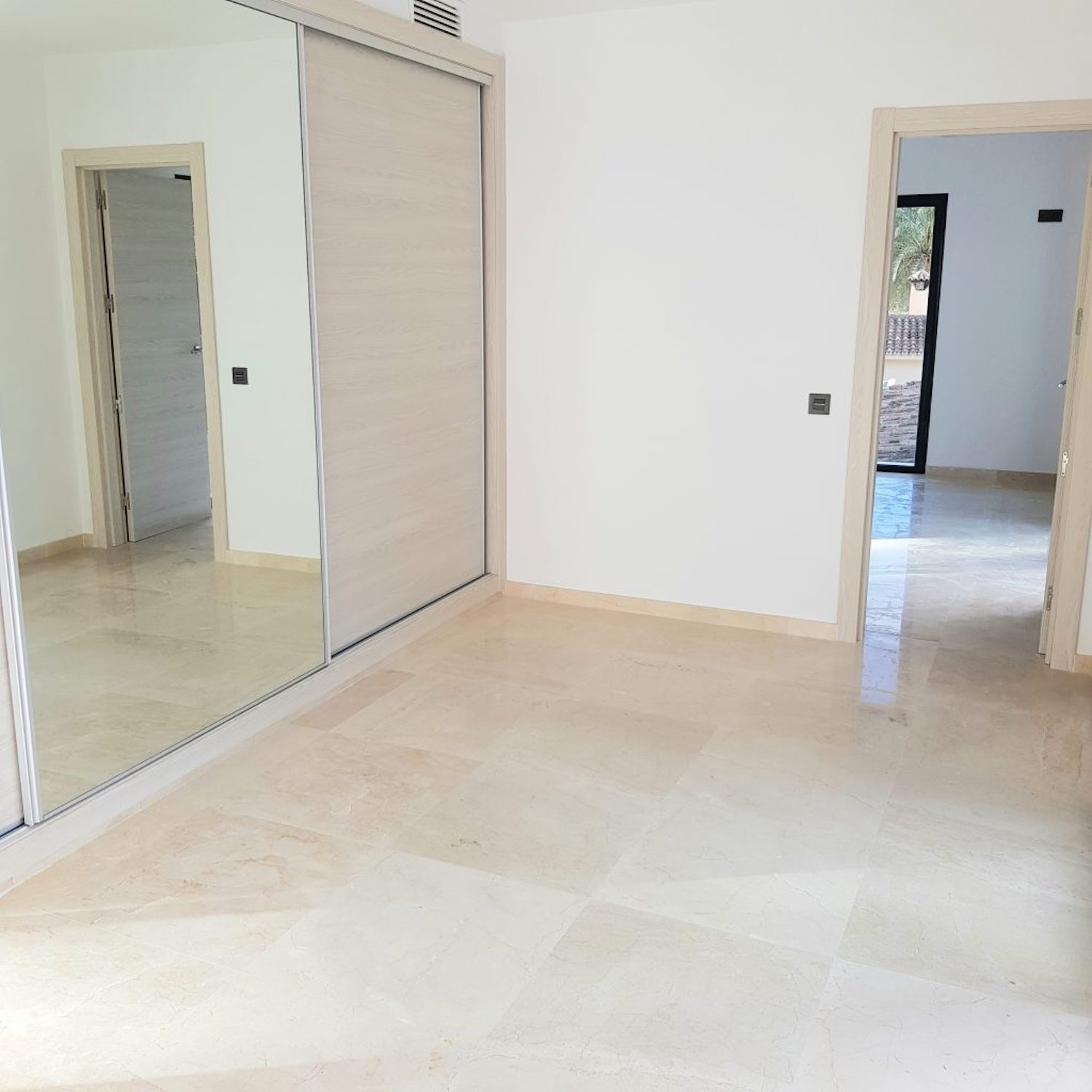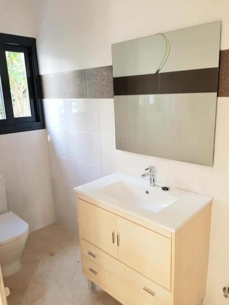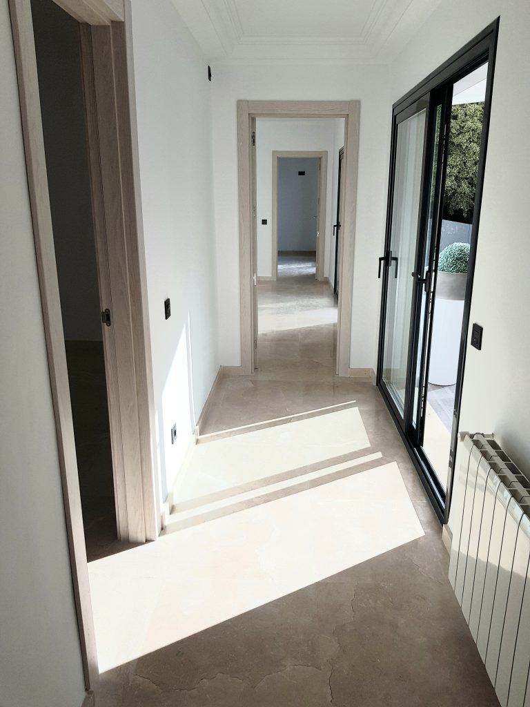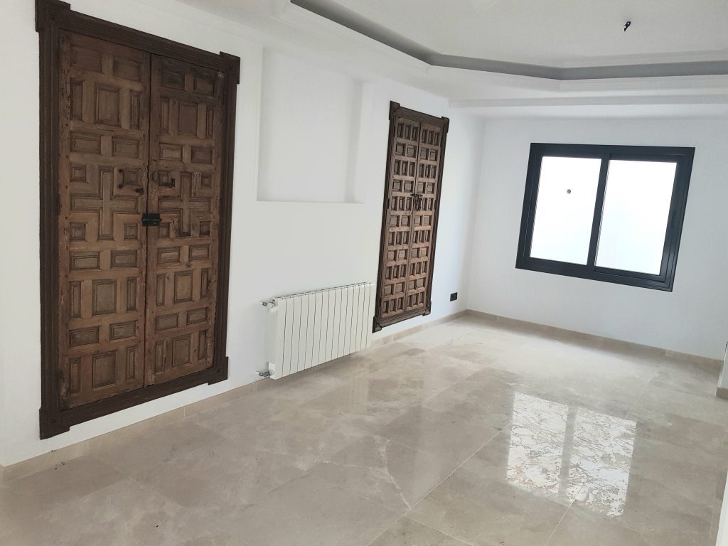 Indgangen tilbyder en rummelig gang, der fører ind til det separate, men åbne køkken med spiseplads. Stuen er rummelig og har en pejs. På denne etage er der et dobbeltværelse med eget badeværelse og soveværelset med eget badeværelse, med en walk-in-skab. Alle værelser har direkte adgang til terrasser og poolområde med smuk udsigt mod golfbanen og La Concha bjerget. På første sal er der to soveværelser med eget bad, med et kontorrum imellem.