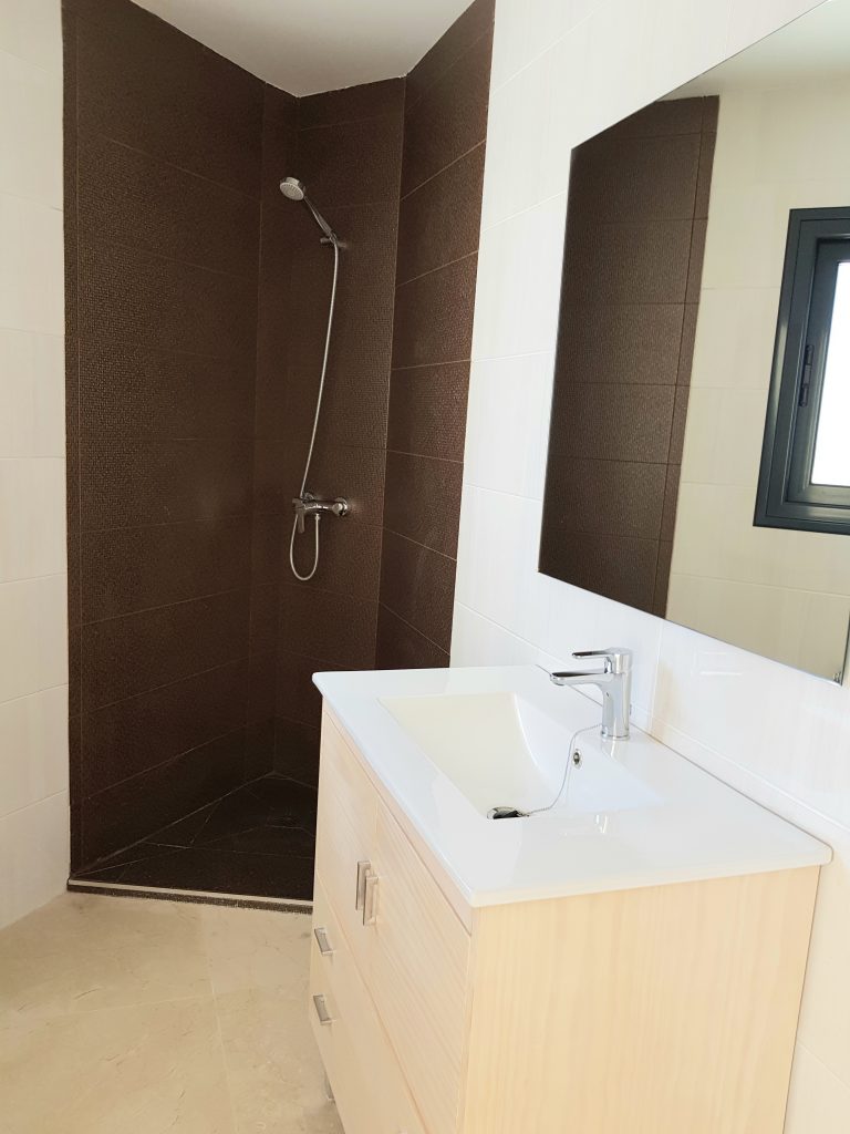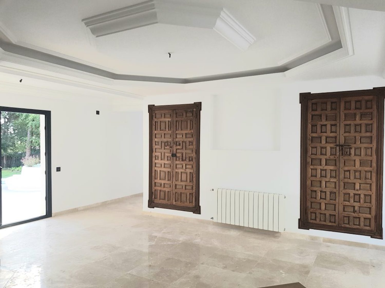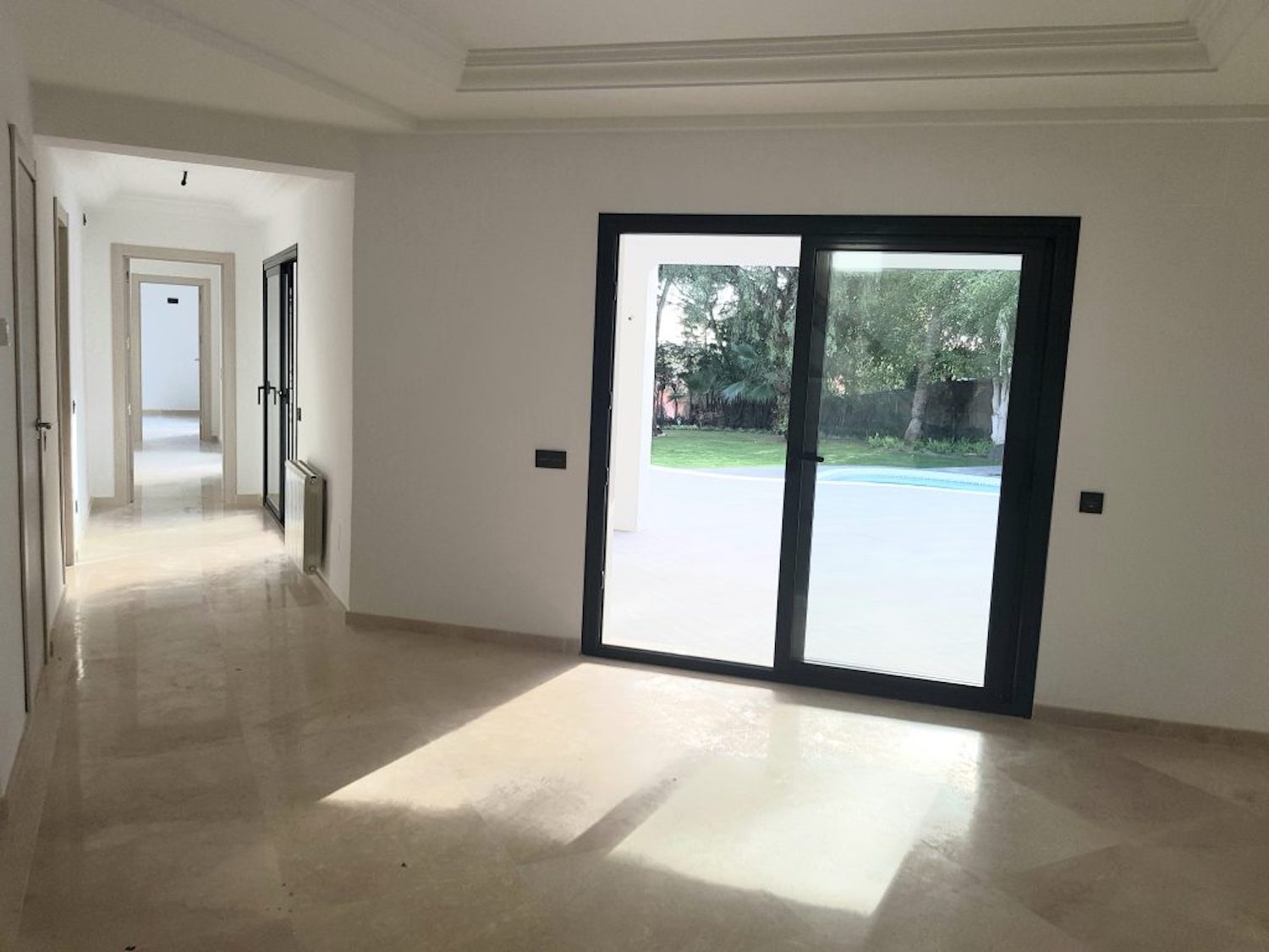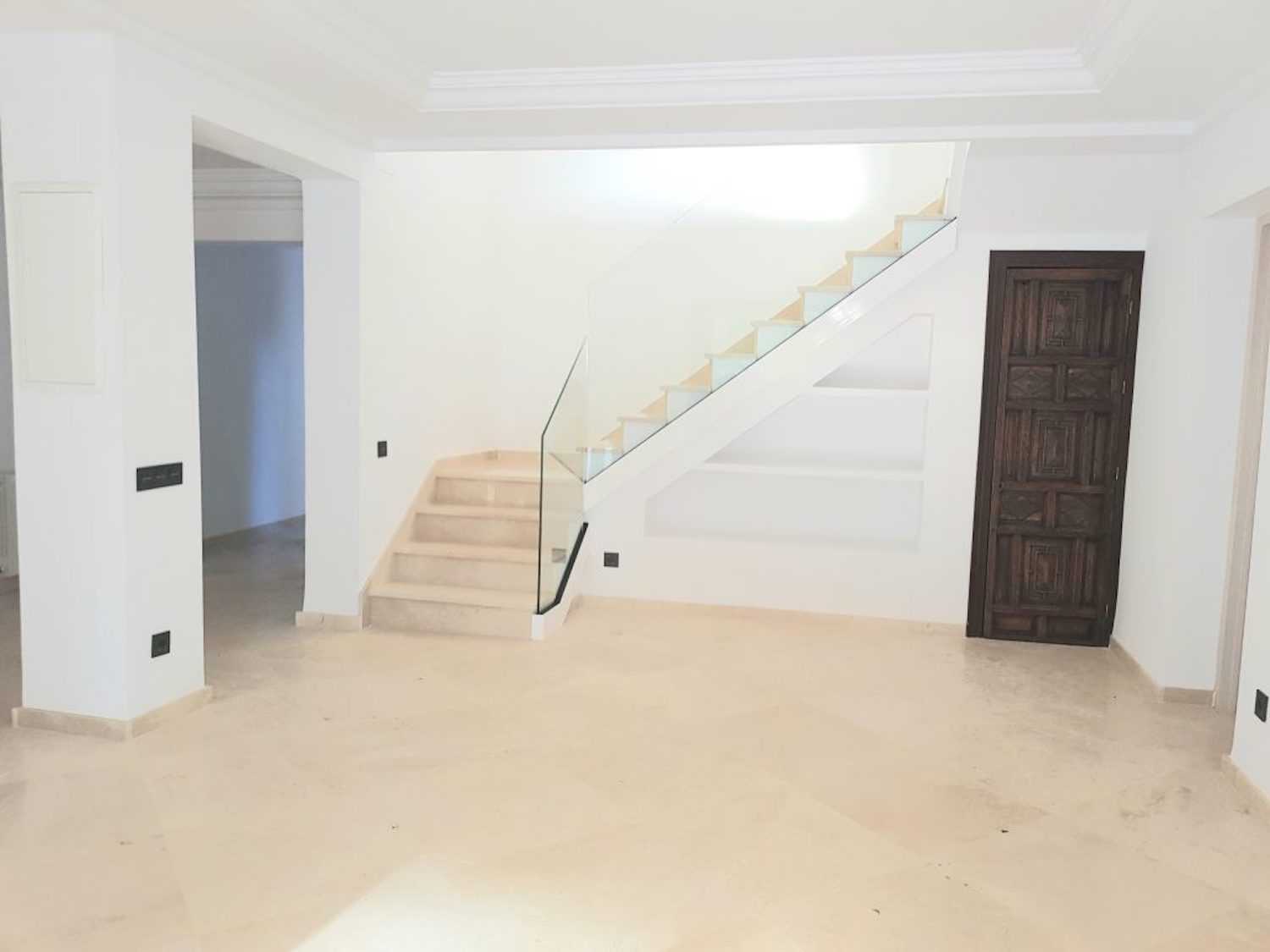Indgangen tilbyder en rummelig gang, der fører ind til det separate, men åbne køkken med spiseplads. Stuen er rummelig og har en pejs. På denne etage er der et dobbeltværelse med eget badeværelse og soveværelset med eget badeværelse, med en walk-in-skab. Alle værelser har direkte adgang til terrasser og poolområde med smuk udsigt mod golfbanen og La Concha bjerget. På første sal er der to soveværelser med eget bad, med et kontorrum imellem.