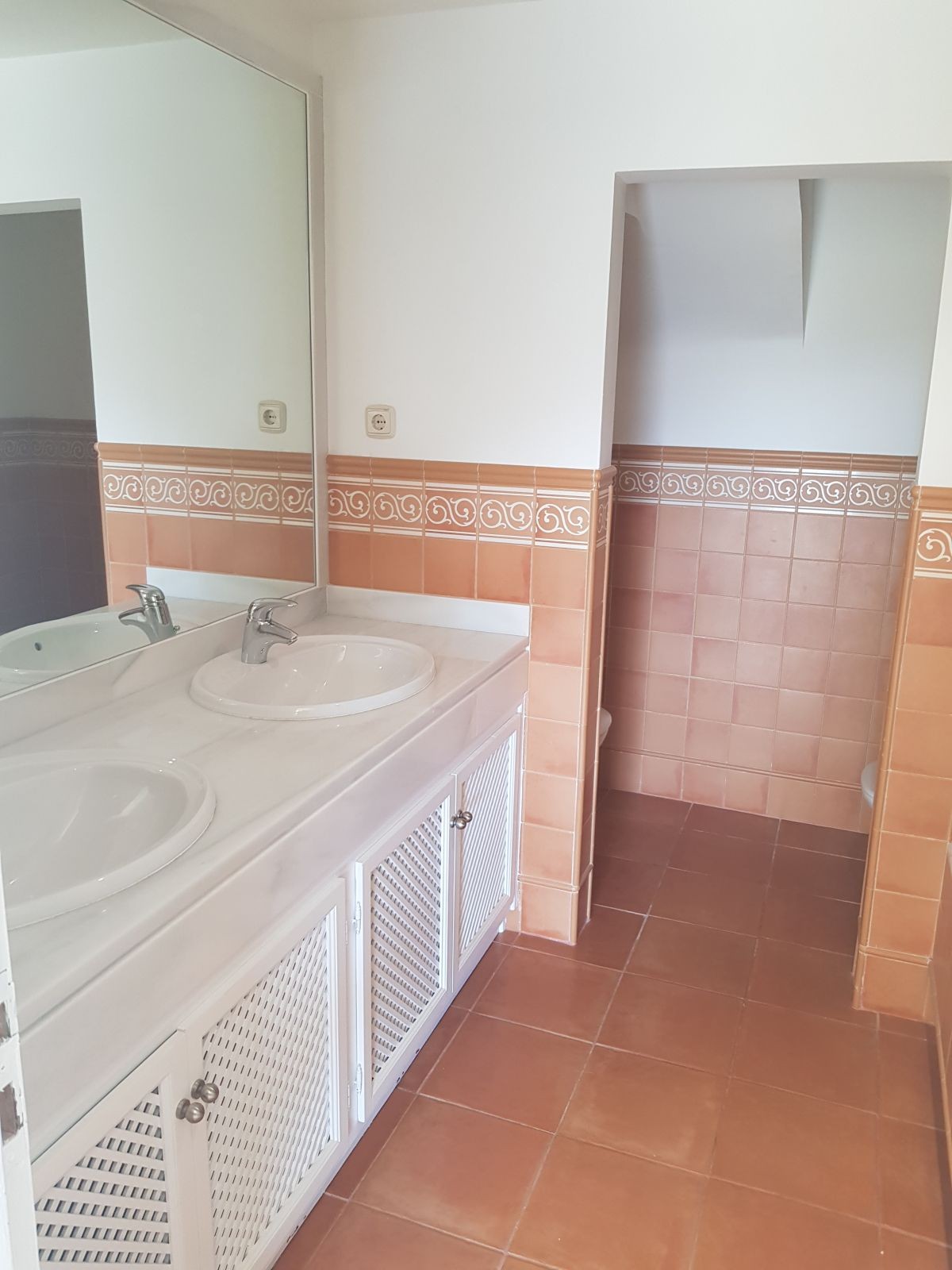 Huset er i 2 etager og fremstår i moderne skandinavisk stil med stor stue samt åbent køkken og 3 værelser; Det ene er et soveværelse med eget badeværelse samt 2 gæsteværelser; Det ene med eget badeværelse, mens det andet er med separat badeværelse. Hvert soveværelse har indbyggede skabe. Fra det største soveværelse kommer du ind på terrassen med en fantastisk udsigt.