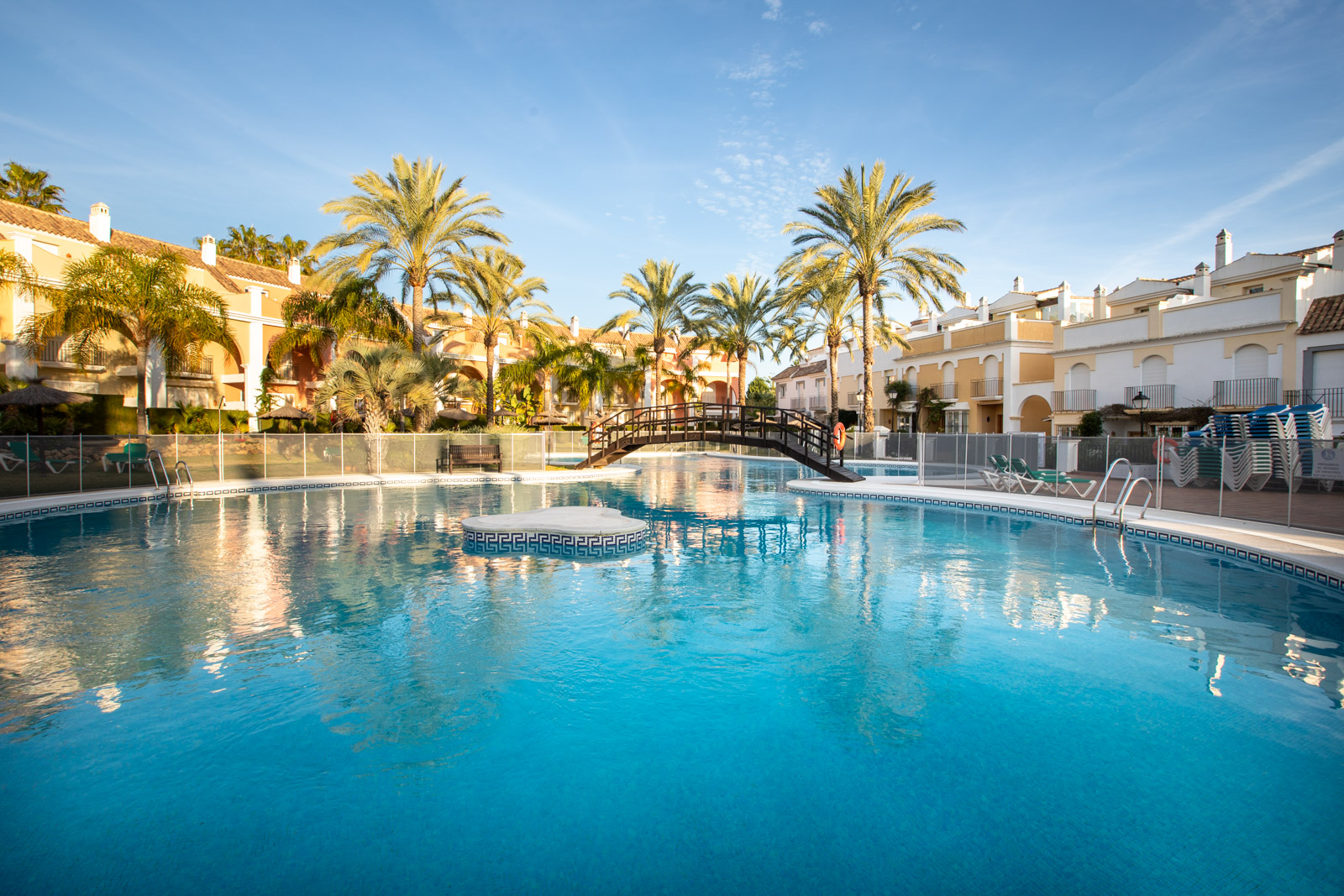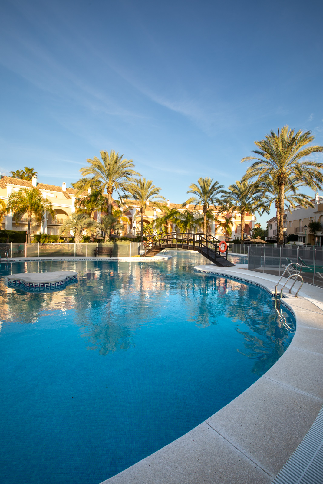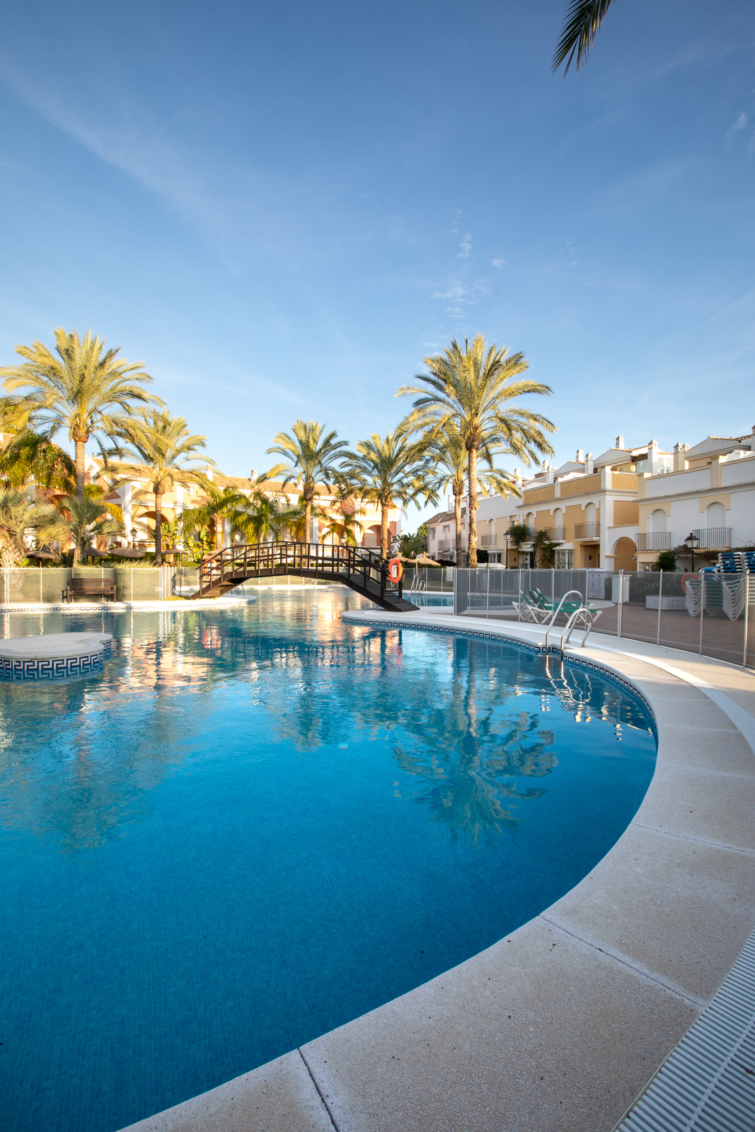 I fællesområderne har du et dejligt poolområde åbent hele året rundt, smukke haver og springvand rundt omkring i området.