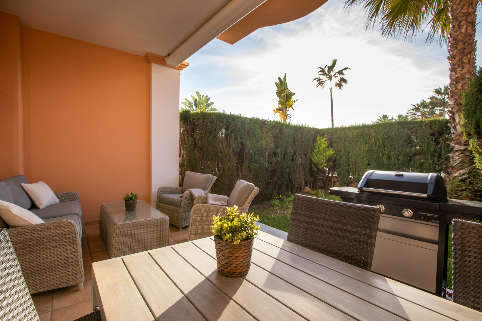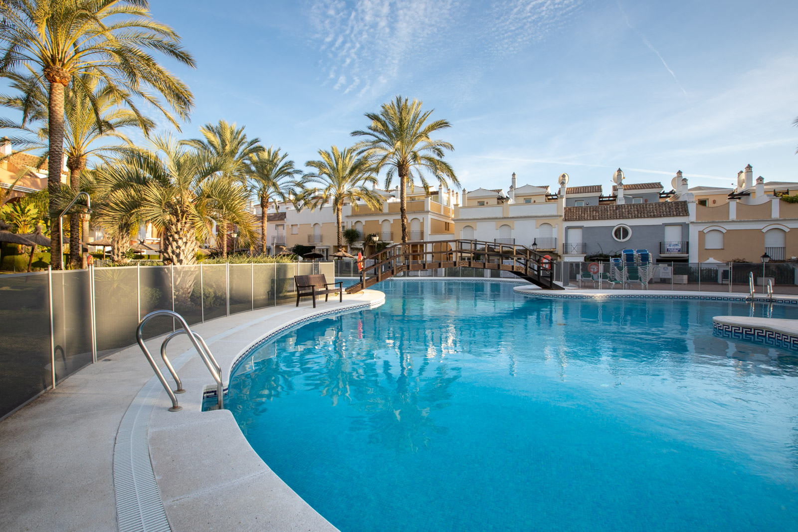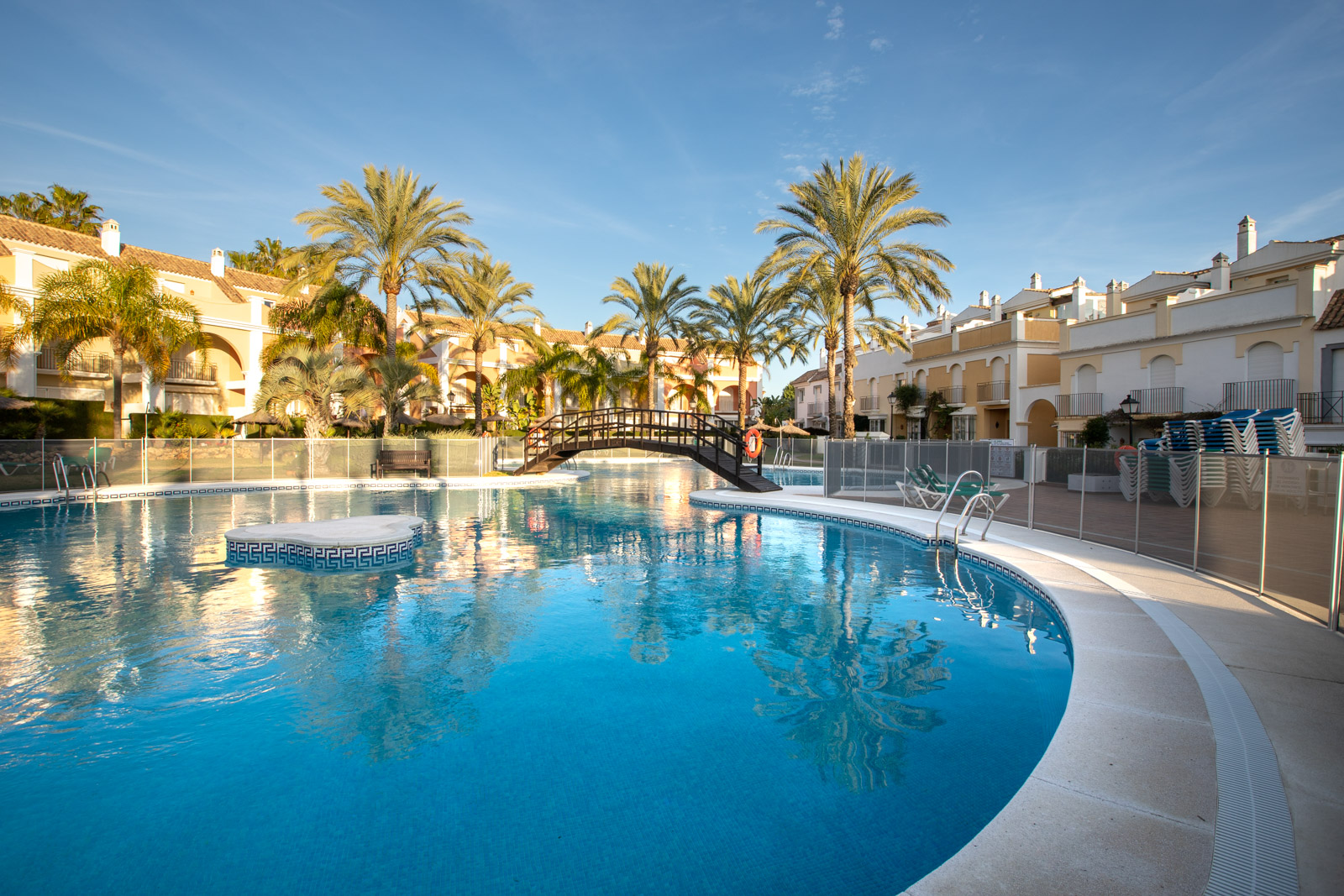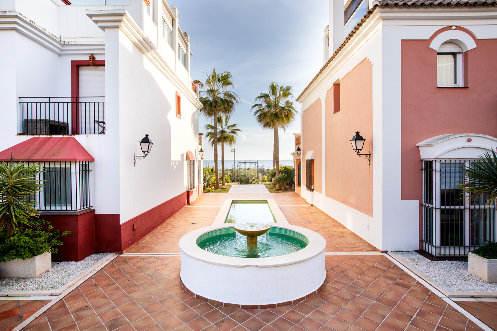 I fællesområderne har du et dejligt poolområde åbent hele året rundt, smukke haver og springvand rundt omkring i området.