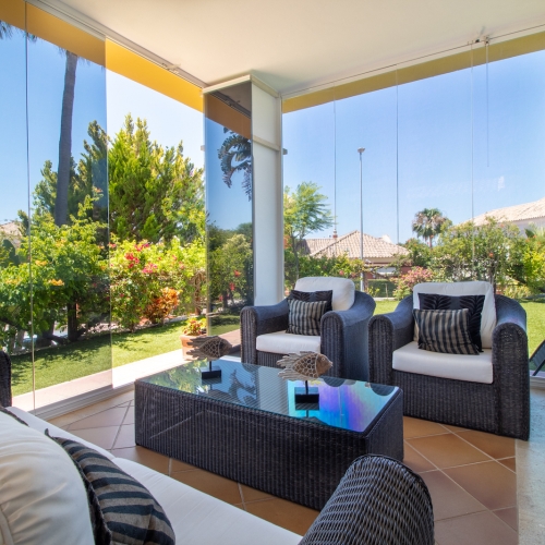 Dejligt 3 værelses rækkehus beliggende første linje til stranden i Bahia de Marbella!