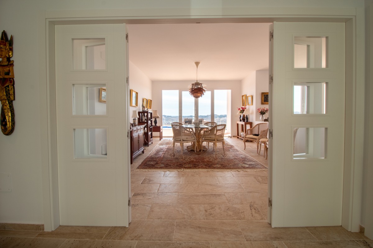 Fra soveværelset har du direkte adgang til den store sydvendte terrasse og swimmingpool. Det samme gælder køkken, stue og spisestue.