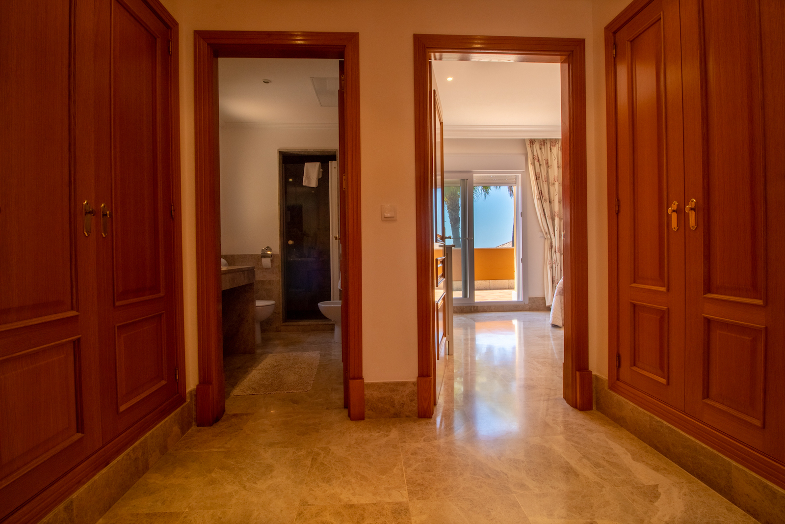 Ovenpå har finder man 3 soveværelser, hvor master soveværelset har indbyggede skabe, eget badeværelse og en privat terrasse med havudsigt.
