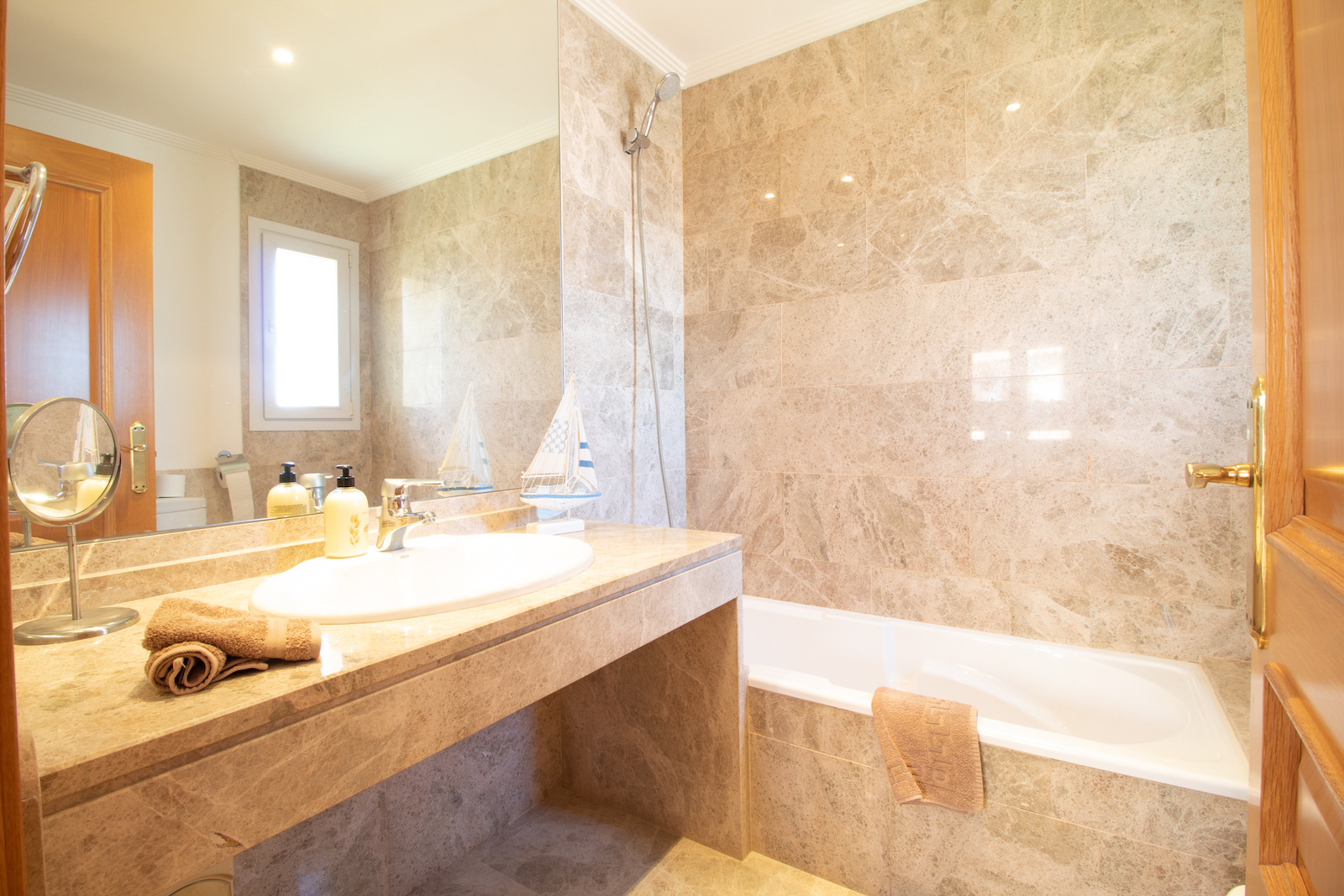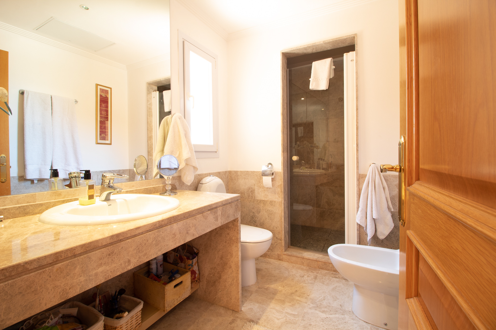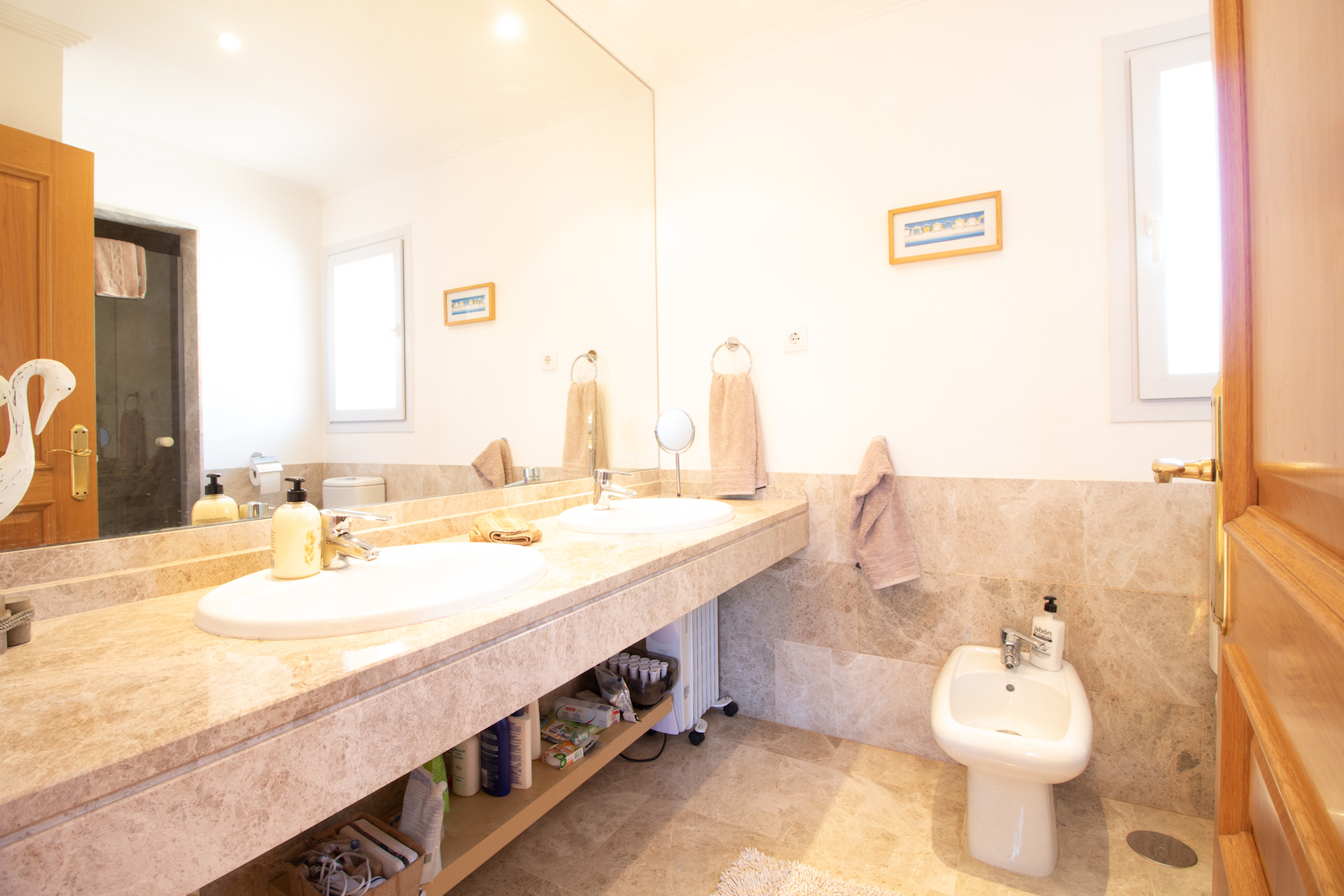 Der er marmorgulve i hele huset, termoruder med indbygget myggenet, elektriske skodder og centralvarme med varm og kold luft.