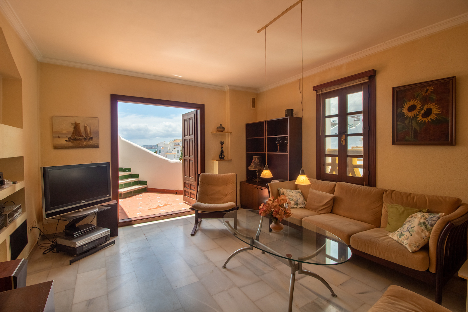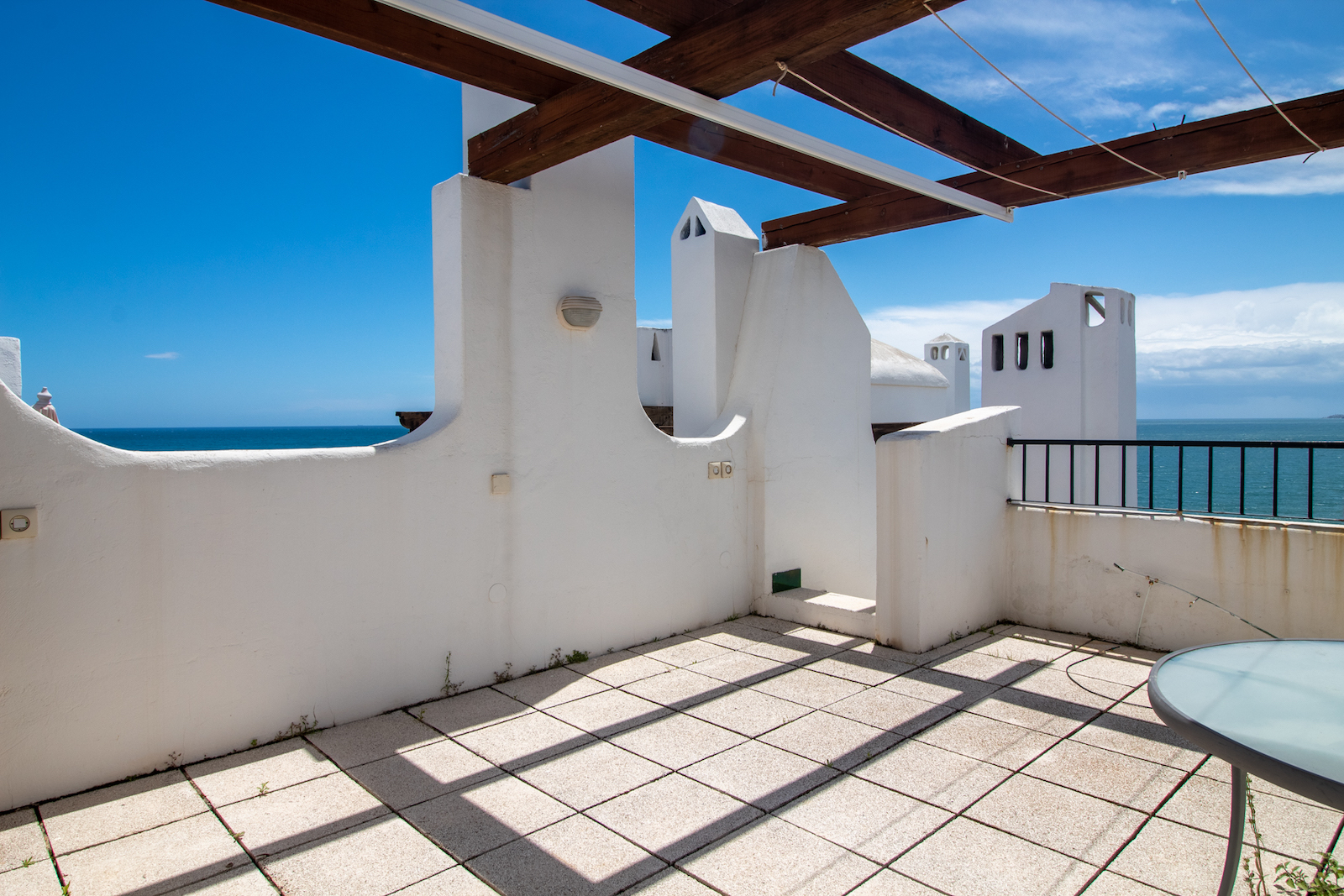 Oprindeligt var denne lejlighed to separate lejligheder, men den nuværende ejer har omdannet den til en stor lejlighed med en stor tagterrasse med skøn udsigt til havet og langs kystlinjen.