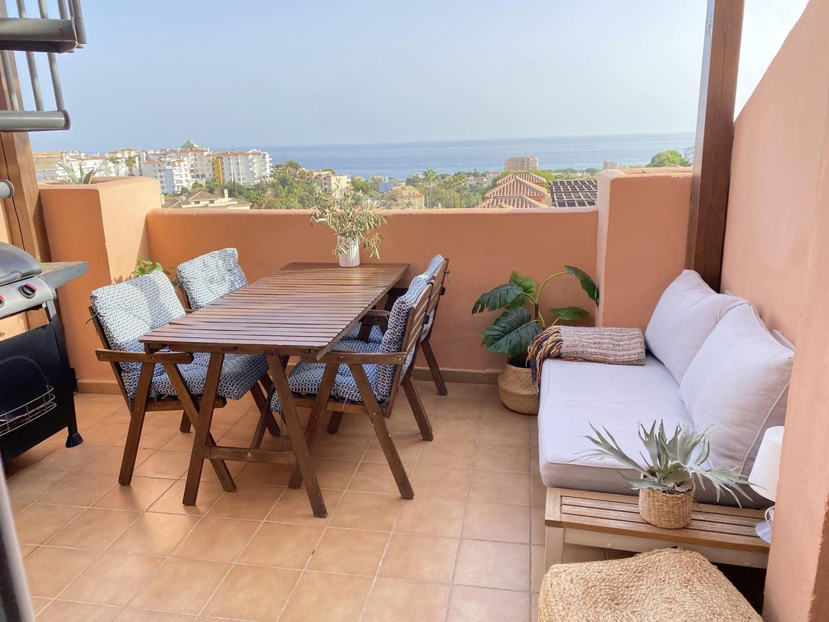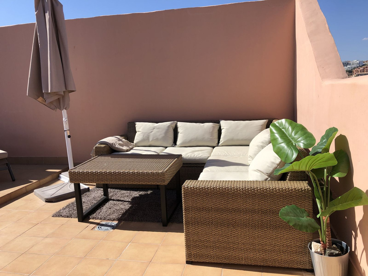 Smuk penthouse til salg i Riviera del Sol! Den har en fantastisk udsigt med direkte havudsigt, to store terrasser med syd/sydvest orientering, så du kan få sol hele dagen. Nyligt renoveret åbent køkkenområde, fra 2021. Kommer også med privat underjordisk parkering og depotrum. En direkte adgang til poolområdet. Lejligheden har en fantastisk beliggenhed, med 15 minutter til indkøb (Carrefour) til fods og 20 minutter til stranden, som kan nås via en lille sti bag komplekset. 5 minutter i bil til den berømte Capobino strand og 25 minutter til lufthavnen. Den kan nemt lejes ud, hvilket ejere har gjort med stor succes i højsæsonen.