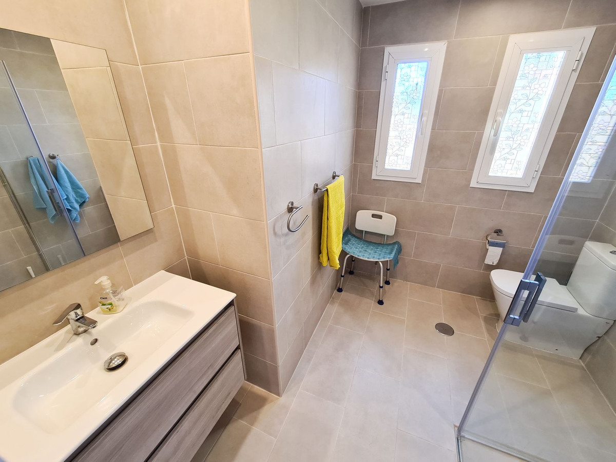 Den har god størrelse med 3 soveværelser og 2½ badeværelser. Alt i god stand, med et nyistandsat badeværelse som har gulvvarme.