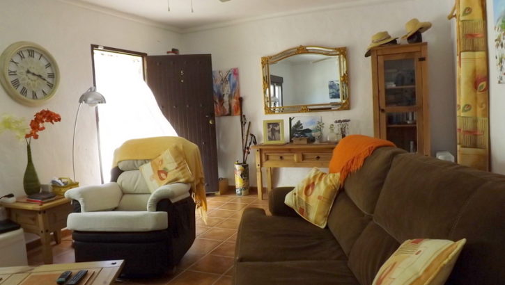 Located in a quiet pedestrianised street of Alora. You enter the property through a charming private front patio. At street level there is a large open plan lounge to a generous dining room leading to a well equipped kitchen. Off the kitchen is a cosy sitting room with a working fireplace. Also on this level is a large double bedroom, stylish shower room and 2 further rooms currently used for storage.