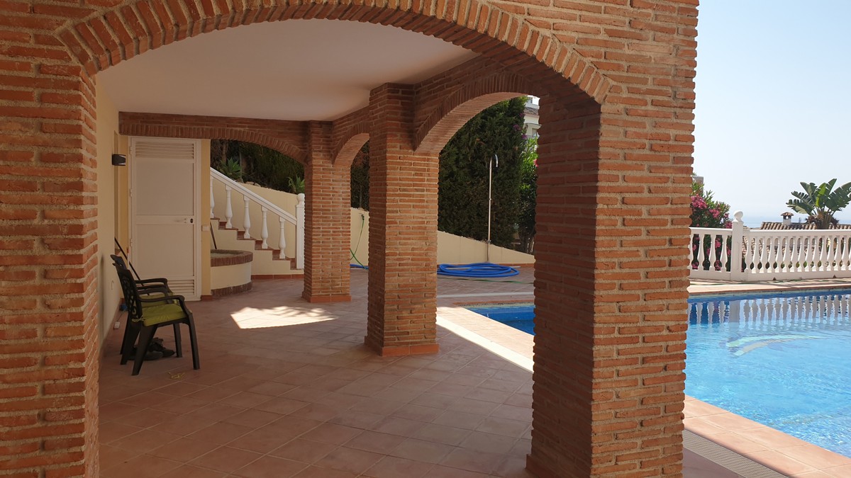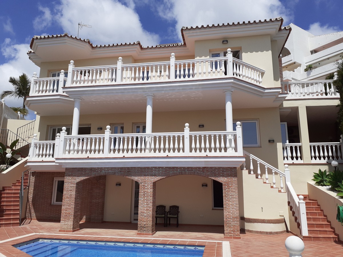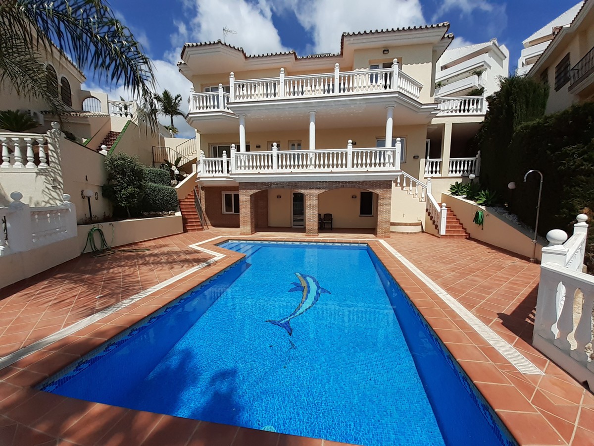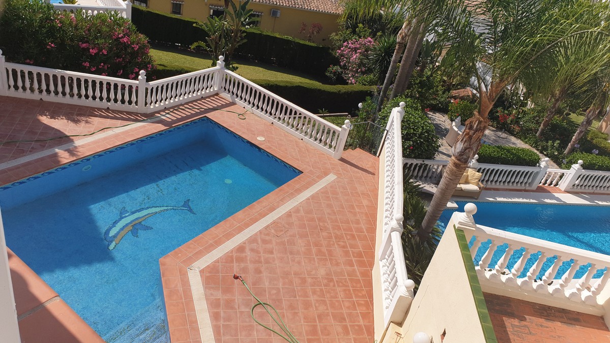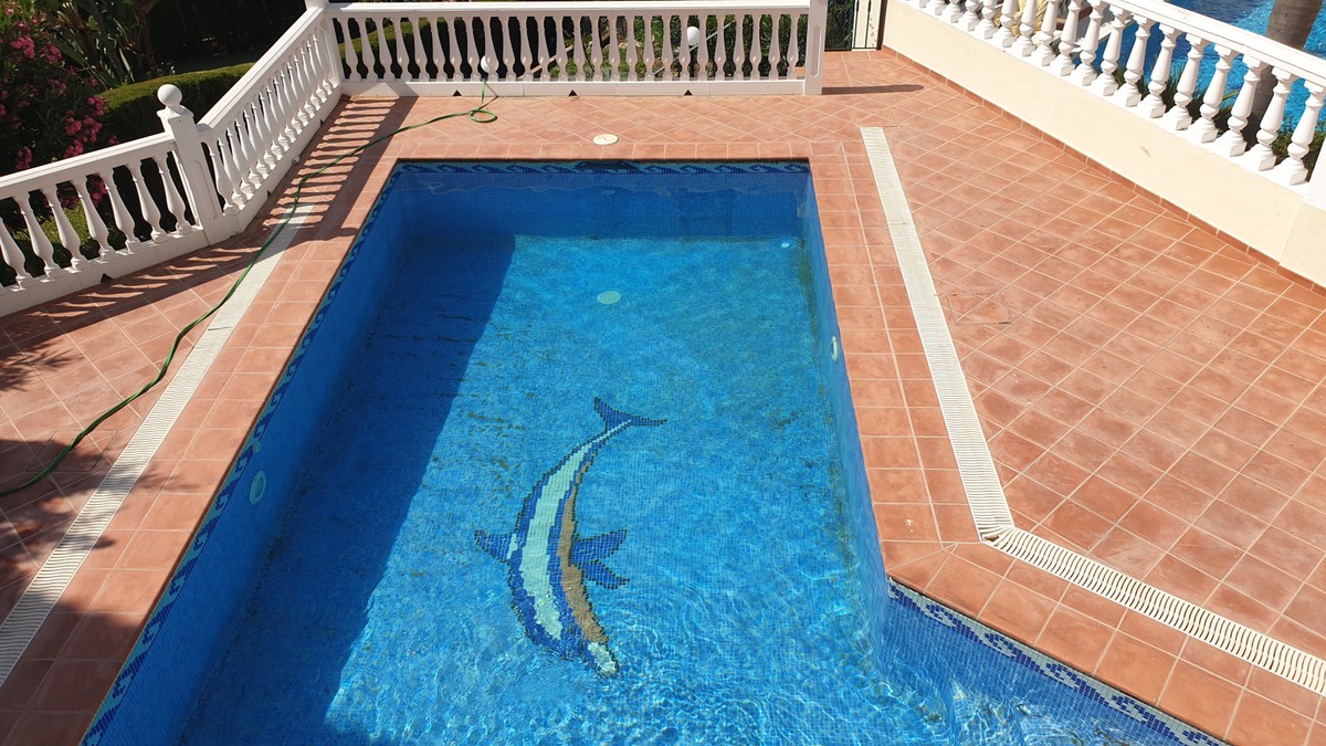 Built on 3 floors the villa is distributed as follows: Main entrance via a floor to ceiling double door leading into a nice sized entrance hall, to the left of the entrance there is a large fully fitted, top of the range kitchen with integrated appliances and granite worktops, together with a small utility room which leads off from the kitchen. To the right of the hall is a large bright and airy lounge with a fireplace leading onto an open terrace that runs the length of the villa. Off the entrance hall we find a lovely good sized contemporary guest bathroom and stairs leading to the lower levels. Down one flight of stairs we find a very large master bedroom with an en suite full sized bathroom and enough partitioned space ready to install a walk in dressing room, a further 2 good sized bedrooms with fitted wardrobes, one of these bedrooms has a privately accessed covered terrace, there is also another full large contemporary bathroom and also another large covered terrace that runs the length of the villa on this level. The lower floor has direct access to the garden and comprises of a very large bedroom/games room and a large storage room