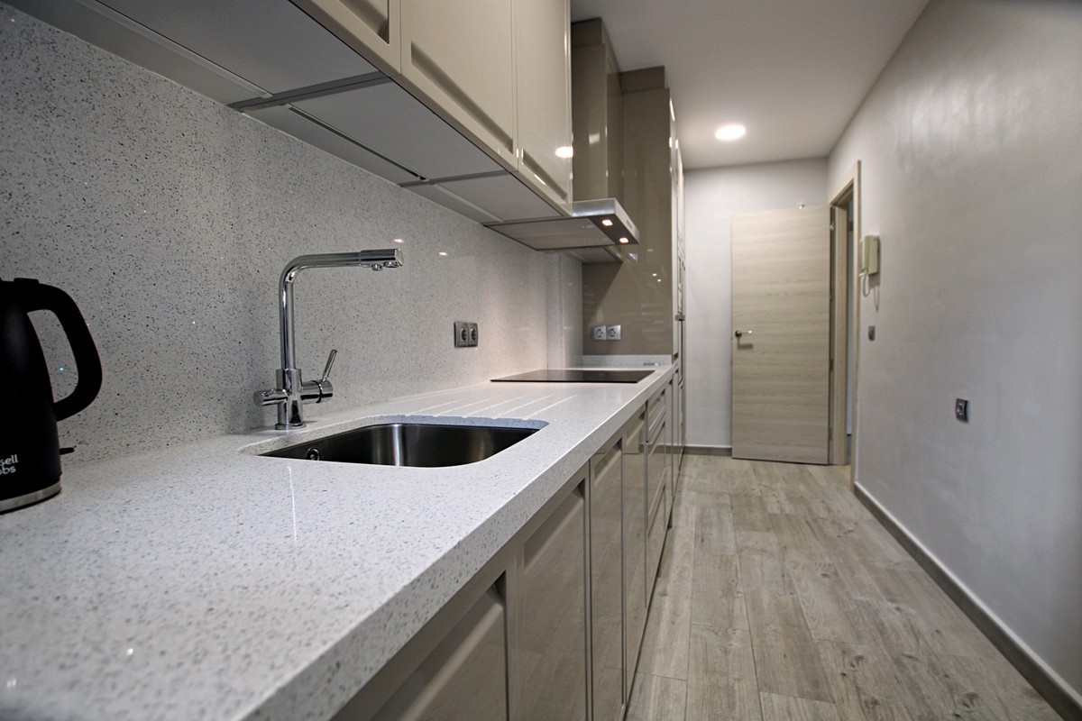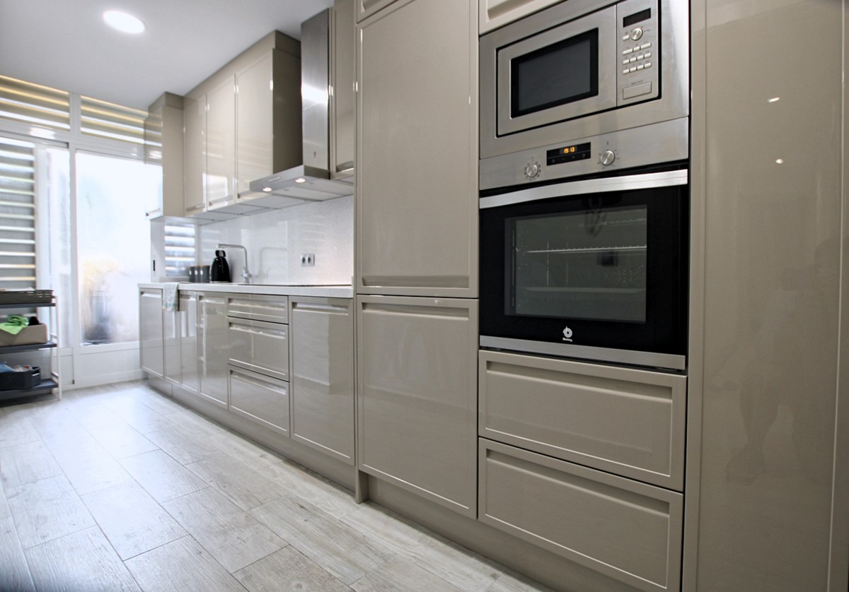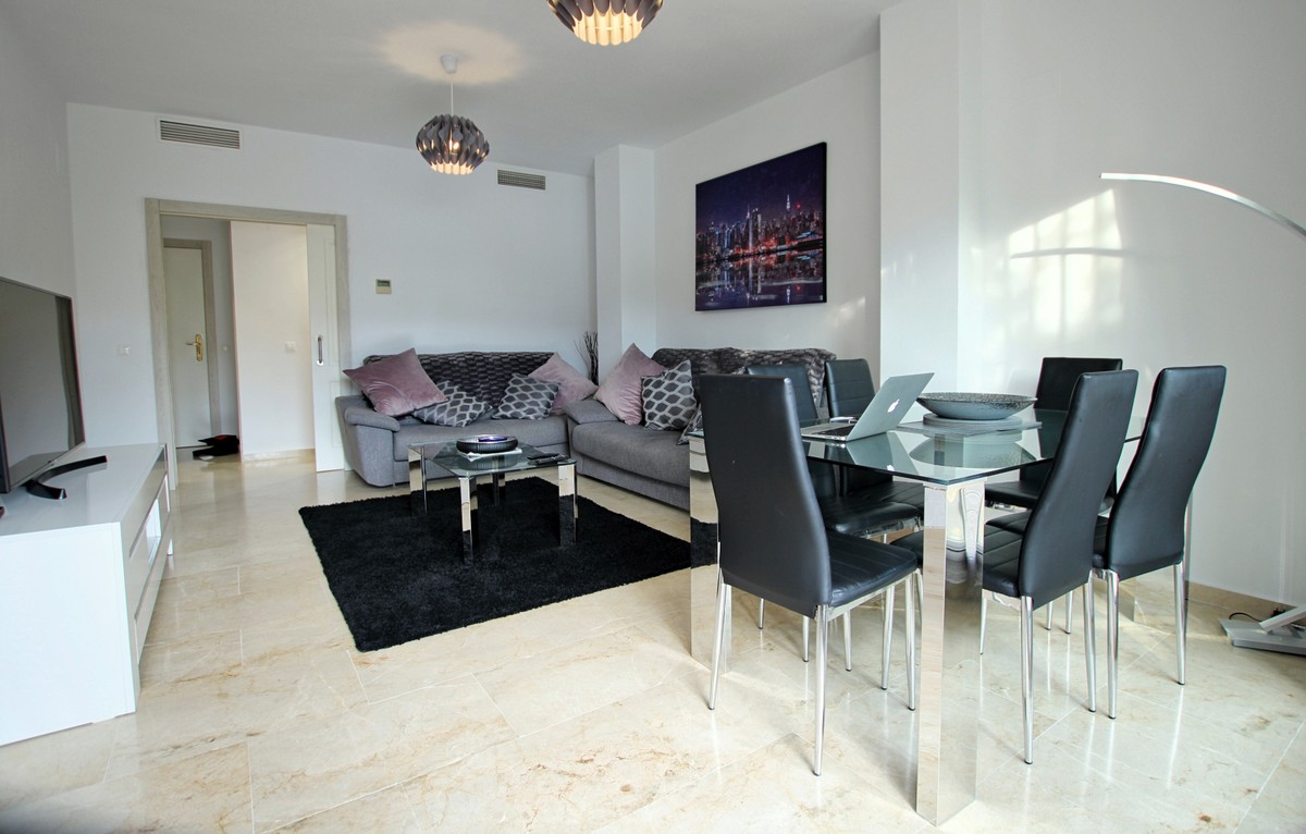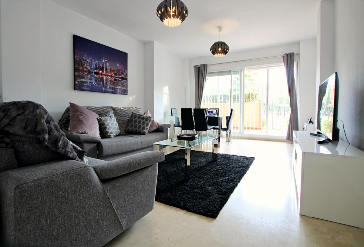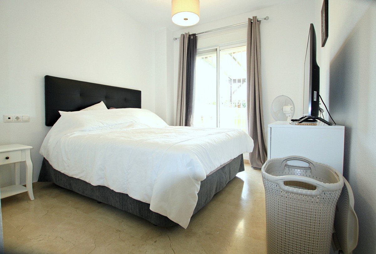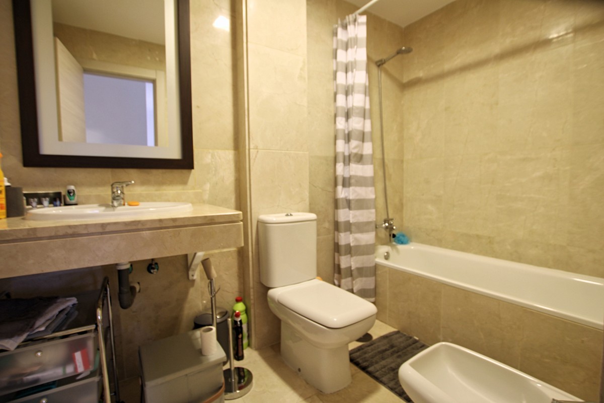 This is a superb value property in the La Noria area, an easy flat walk in to La Cala de Mijas. There is a very Large, partly covered terrace and a private garden to enjoy, as well as direct access to the community swimming pool and ample gardens. The lounge diner is lovely and bright thanks to the south west orientation, and there is a totally renovated, top quality kitchen with large utility room, 2 double bedrooms, 1 en suite bathroom and a shower room plus hot and cold A/C throughout. Underground parking, additional gated parking and a private storage room. A great property in a fabulous location!