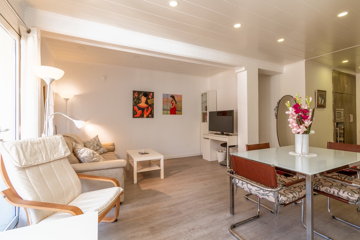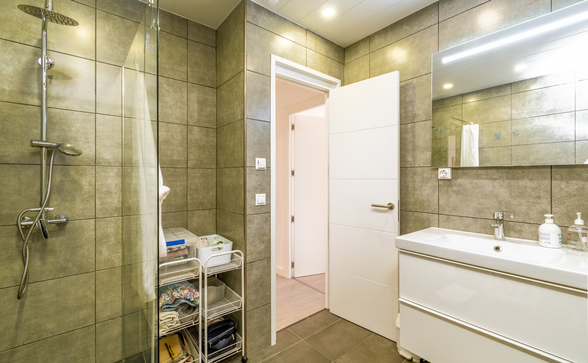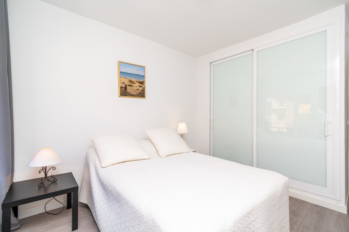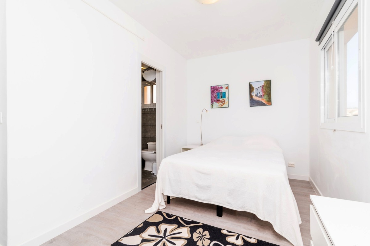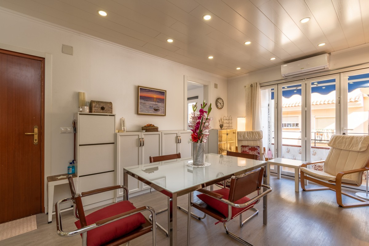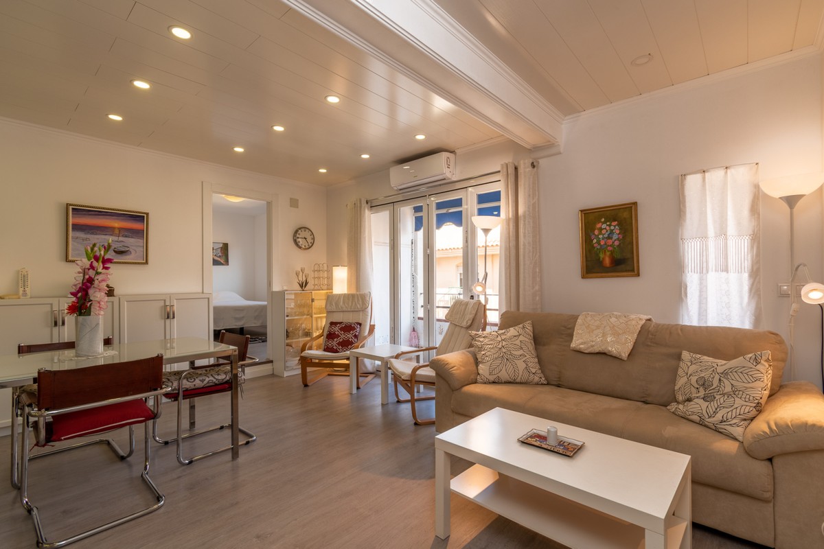 Welcome to this fantastic, fully renovated apartment in the centre of Fuengirola! The apartment is located on the third floor in a block with a communal roof terrace on a quiet street close to absolutely everything in the heart of town such as the church square, train station and the beach! The apartment has been totally renovated with new floors, kitchen and bathrooms in Scandinavian stye and is in excellent condition. Air conditioning has been installed throughout and all appliances are brand new. There is a long, but not wide terrace with some seating space and oversized windows and doors have been installed to make the most of the light and to connect the indoor space with the outdoors. The open-plan kitchen, dining and living rom is spacious and very inviting with plenty of sitting areas to watch TV or read a good book. The main bedroom is large, with built-in wardrobes, direct access to the terrace and a separate, oversized bathroom with shower.. The second bedroom has a dressing area and an ensuite bathroom with shower. The third bedroom is smaller, also with built-in wardrobes. This is an excellent apartment as a holiday home, investment to rent or a family home. At this price it's a real bargain and must be seen!