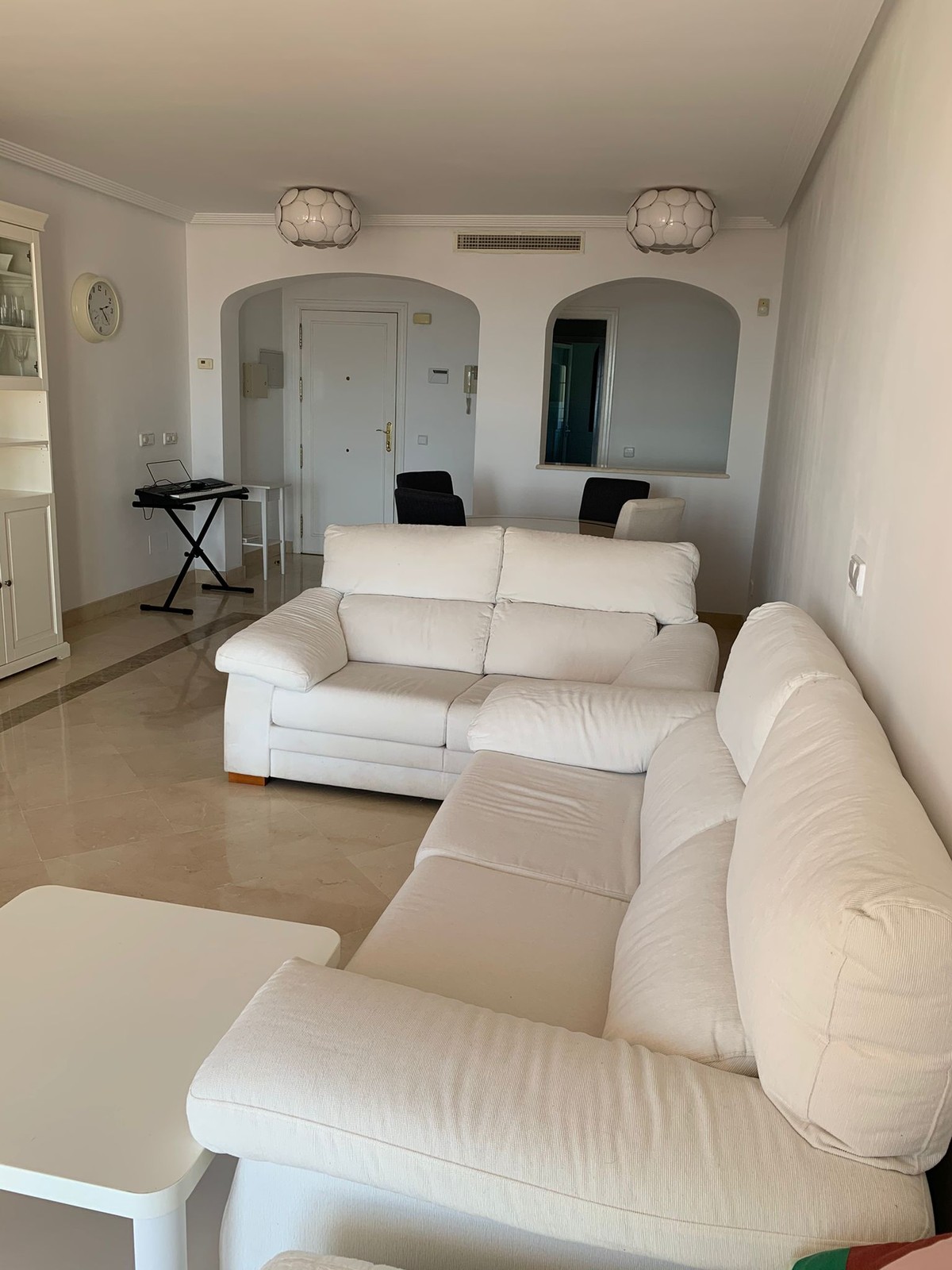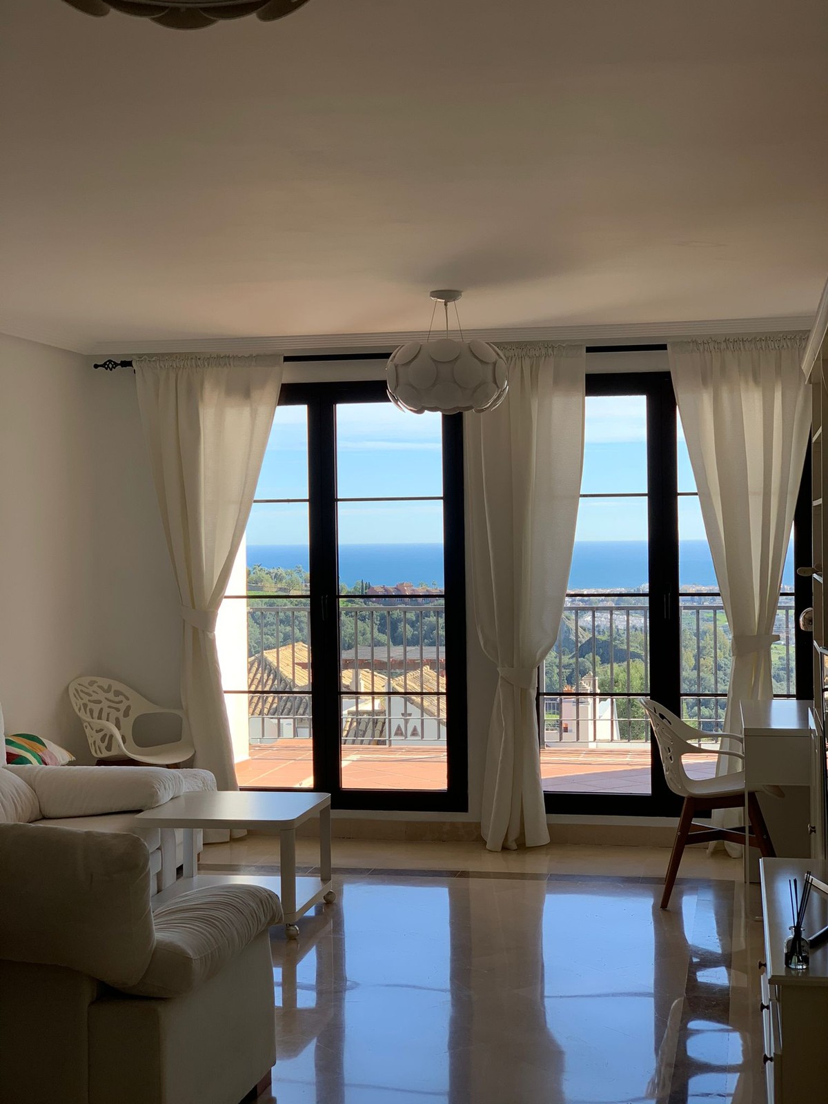 South-facing apartment with sea views. The apartment consists of a large living room with lots of daylight. The living room has access to a terrace with sea views and views of Marbella. Two of the bedrooms are also south-facing, one of the bedrooms has access to the terrace. All bedrooms have spacious fitted wardrobes. The third bedroom is north oriented and has wonderful views of La Zagaleta and the beautiful mountains. The kitchen is well equipped with new appliances. The urbanization I has two pools and a well-kept garden. Wonderful view of the sea and the mountains.