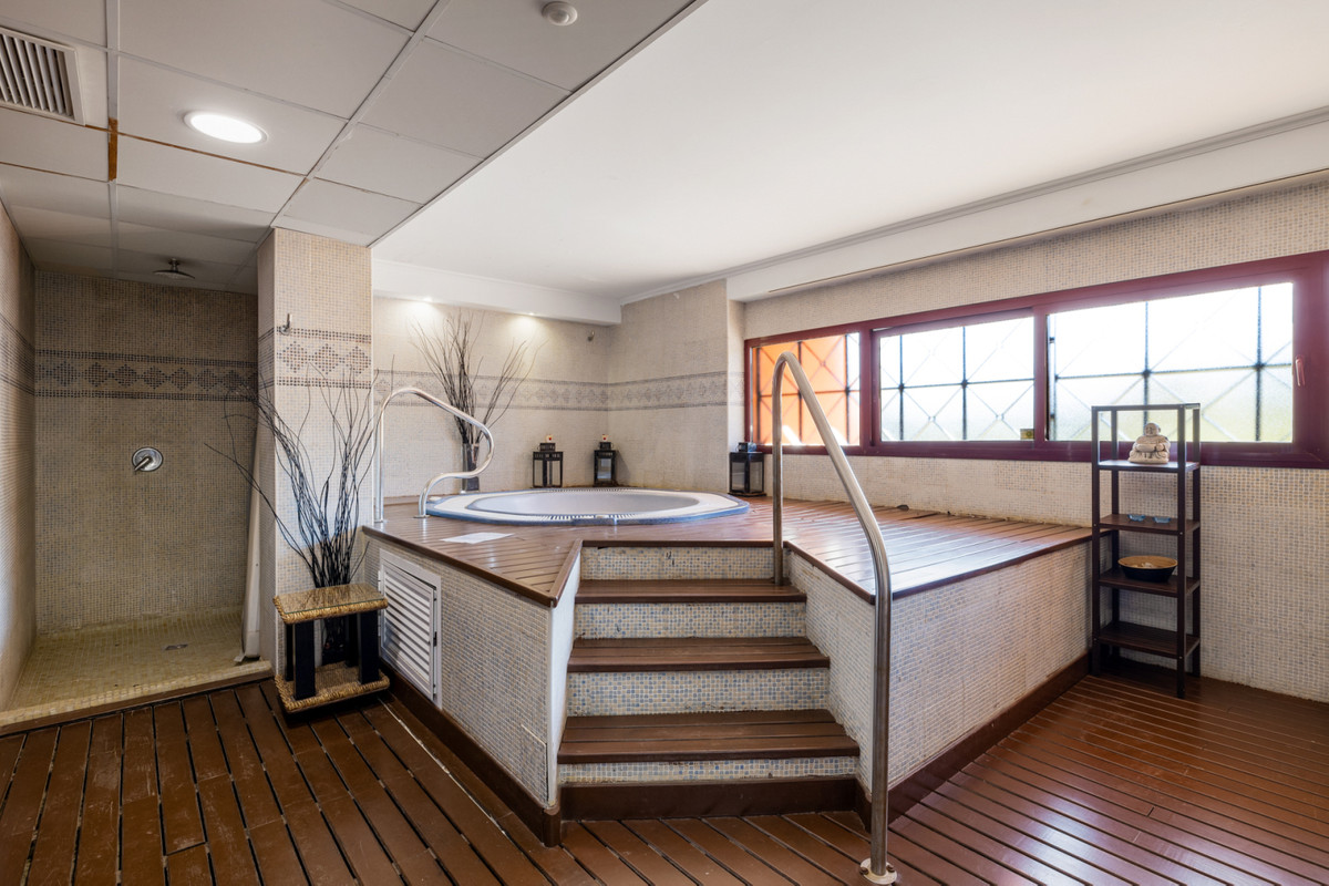 From almost every room there are sea views and from the pool area, which includes a Jacuzzi, the views are spectacular offering open views towards Gibraltar and Africa and the entire coastline of Marbella and Puerto Banus. The outside area offers a sunny wooden terrace with Jacuzzi, a covered terrace and a Patio with a dining area and direct access to the kitchen.