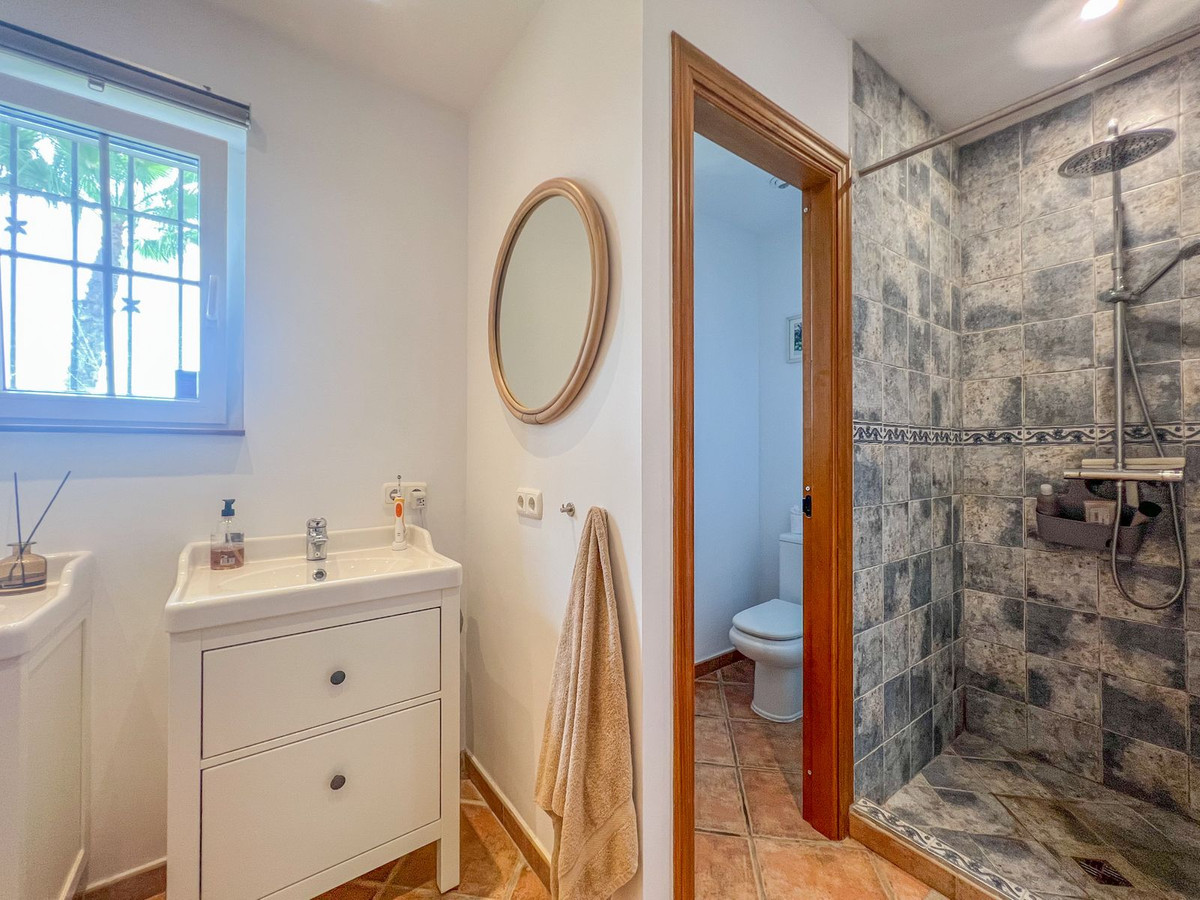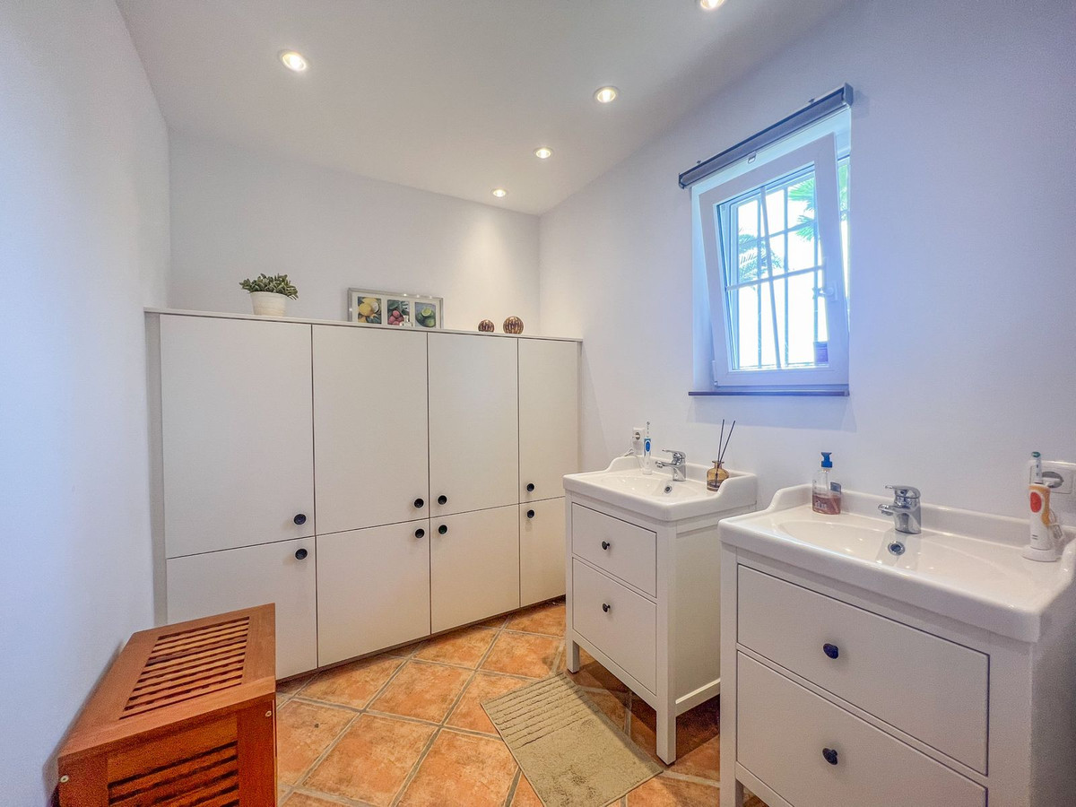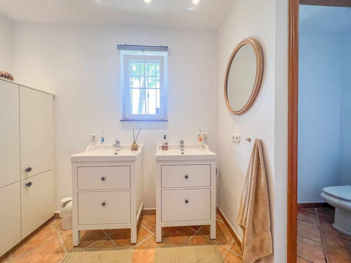 Boligen består af 4 soveværelser med dobbeltsenge. Det store soveværelse har en-suite badeværelse og dobbelte terrassedøre, der giver adgang til terrassen og poolområdet - hvor man kan nyde de smukke solopgange og et glimt af havet. En-suite badeværelset består af en stor bruseniche og et lukket toiletområde, to separate håndvaske og en masse skabsplads. I nærheden af soveværelset er der et andet soveværelse med dobbeltseng. Dette har tidligere været et walk-in-closet, men er nu blevet omdannet til et funktionelt soveværelse med separat indgang og vindue til naturligt lys. De to andre rummelige soveværelser nyder også naturligt lys og deler det andet badeværelse i villaen.