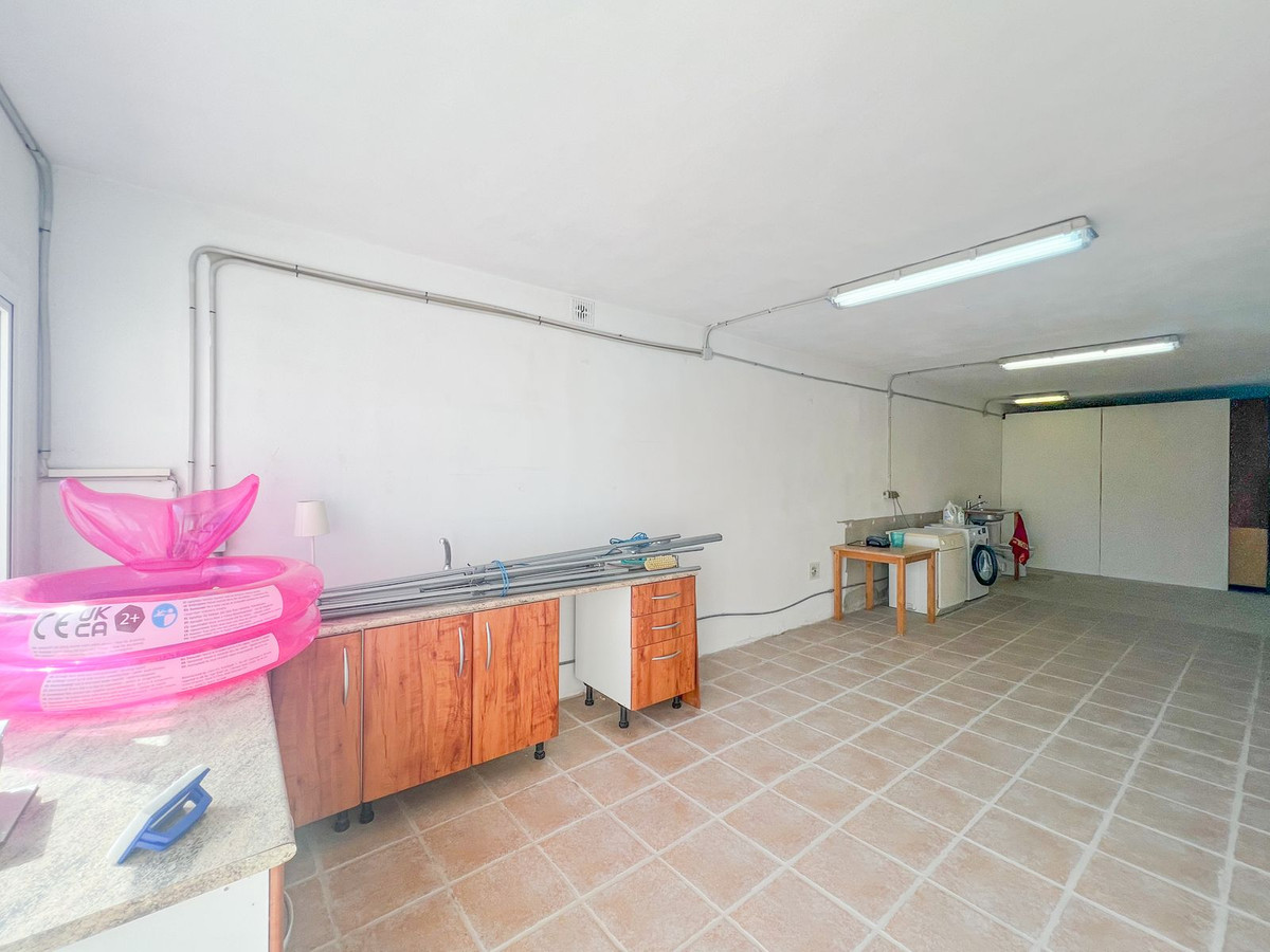 Under villaen er der et stort rum, der tidligere har været garage, men nu er lukket af med store vinduer og en dør, det var tanken at skabe en separat lejlighed her. Herinde er der i øjeblikket vaskemaskine og tørretumbler, tilsluttet plumping og det bliver brugt som vaskerum. Der er også et toilet. Det har en komplet separat indgang og en parkeringsplads. OBS. Dette område indgår ikke som beboelse.