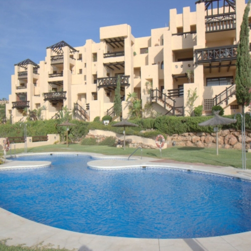 Lejligheden ligger i et sikkert community med 24 timers sikkerhedspersonale. I området er der 5 swimmingpools (den ene kun få meter fra lejligheden), padeltennis-baner og tropiske grønne haver - alt sammen til frit brug af boligejerne i området.