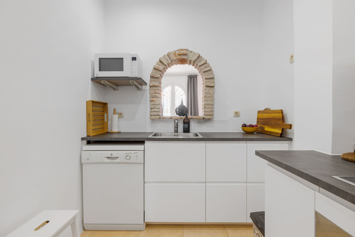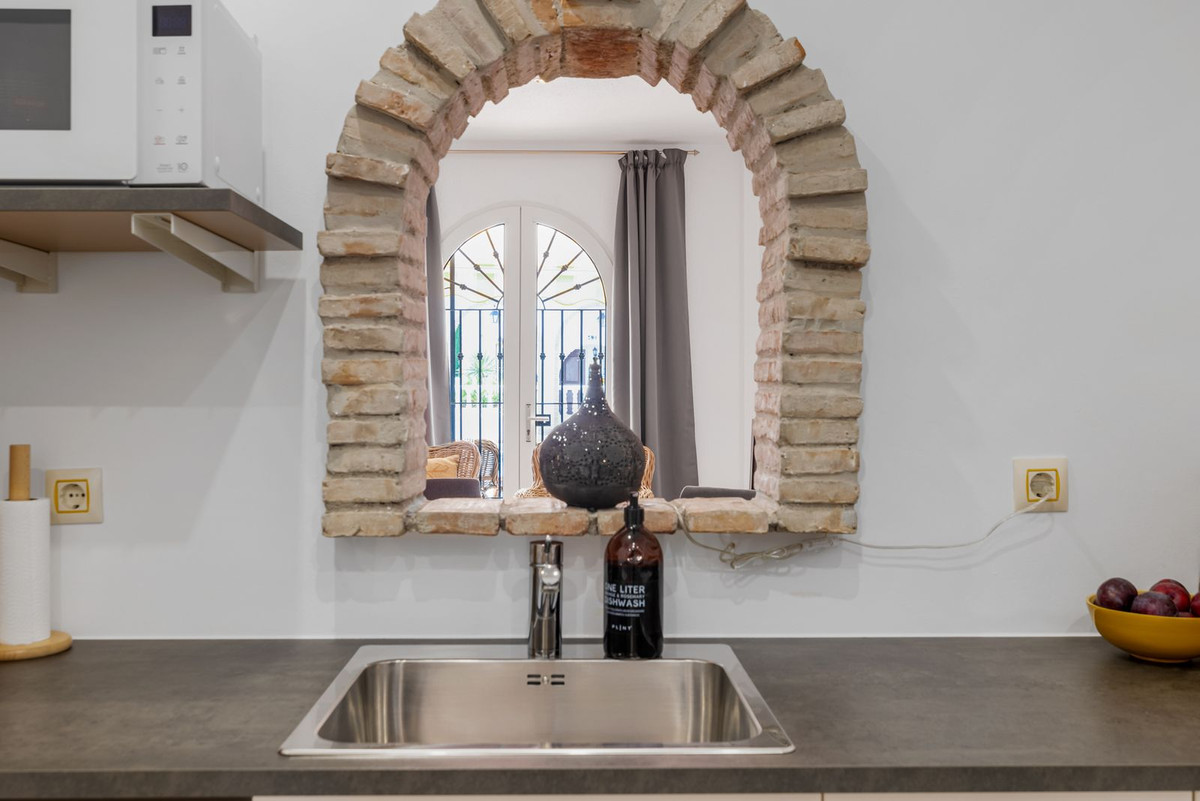 Lejligheden har for nyligt gennemgået en renovering og indeholder blandt andet nyt moderne køkken og badeværelse - men de charmerende Andalusiske detaljer går igen i hele lejligheden.