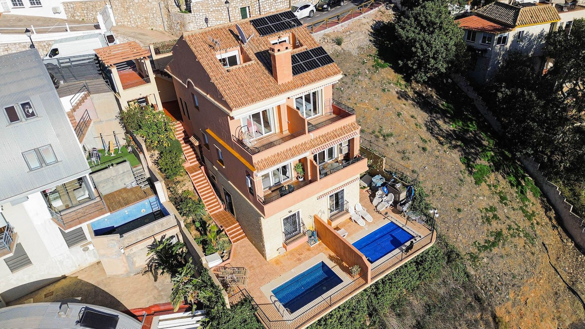 Smukt charmerende dobbelthus til salg med betagende hav- og bjergudsigt! I Torreblanca, Fuengirola.