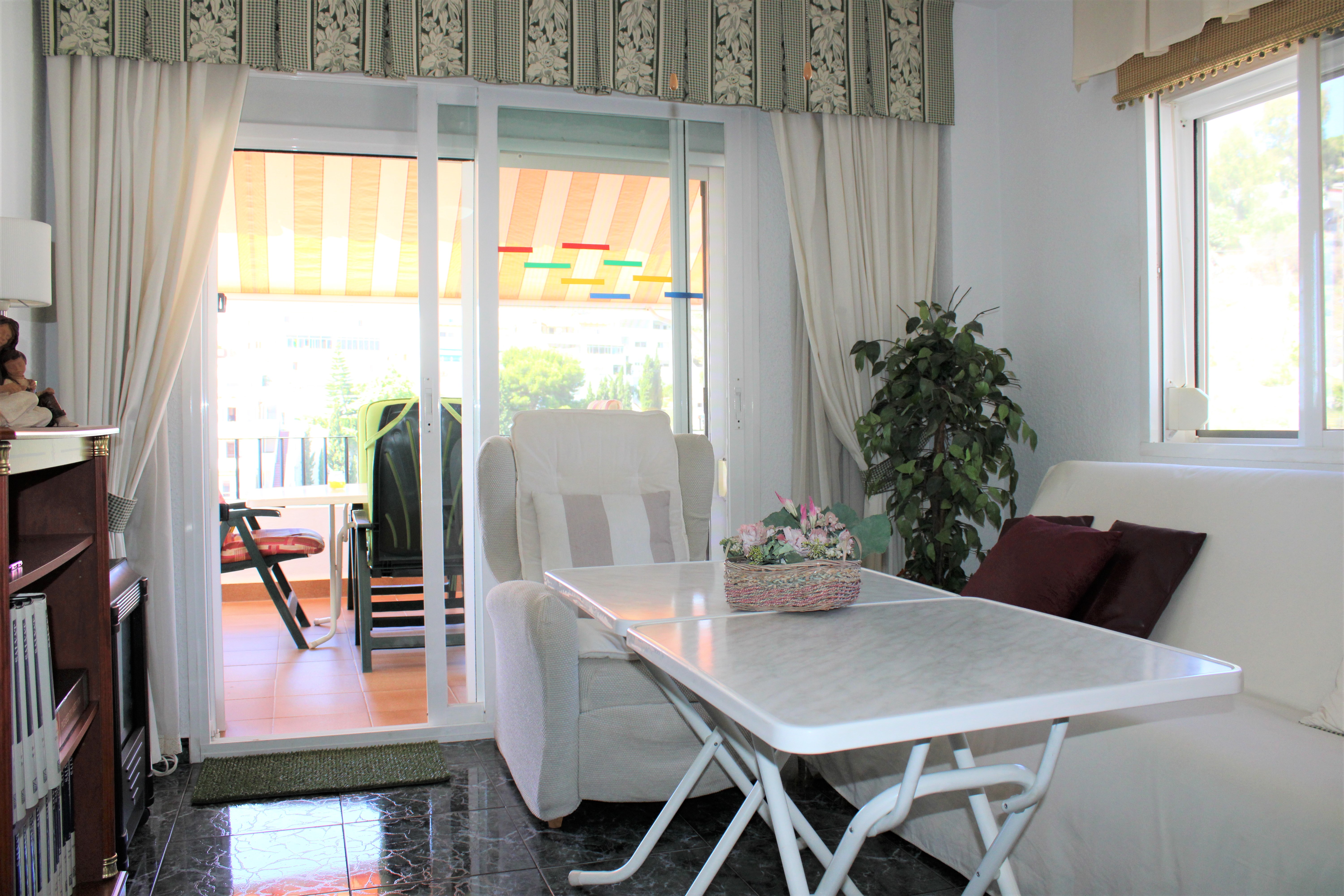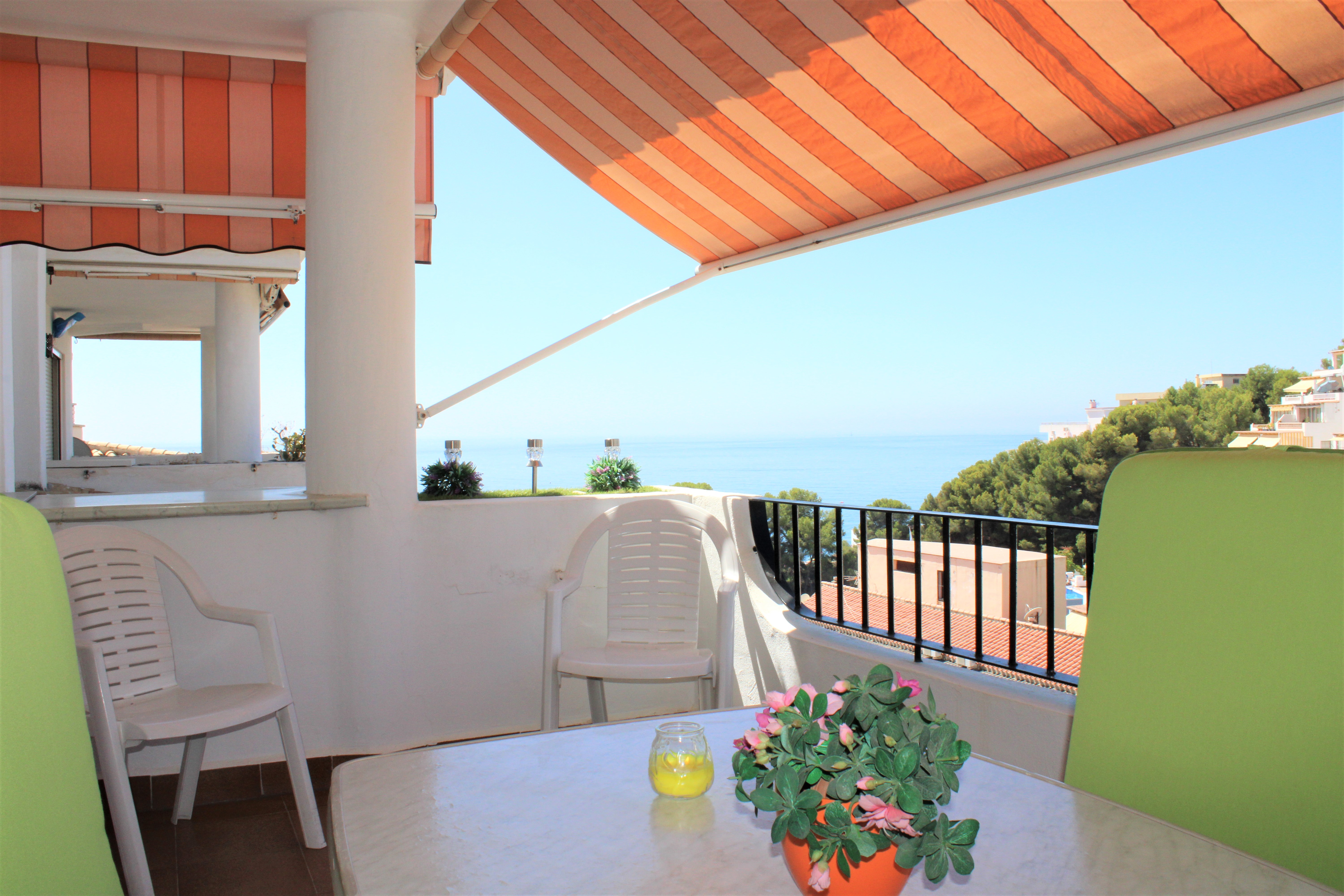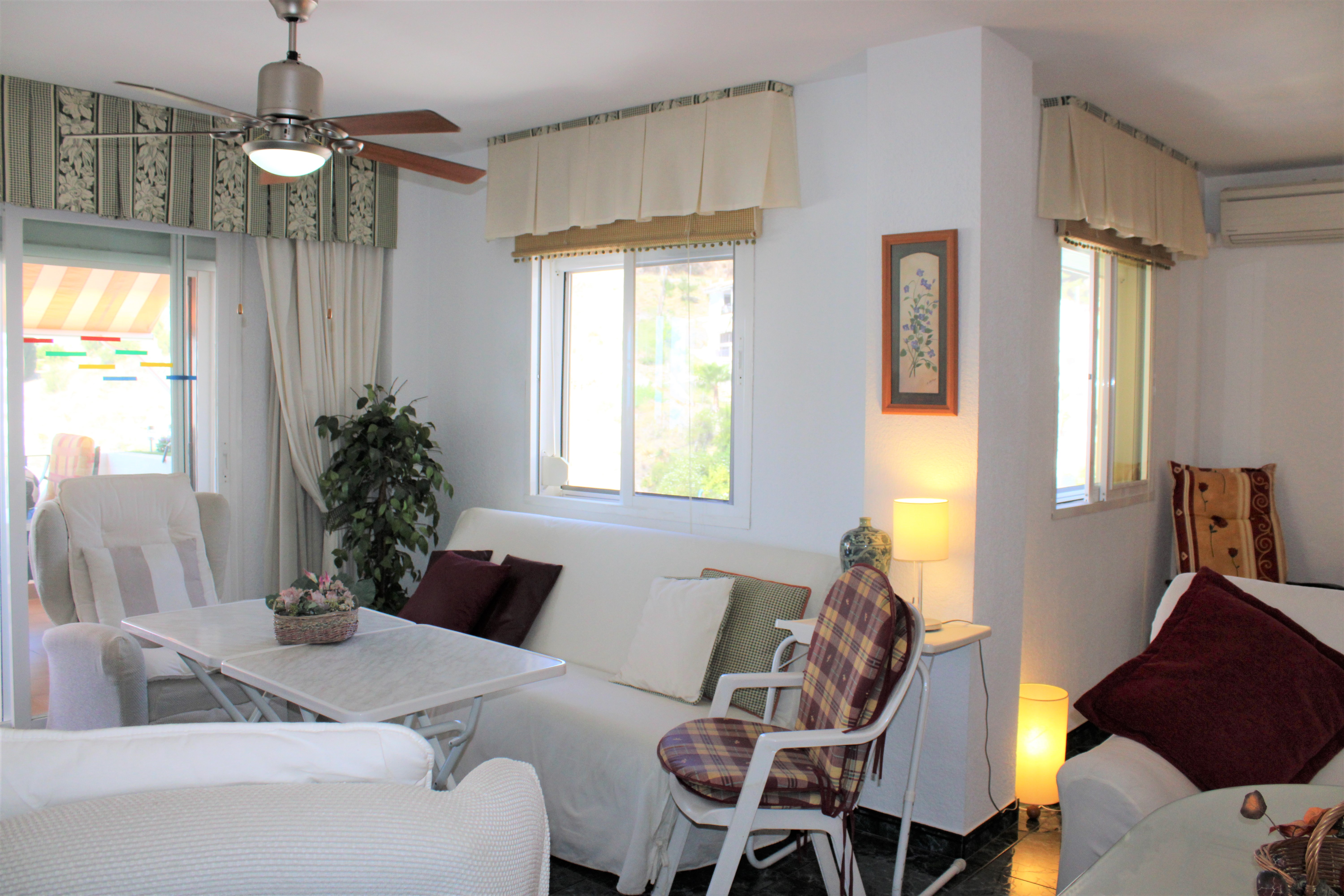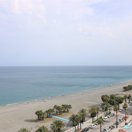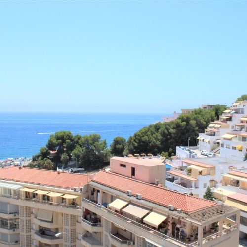 Velholdt stor lys lejlighed på 117 m2 med en dejlig terrasse og vidunderlig udsigt over Middelhavet og bjergene, beliggende i et lukket samfund og kun 150 meter fra stranden. Placeret på syvende etage og elevatoren stopper lige foran indgangsdøren, dørtelefon tilgængelig. Ingen naboer på begge sider af lejligheden. Stor fælles pool beliggende lige nedenunder fra lejligheden. Udover den fælles parkering er der et aflåst område, der er ideelt til eksempelvis langtidsparkering.