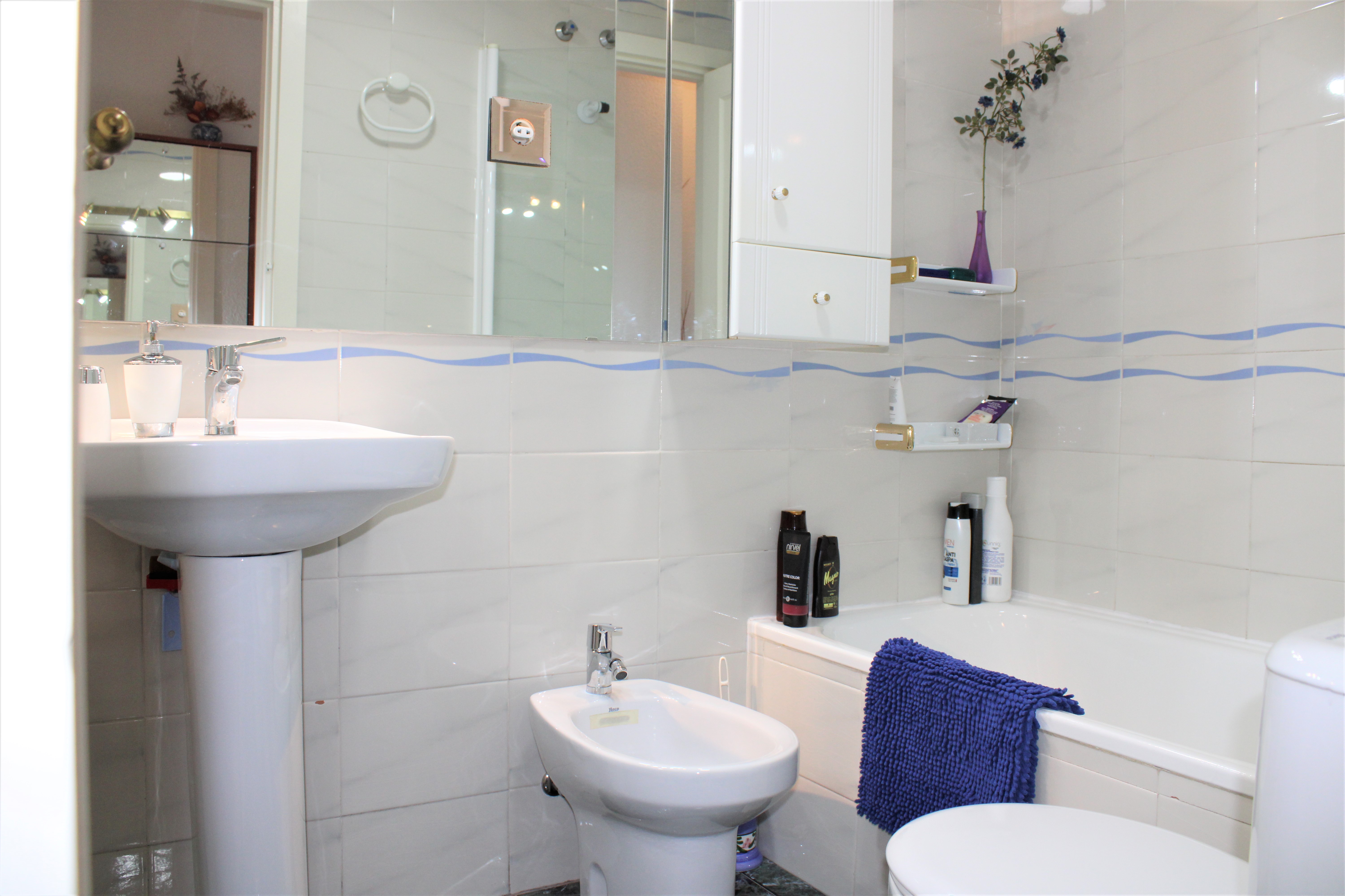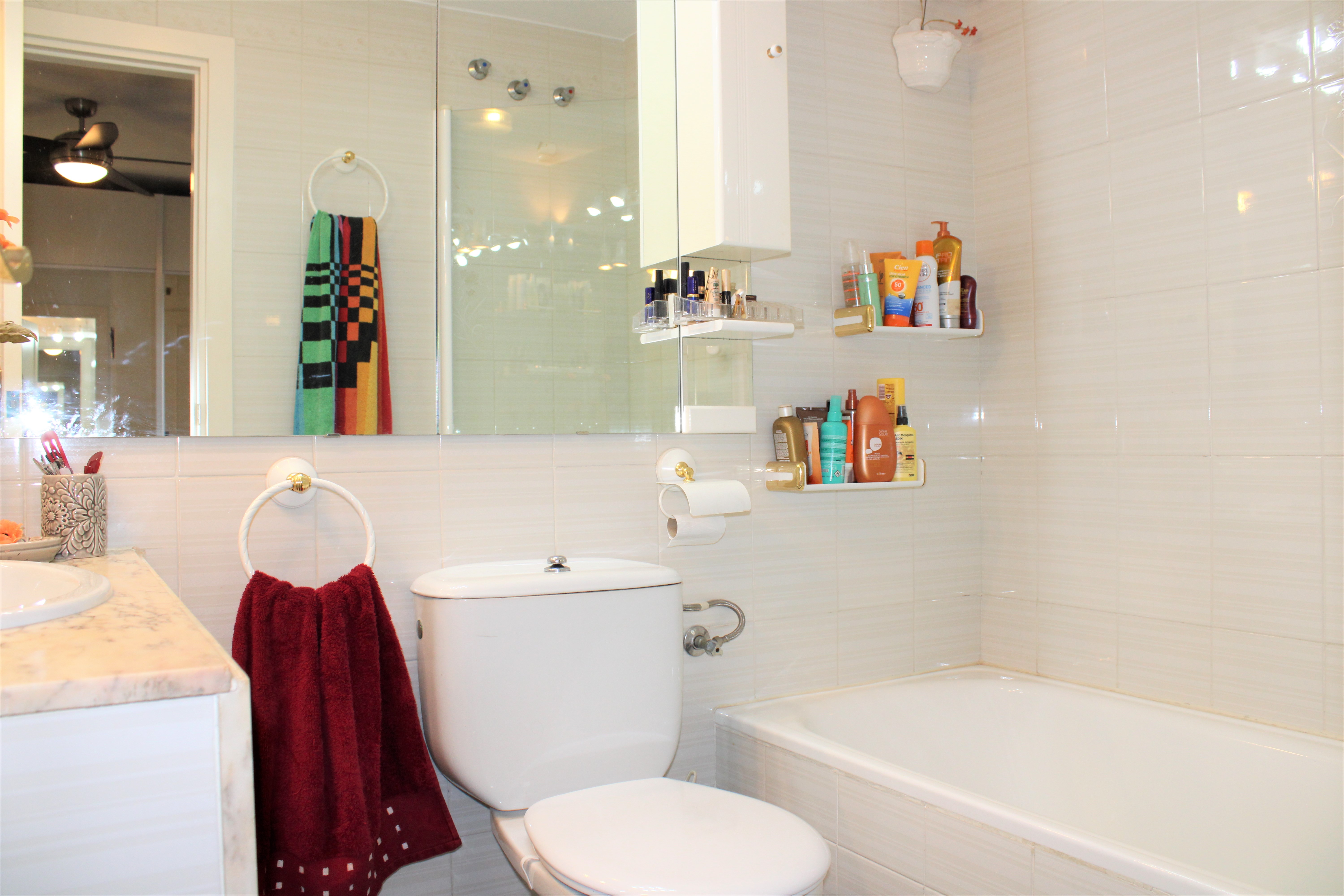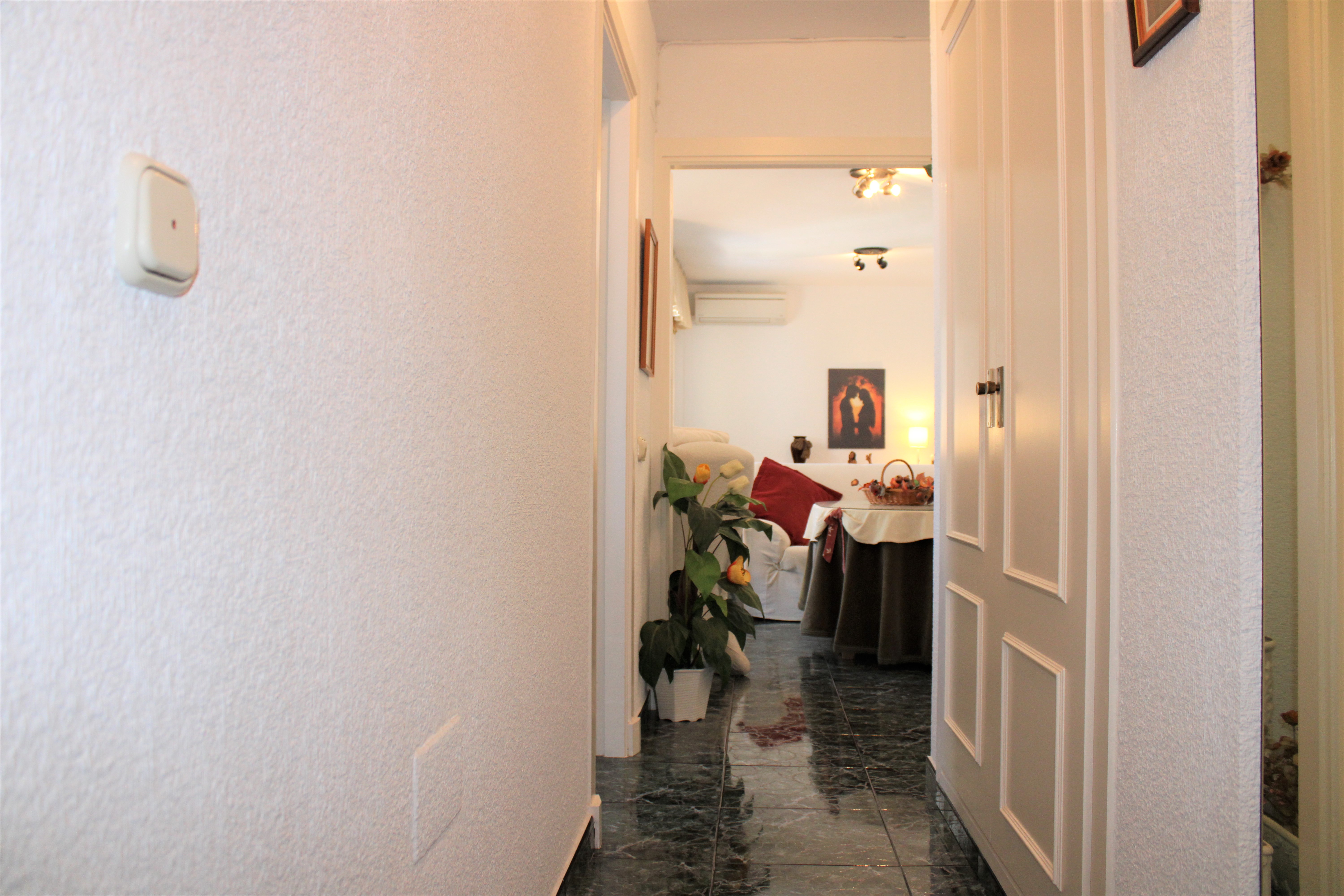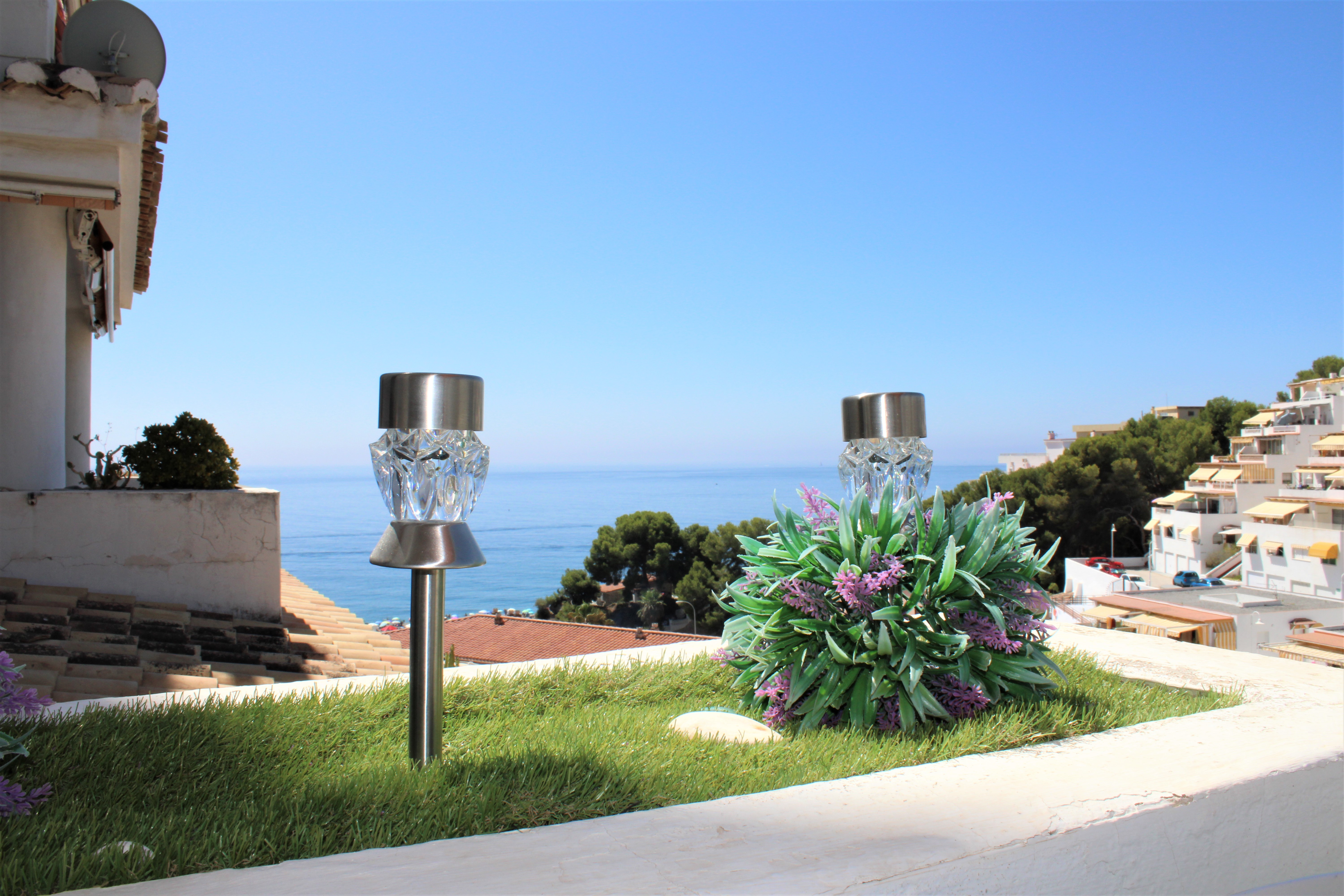 Velholdt stor lys lejlighed på 117 m2 med en dejlig terrasse og vidunderlig udsigt over Middelhavet og bjergene, beliggende i et lukket samfund og kun 150 meter fra stranden. Placeret på syvende etage og elevatoren stopper lige foran indgangsdøren, dørtelefon tilgængelig. Ingen naboer på begge sider af lejligheden. Stor fælles pool beliggende lige nedenunder fra lejligheden. Udover den fælles parkering er der et aflåst område, der er ideelt til eksempelvis langtidsparkering.