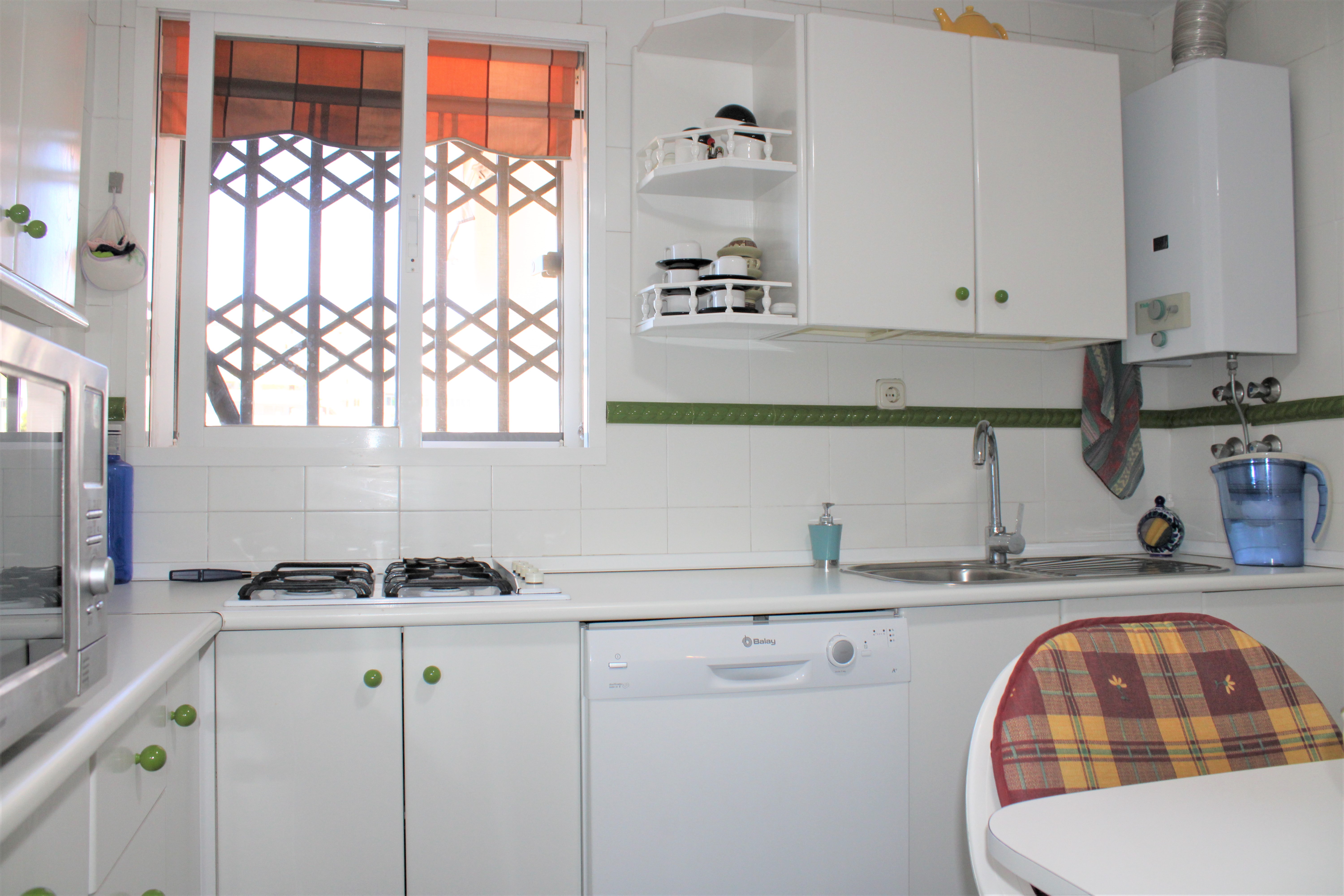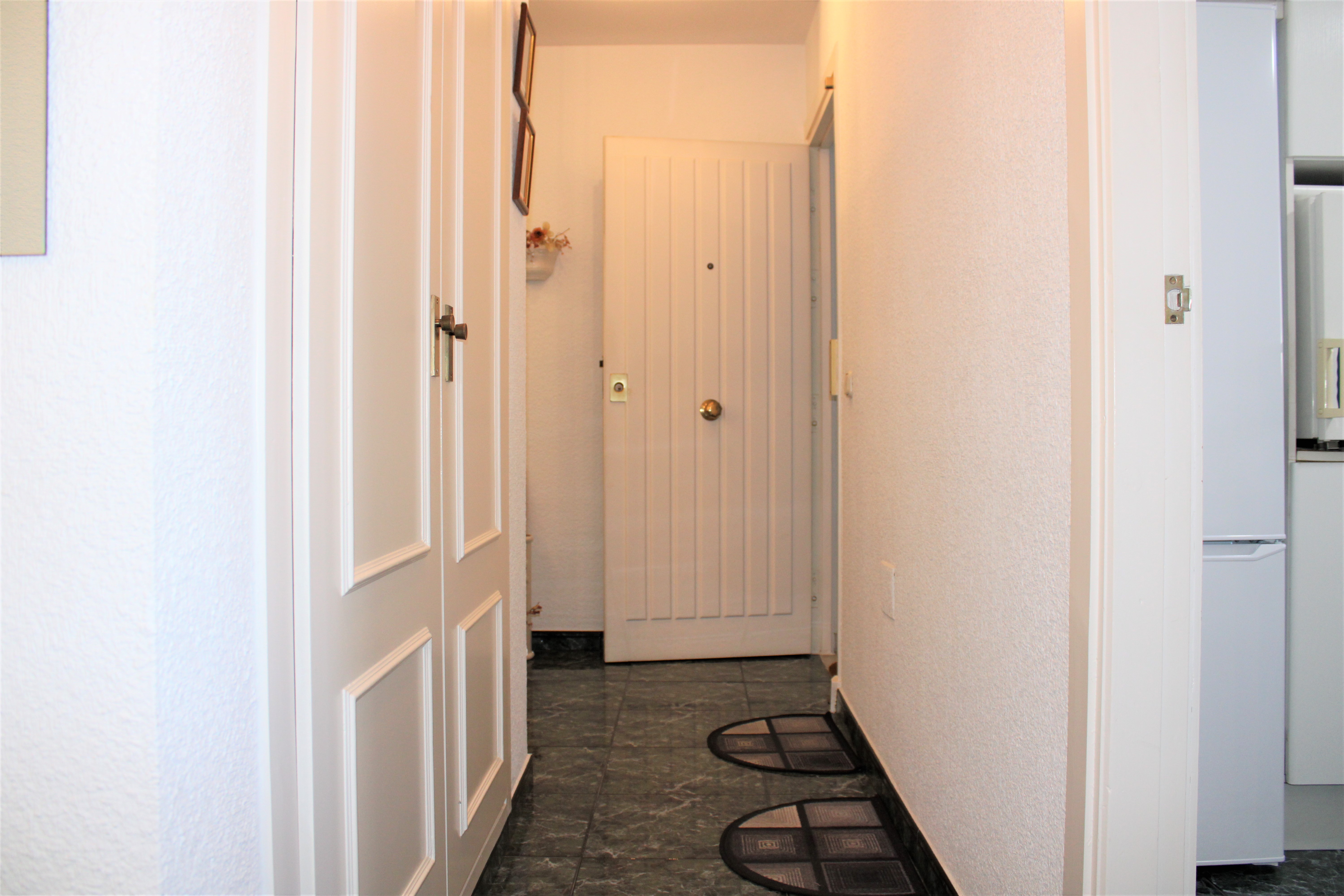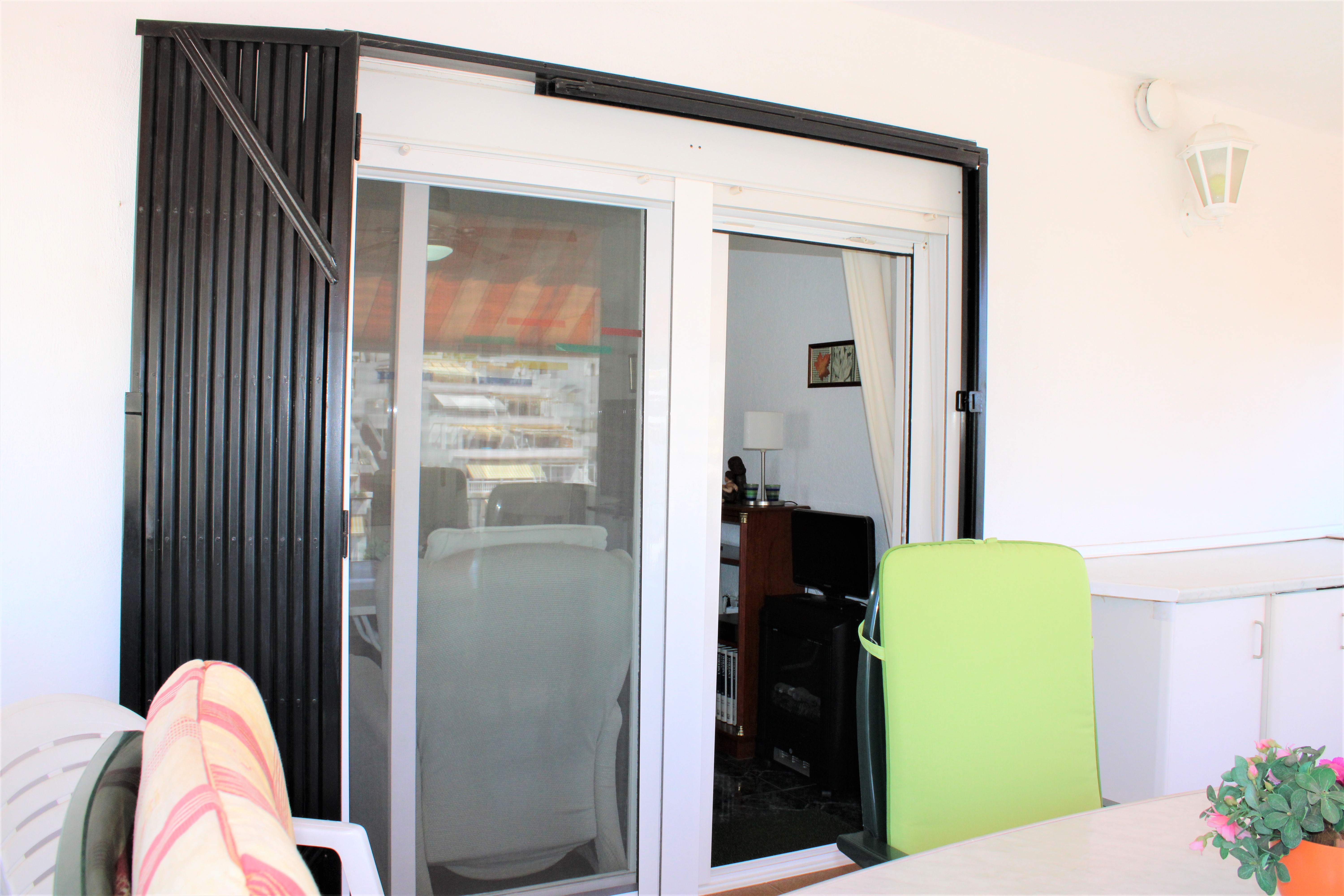 På terrassen har du også en vaskemaskine, med skodder foran, så den ikke er synlig. Dørene til terrasserne og alle vinduerne er lavet af aluminiumsprofil og glider sidelæns. De er også udstyret med myggenet. Lejligheden har også et opbevaringsrum, der ligger ved siden af indgangen i stueetagen. Perfekt til opbevaring af private ting, golfsæt, cykel m.m.