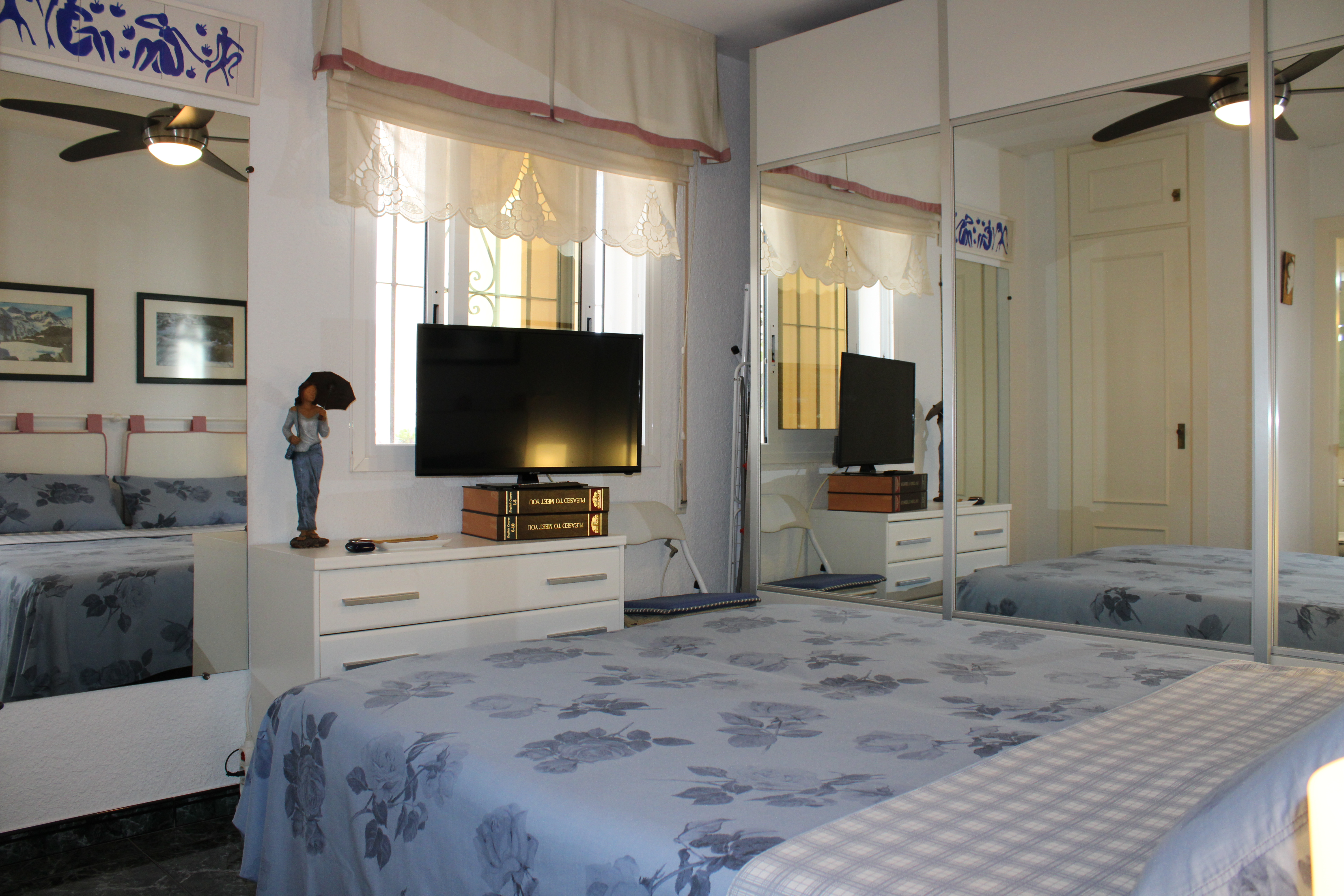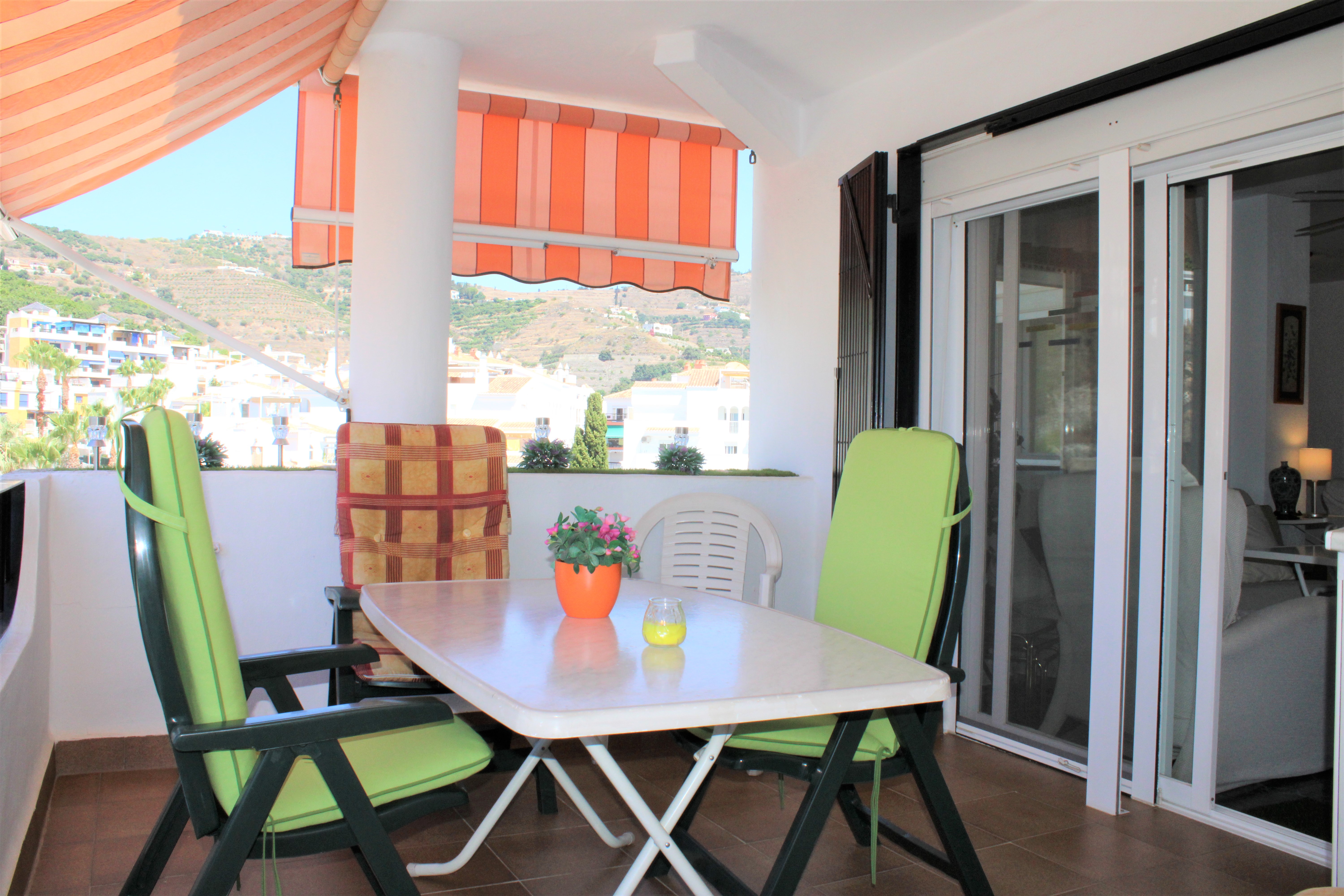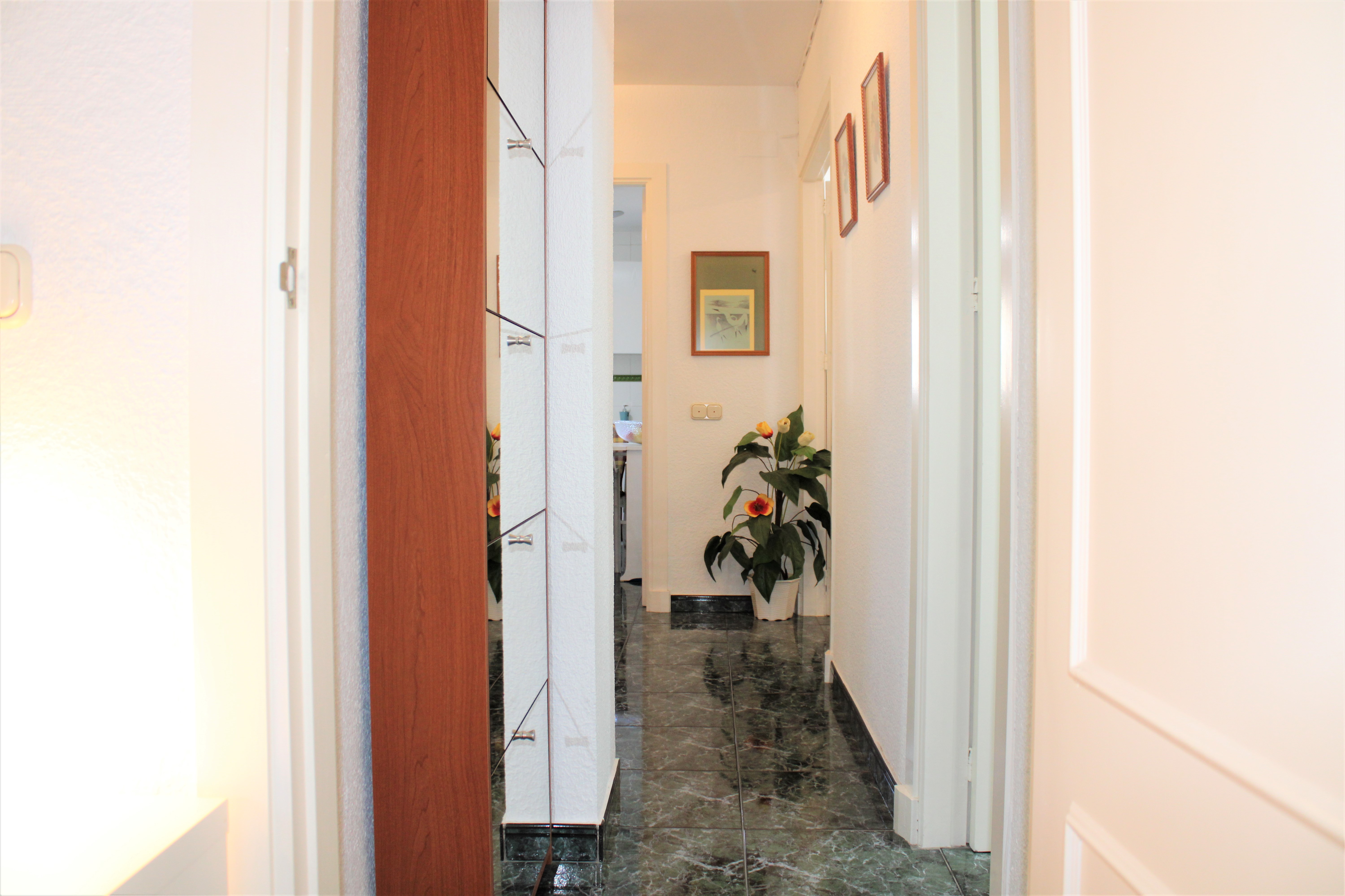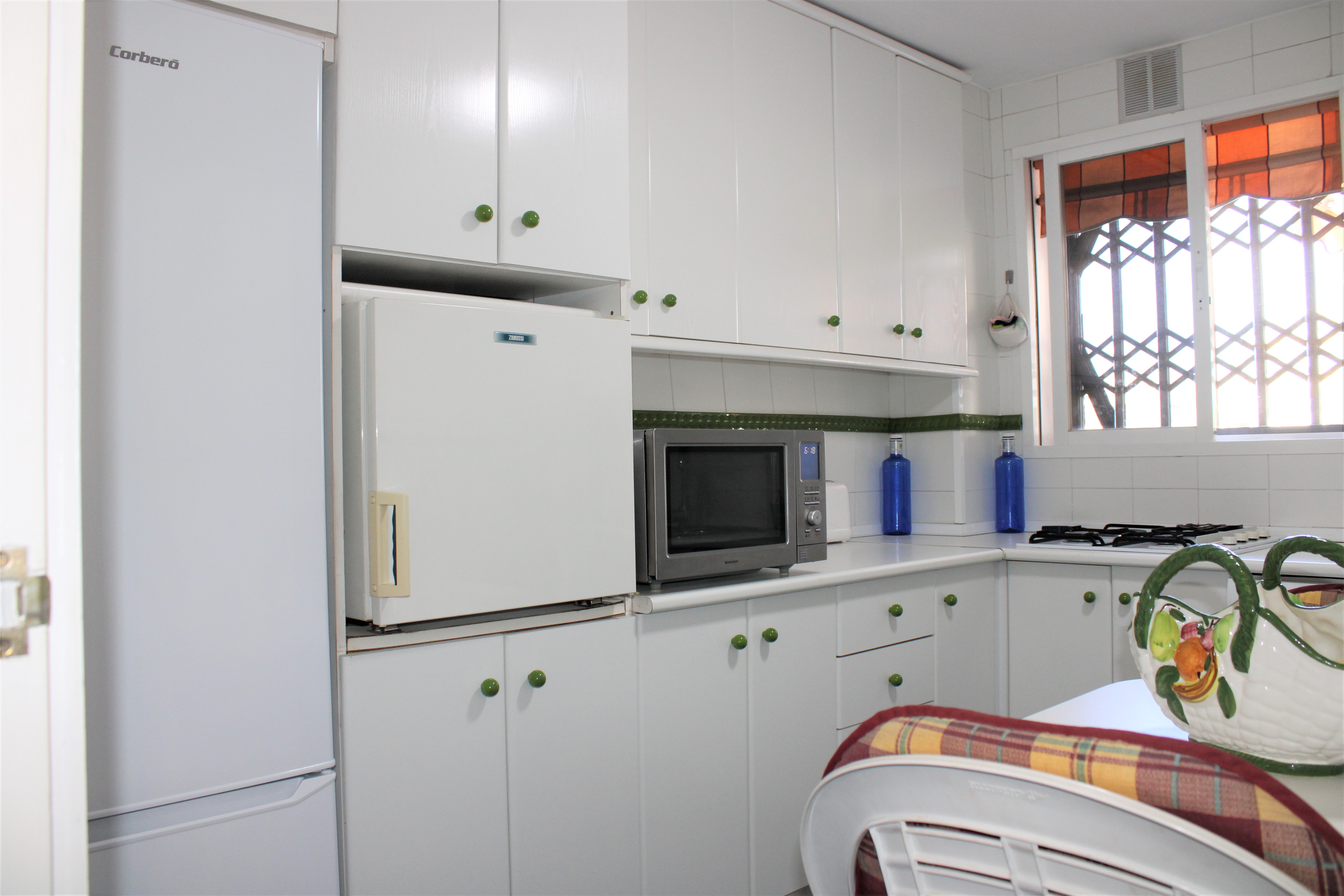 På terrassen har du også en vaskemaskine, med skodder foran, så den ikke er synlig. Dørene til terrasserne og alle vinduerne er lavet af aluminiumsprofil og glider sidelæns. De er også udstyret med myggenet. Lejligheden har også et opbevaringsrum, der ligger ved siden af indgangen i stueetagen. Perfekt til opbevaring af private ting, golfsæt, cykel m.m.