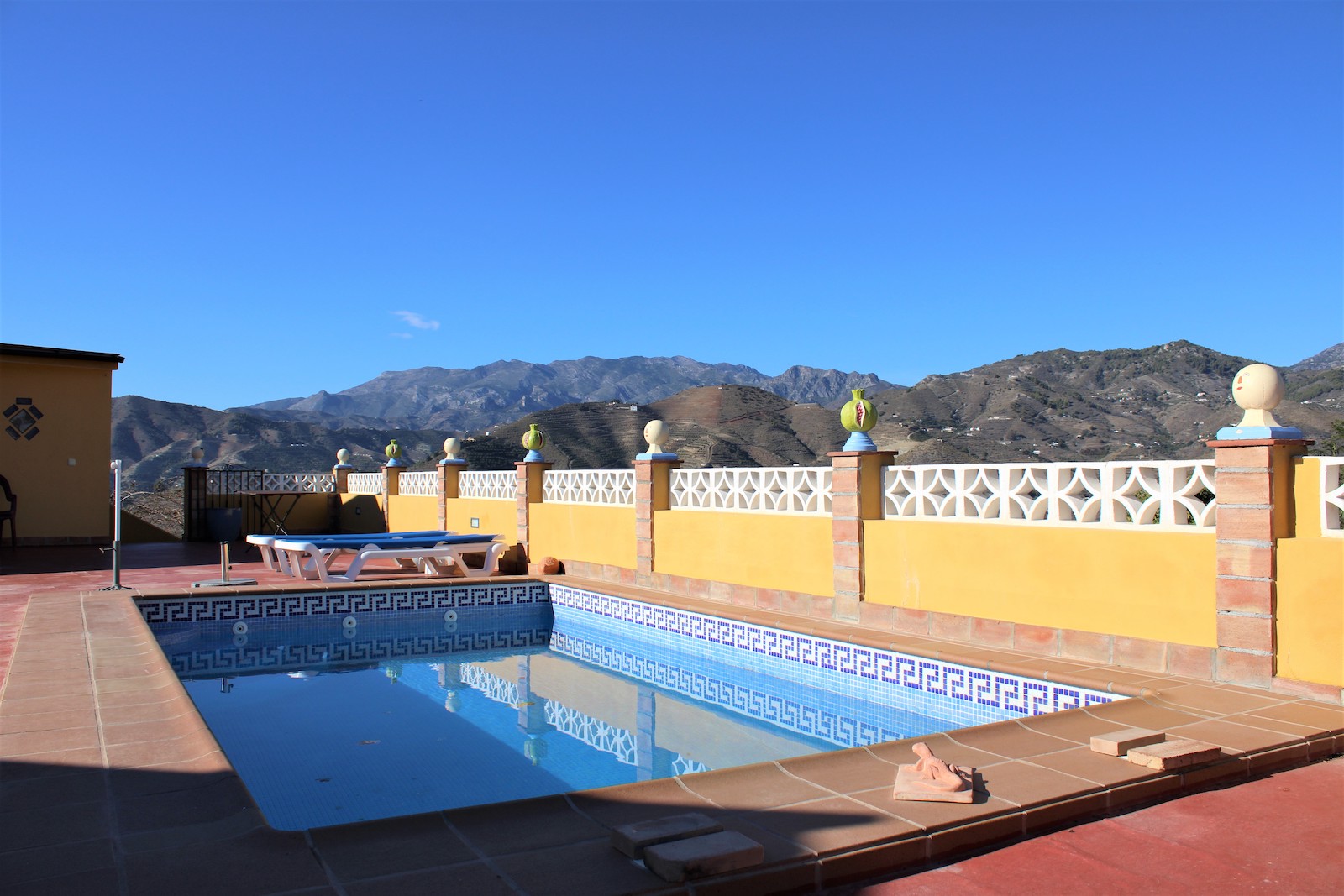 Unik mulighed for at erhverve en pool villa med fantastisk udsigt og inden for 10 minutters kørsel til Almuñécar strand. Meget velholdt ejendom med eget vanddepot en meget flot frugthave.