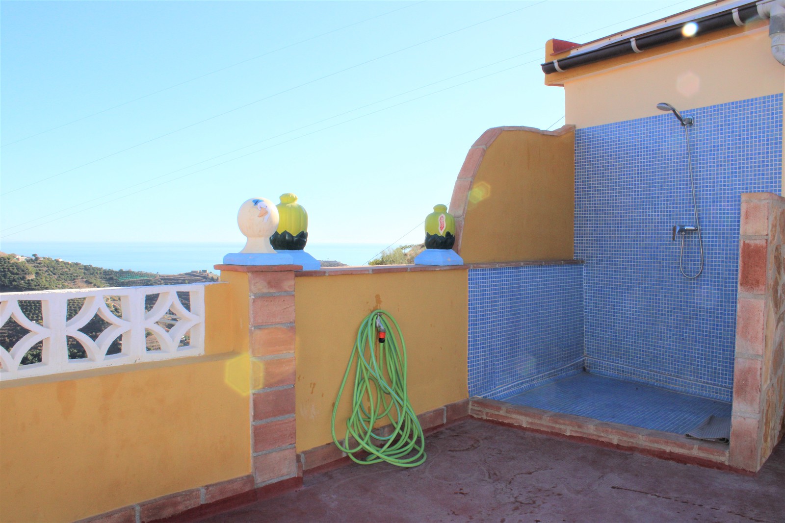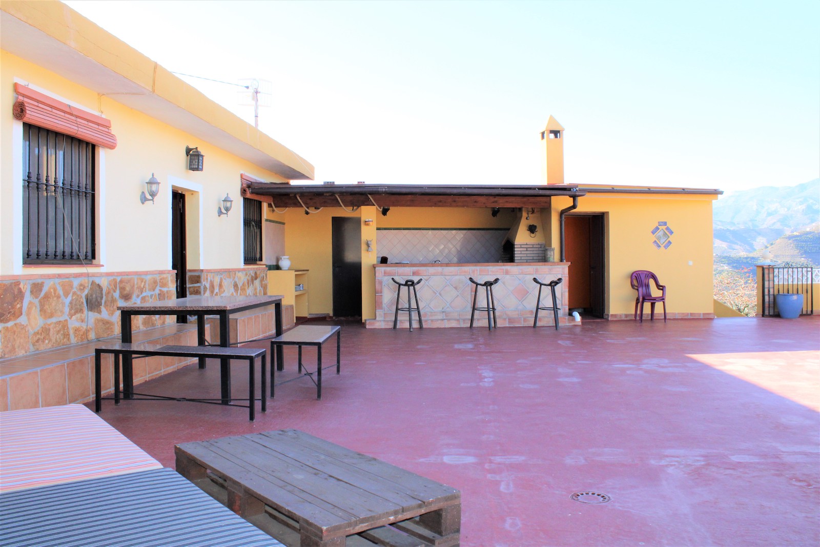 Villaen er opdelt i to plan og på den øverste del har du opholdsstue med soveværelse med indbygget skabe, et badeværelse med bruser og vaskemaskine, åben planløsning med køkken og stue. Her har du også et fantastisk pool område, med både havudsigt og skøn udsigt over bjergene. På den store terrasse er der udendørs bruser, depotrum og hyggeligt udekøkken med grill og bardisk.