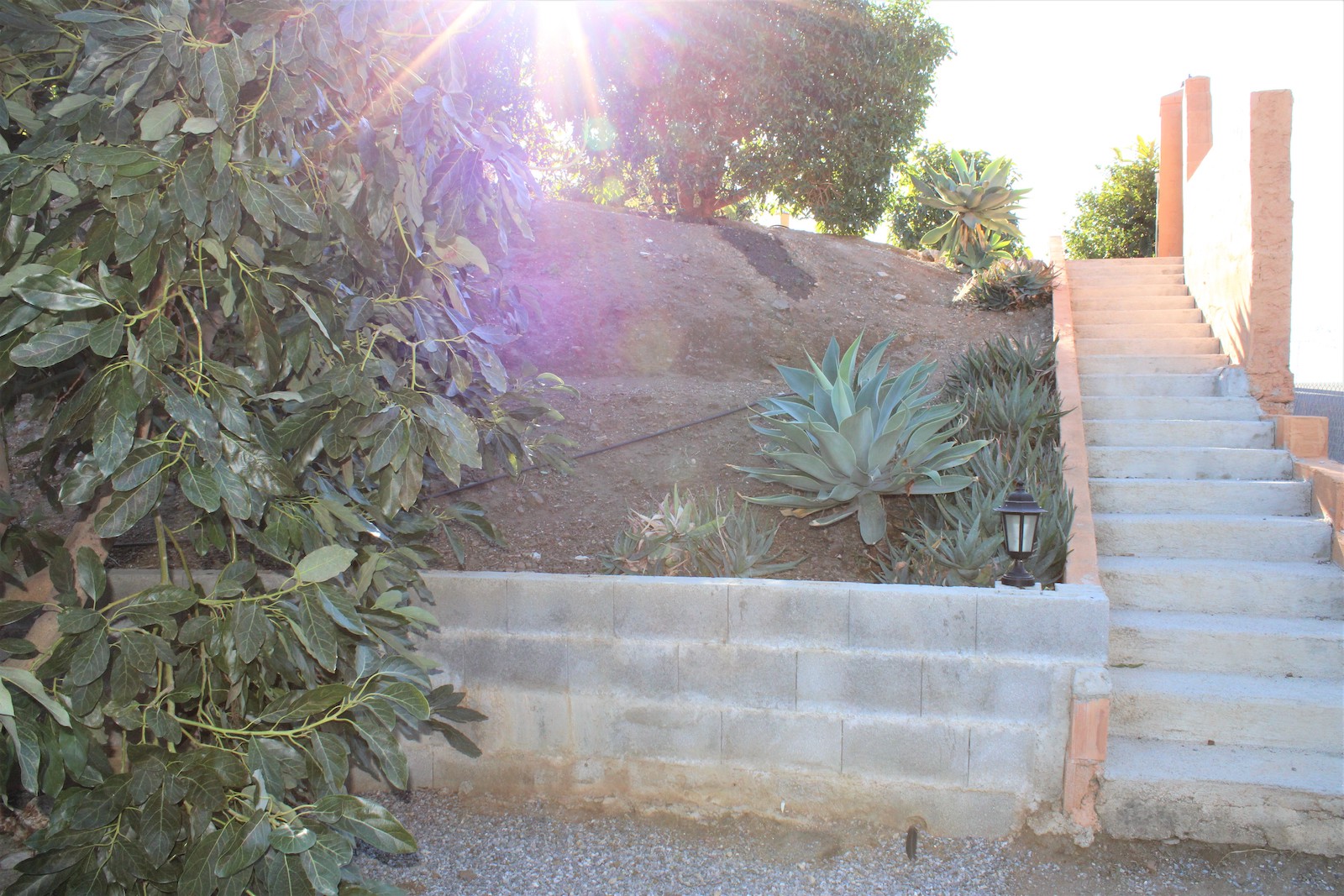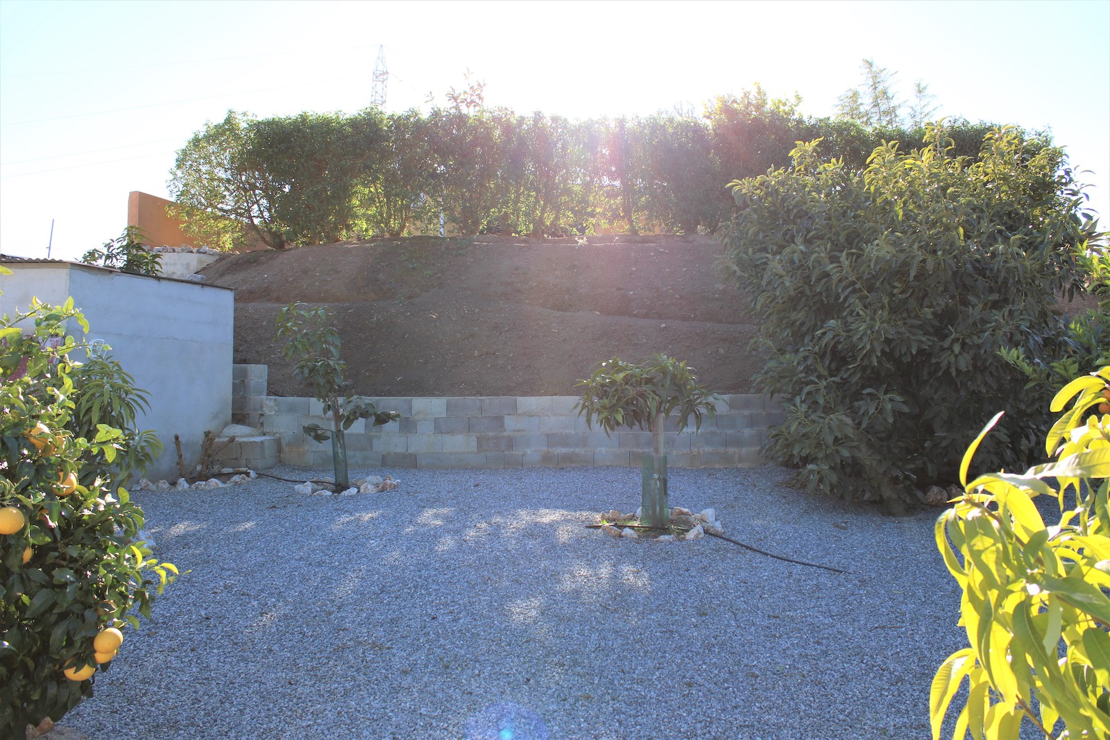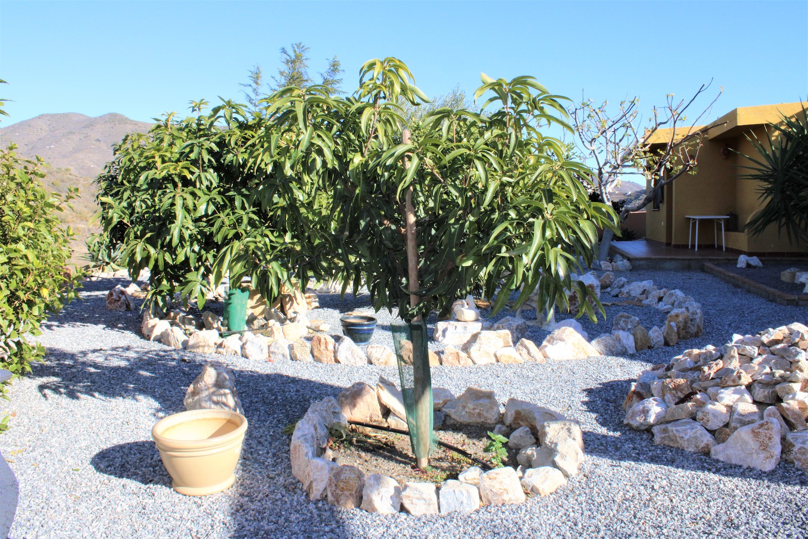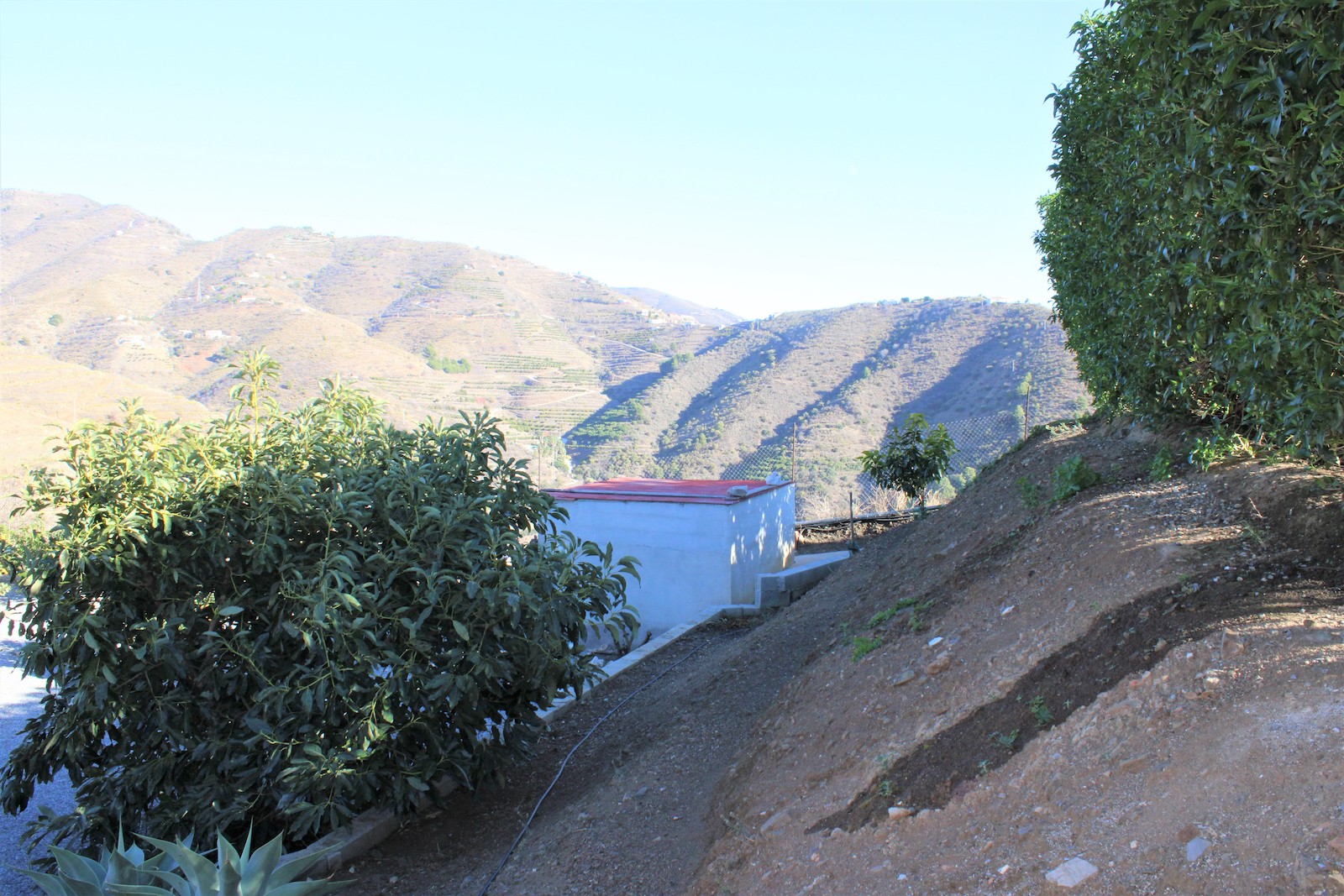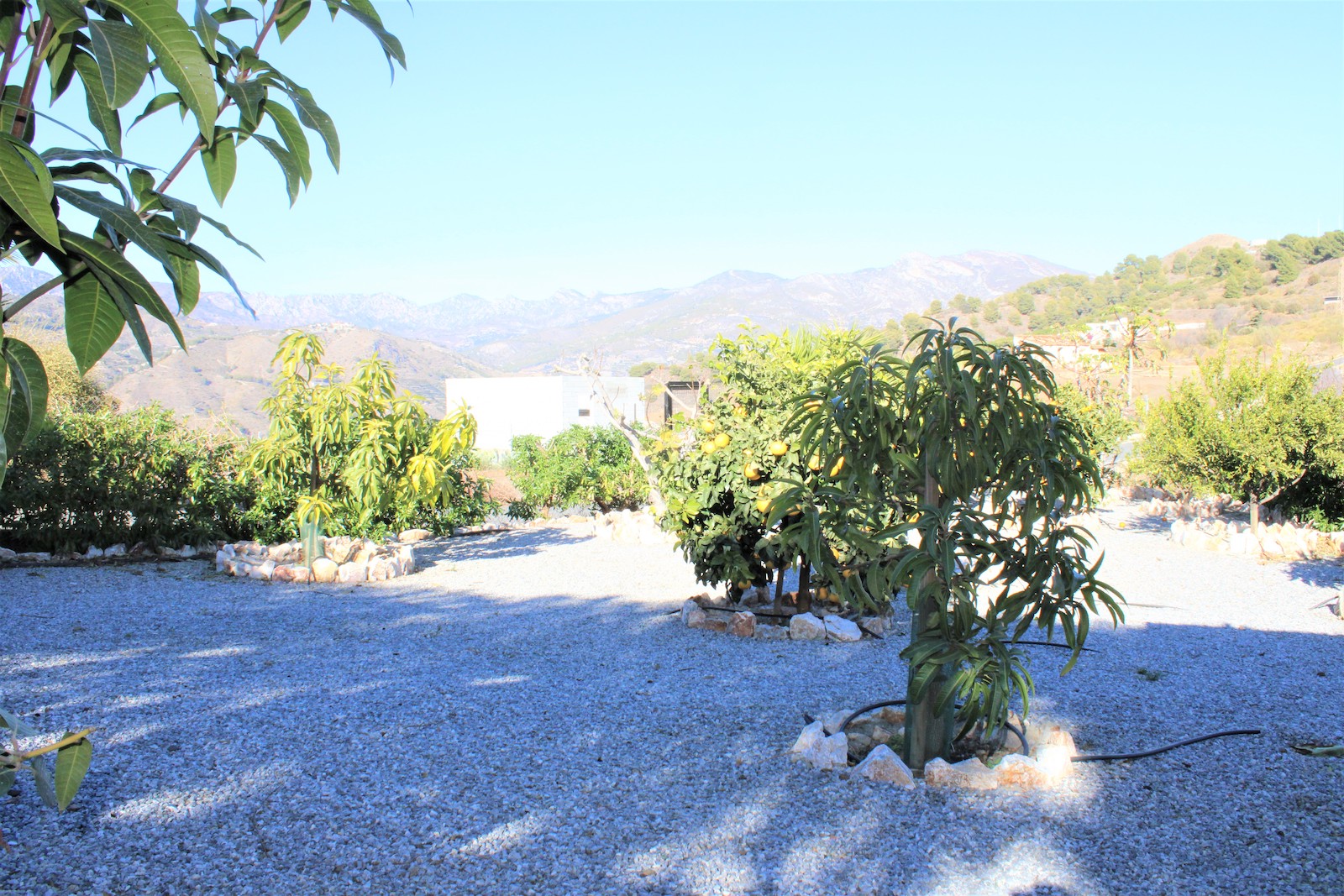 Går vi ned af trapperne finder vi den første af to, velholdte frugtplantager. Her ligger den anden boligen, med et soveværelse og et badeværelse med bruser. Du finder også en stor kælder med gode muligheder og lagerplads. Her har ejeren lavet en spa afdeling. Vi går ned af endnu en trappe og finder dér den anden velholdte frugthave.
