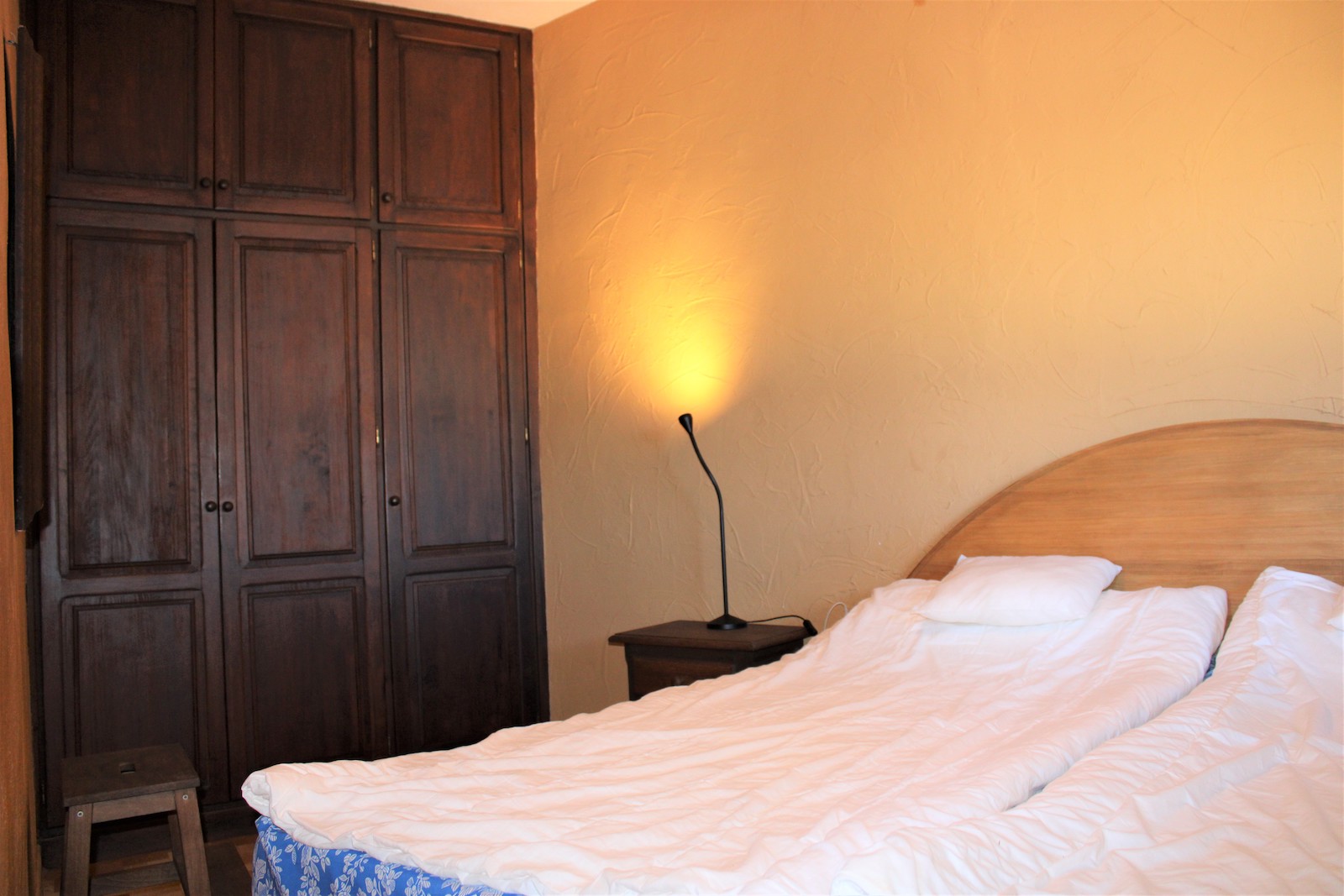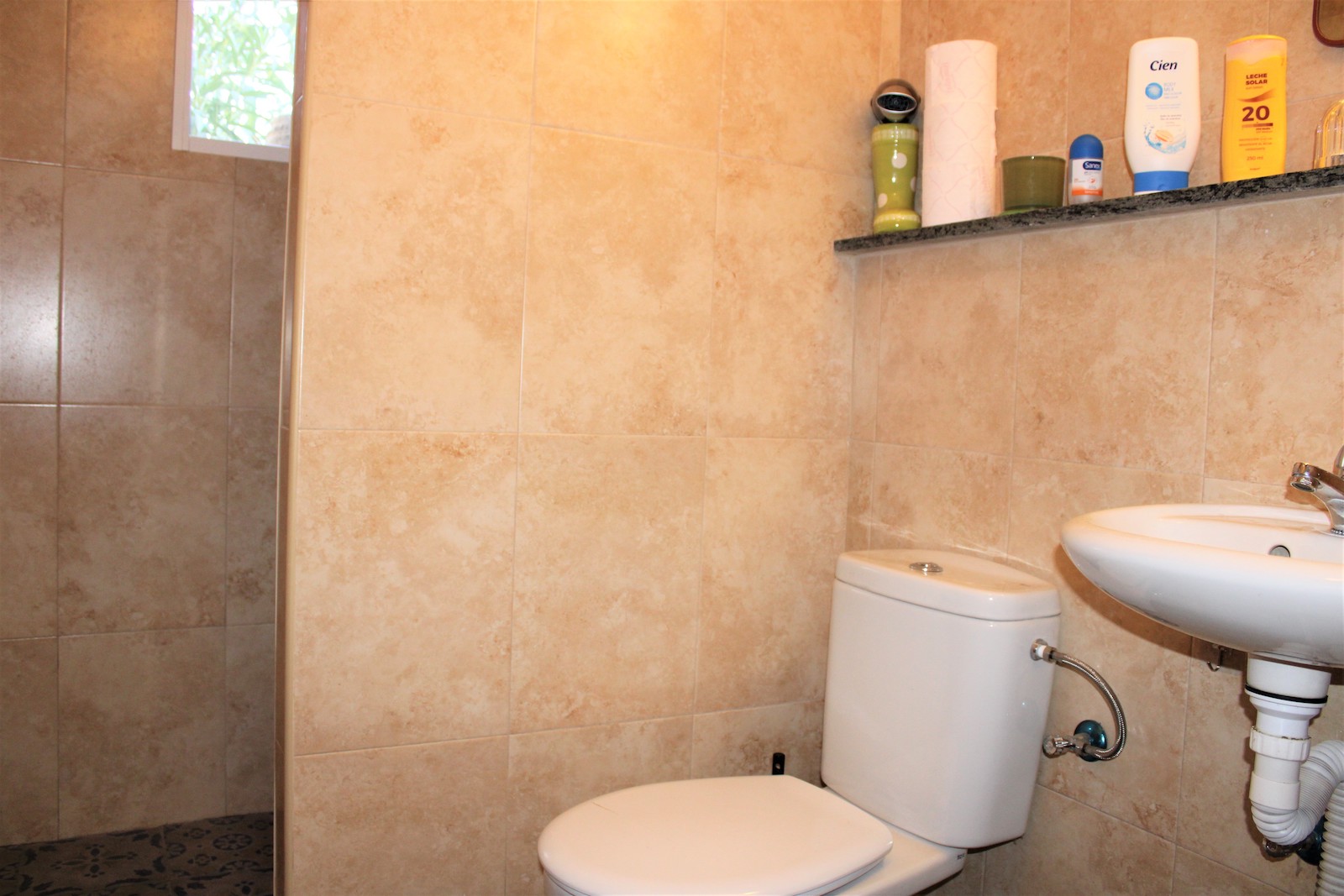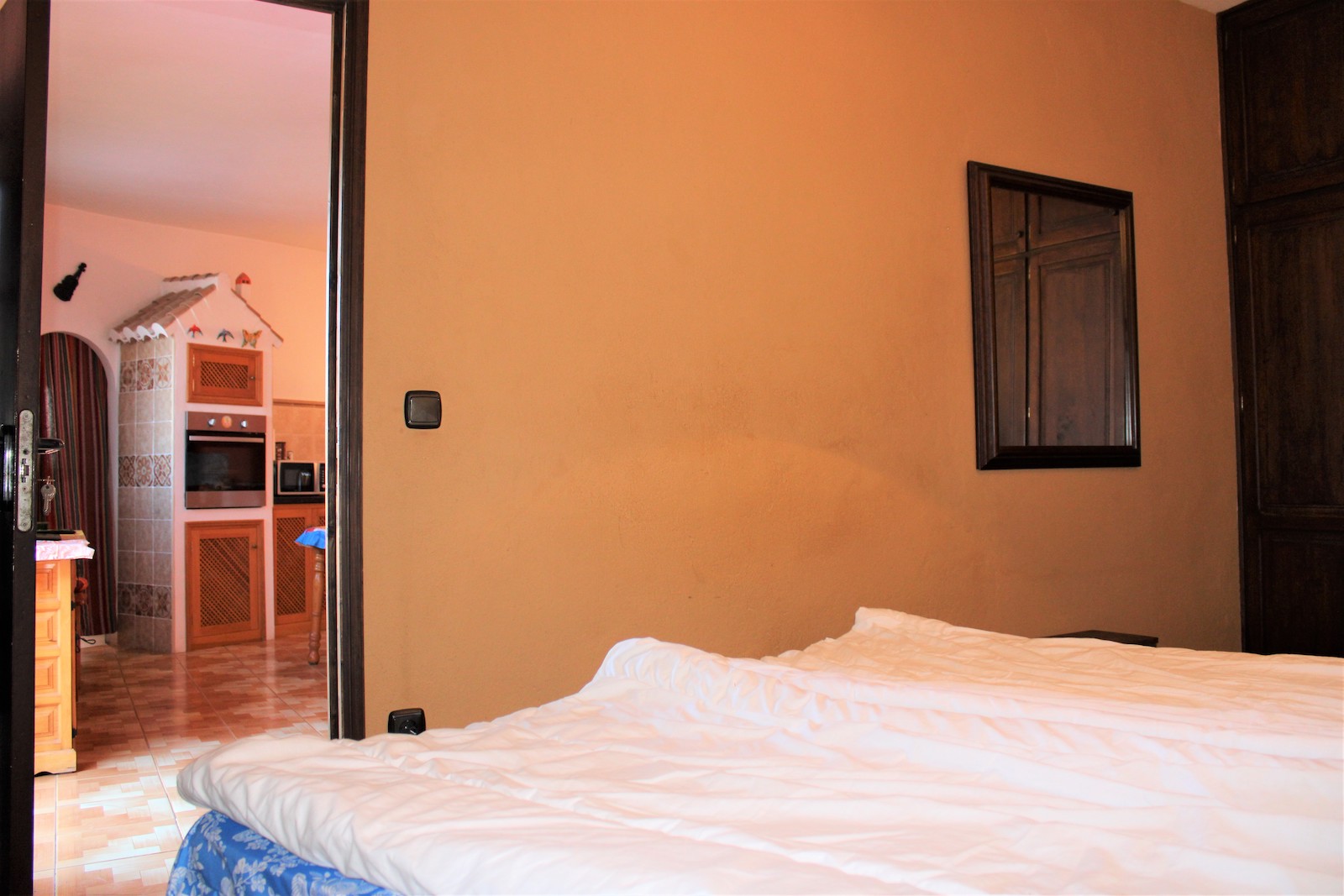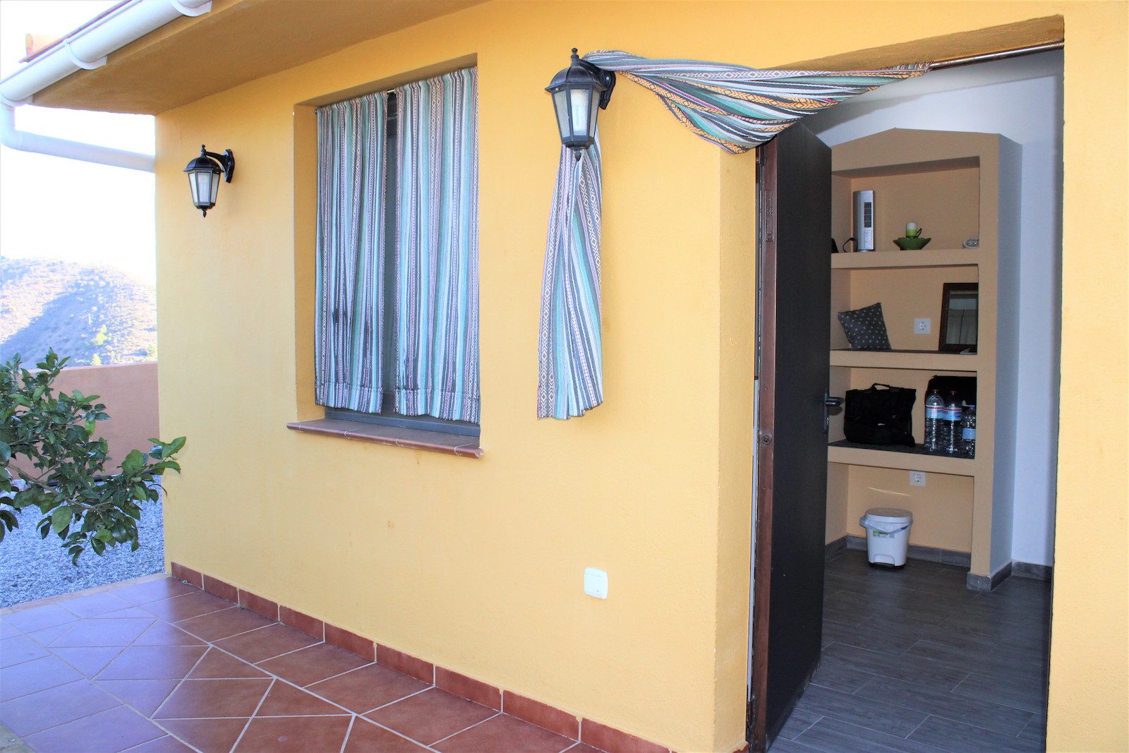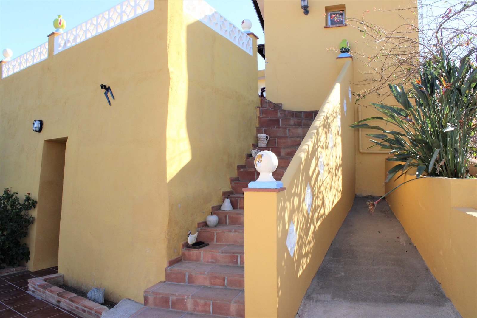 Går vi ned af trapperne finder vi den første af to, velholdte frugtplantager. Her ligger den anden boligen, med et soveværelse og et badeværelse med bruser. Du finder også en stor kælder med gode muligheder og lagerplads. Her har ejeren lavet en spa afdeling. Vi går ned af endnu en trappe og finder dér den anden velholdte frugthave.