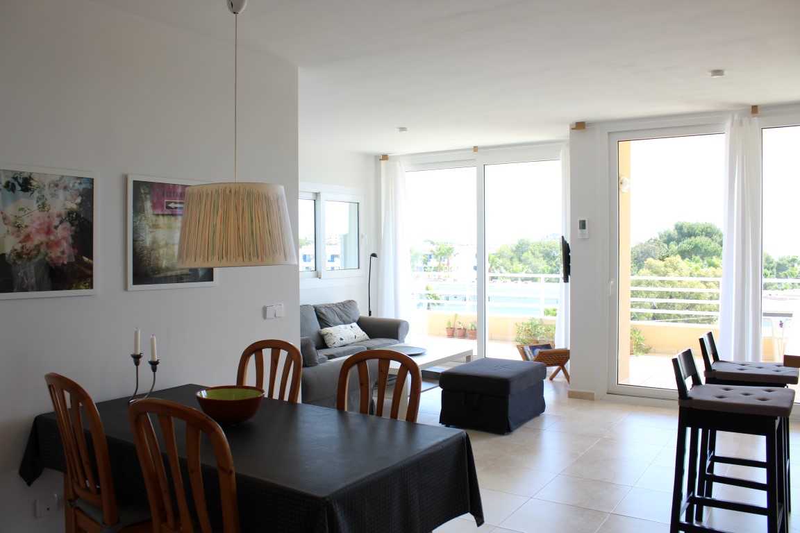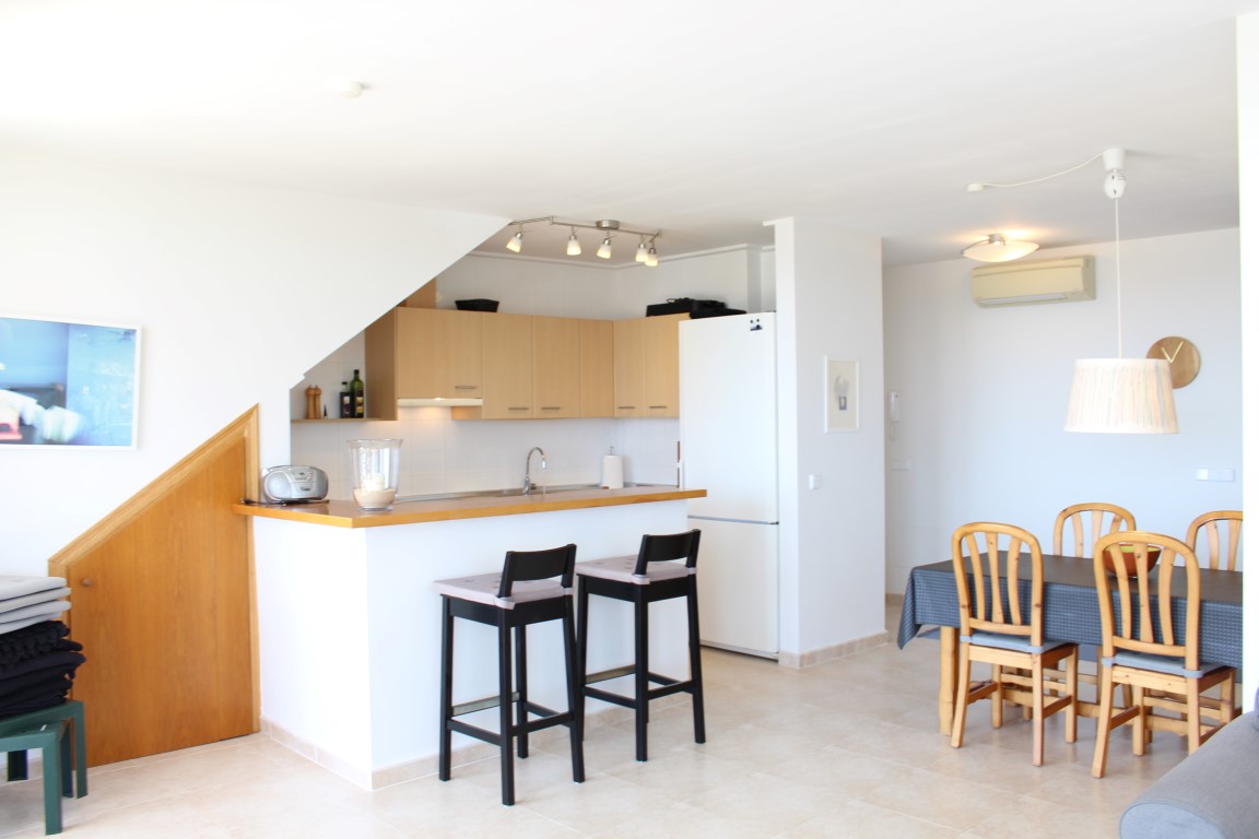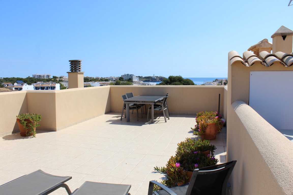 Denne fantastiske penthouse med en bred tagterrasse på 100m2, denne penthouse indeholder 3 soveværelser med dobbeltsenge, 2 badeværelser, stue / spisestue med et integreret fuldt udstyret køkken spredt ud over et opholdsareal på 100m2 og ovenpå, en balkon med en udsigt over havet. Porto colom er kendt for sit stille og smukke miljø.