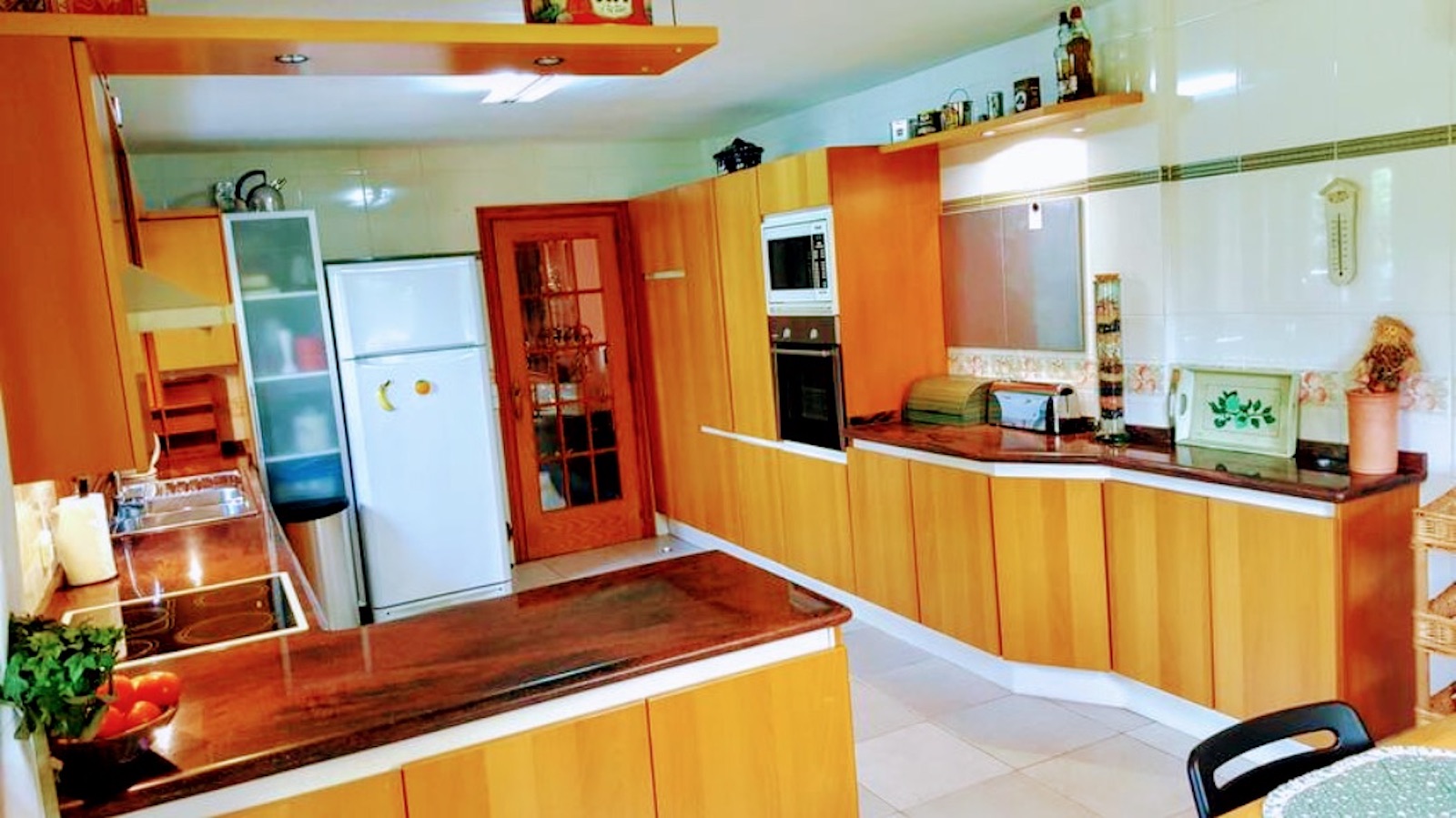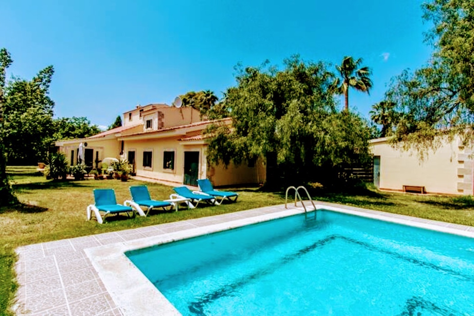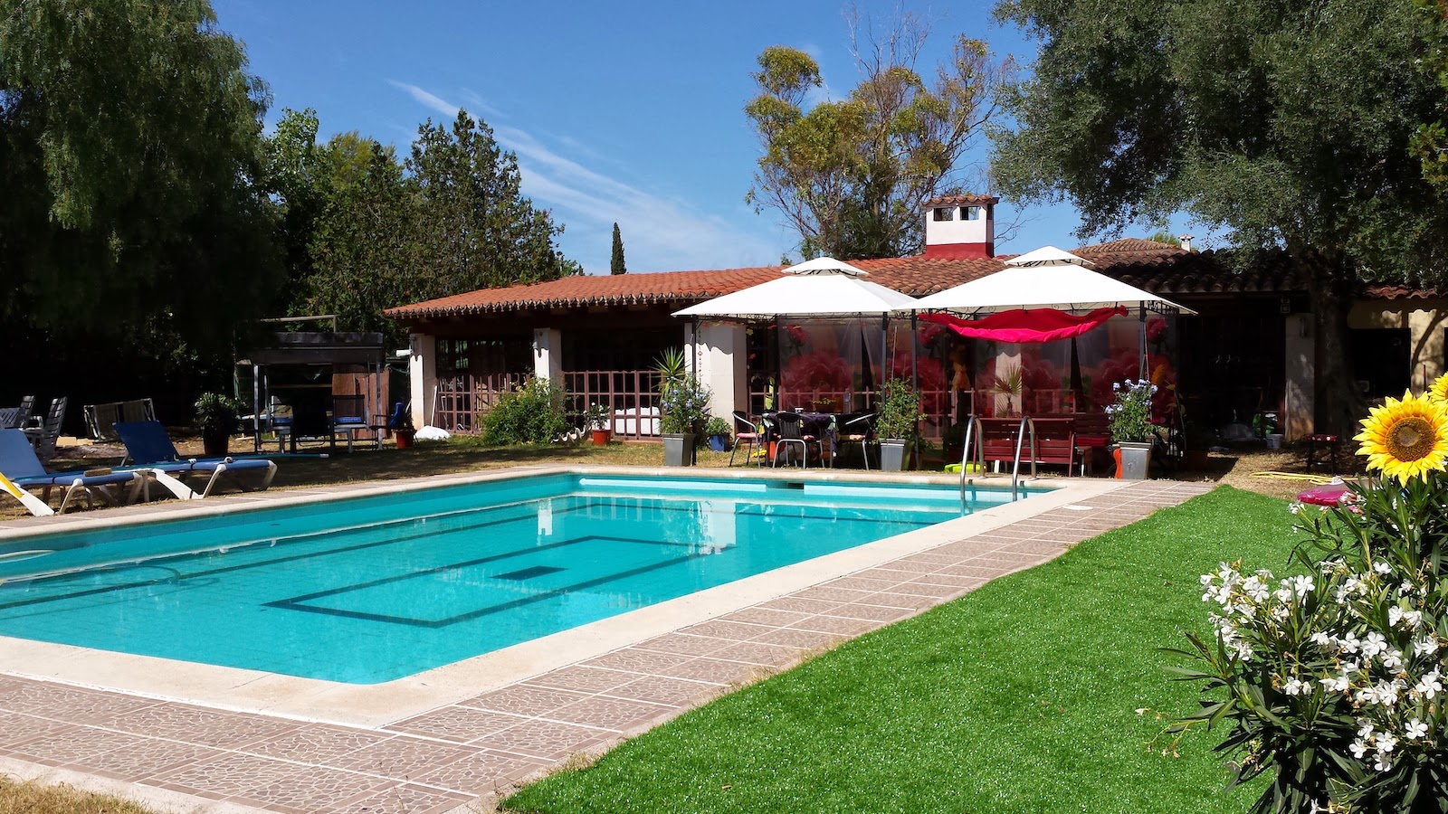 Fritliggende hus på en grund på 2.100 m2 ca. med pool. Boligen er på 369 m2 indeholdende en stue med pejs på 60 m2, 5 soveværelser med dobbeltsenge, garderobeskabe, påklædningsværelse, 4 badeværelser (1 en suite), stort køkken på 23 m2 med spisekammer inkluderet og en lille vinkælder under køkkenet på ca 9m2. I hele huset er der aircondition med varm og kold luft.