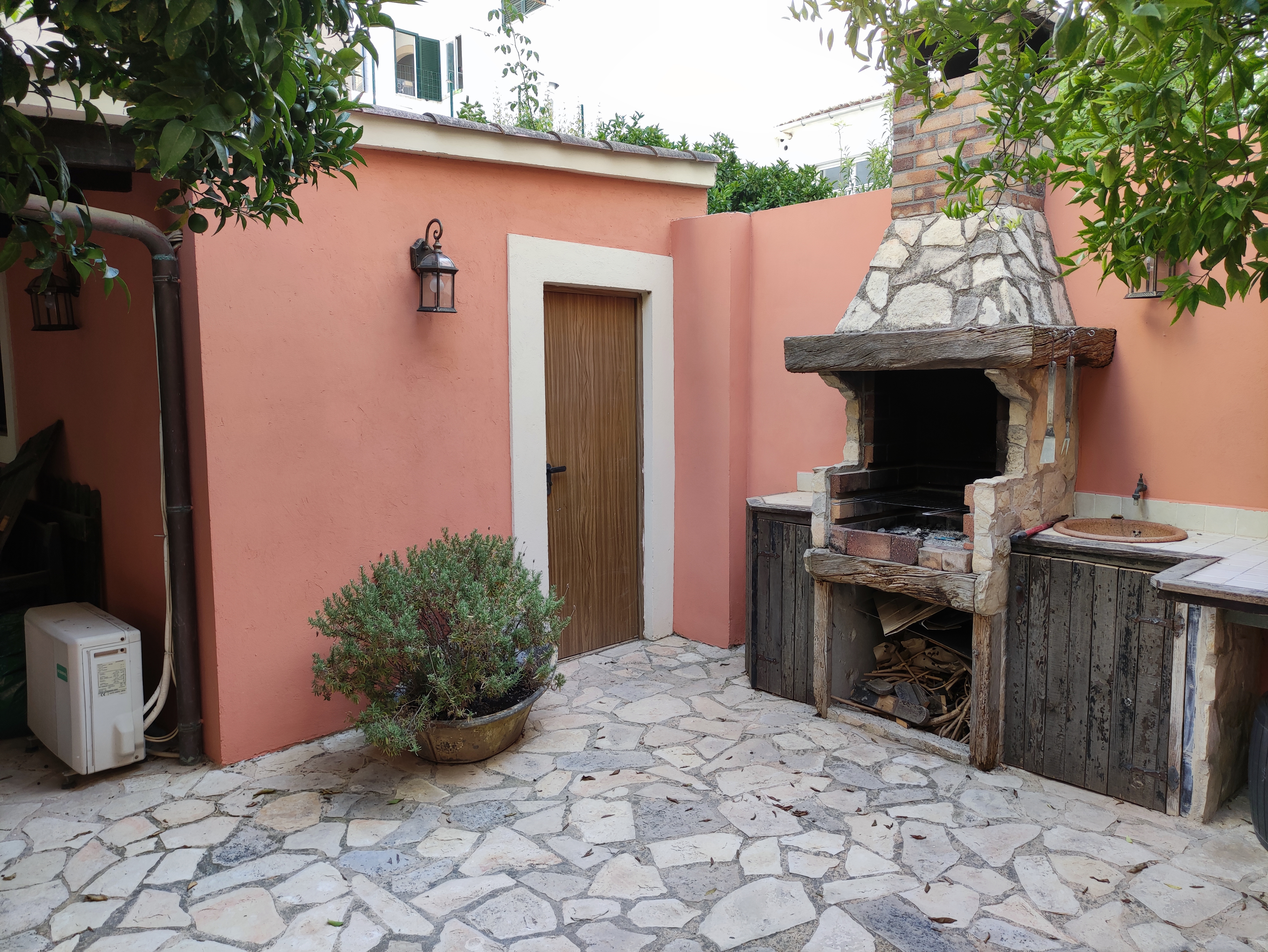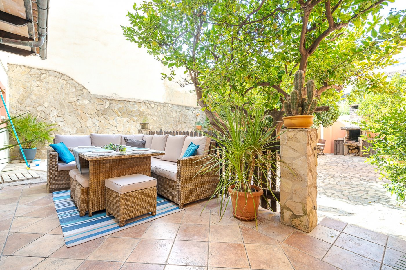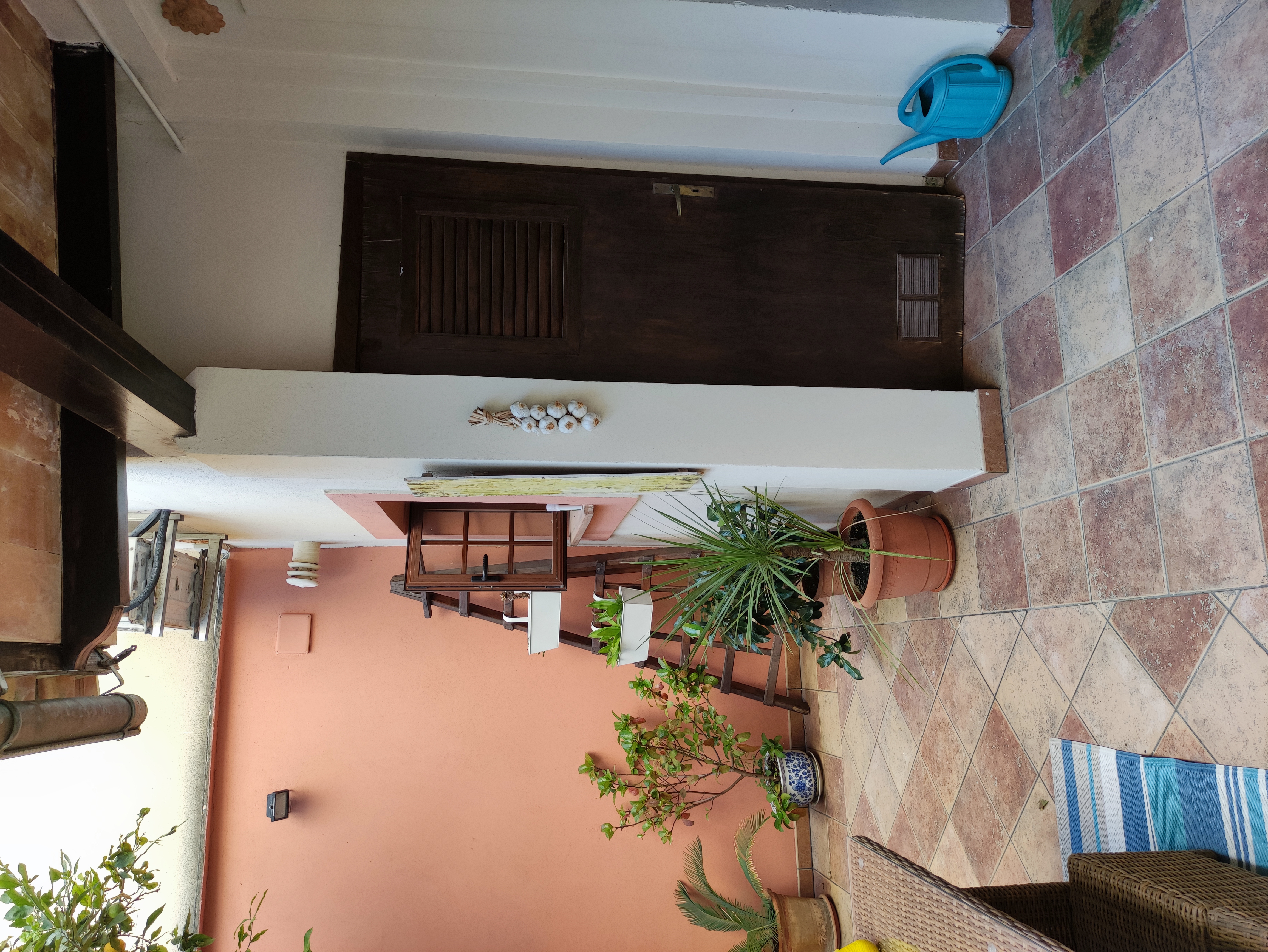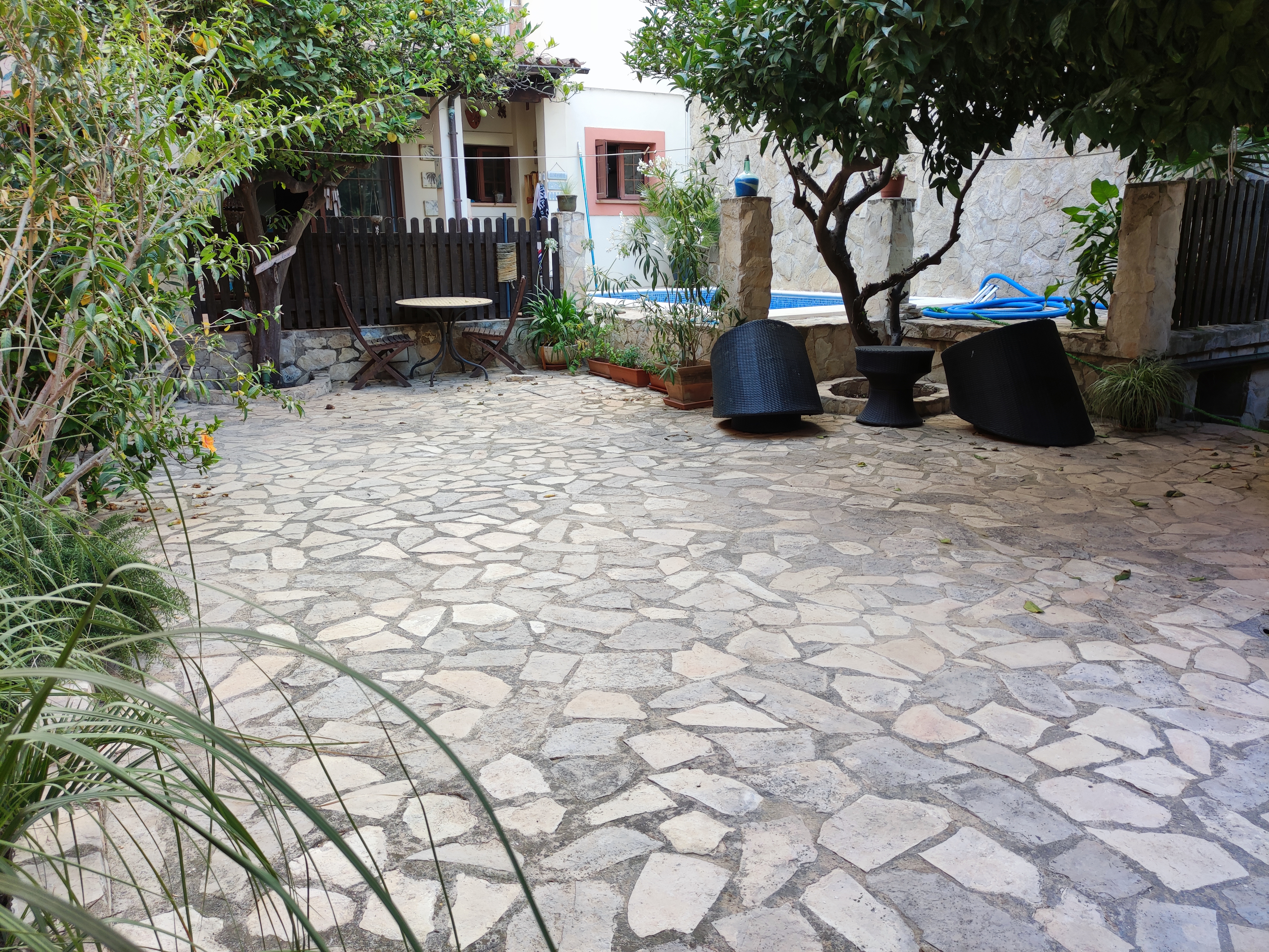 Ved udgangen til terrassen findes et vaskerum med plads til vaskemaskine, tørretumbler og vaskerum. Bortset fra terrassen med veranda, der går ned ad trappen, vil du blive overrasket over terrassen som er omkring 105 meter. Der er en lille privat swimmingpool, chill-out område, grill og frugttræer (blandt andet appelsin-, citron- og mandarin træer). Der findes også et casita med selvstændig varm/kold aircondition, som kan bruges som et opbevaringsrum eller som et ekstra rum (motionscenter, værksted osv.). Alt dette tilføjede det faktum, at ejendommen er beliggende i centrum af Palma, og kun 150 m fra "avenidas". Det har alle de nødvendige faciliteter i nærheden: supermarkeder, busstoppested, restauranter og lokale osv.