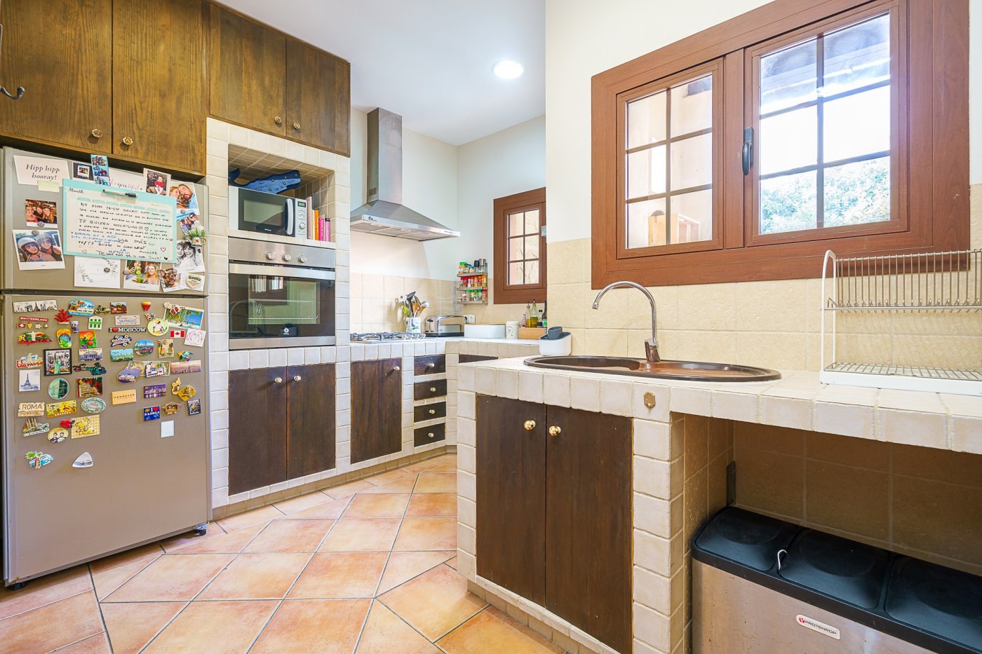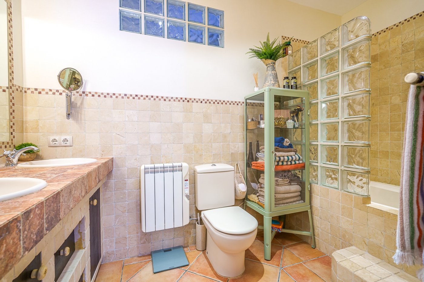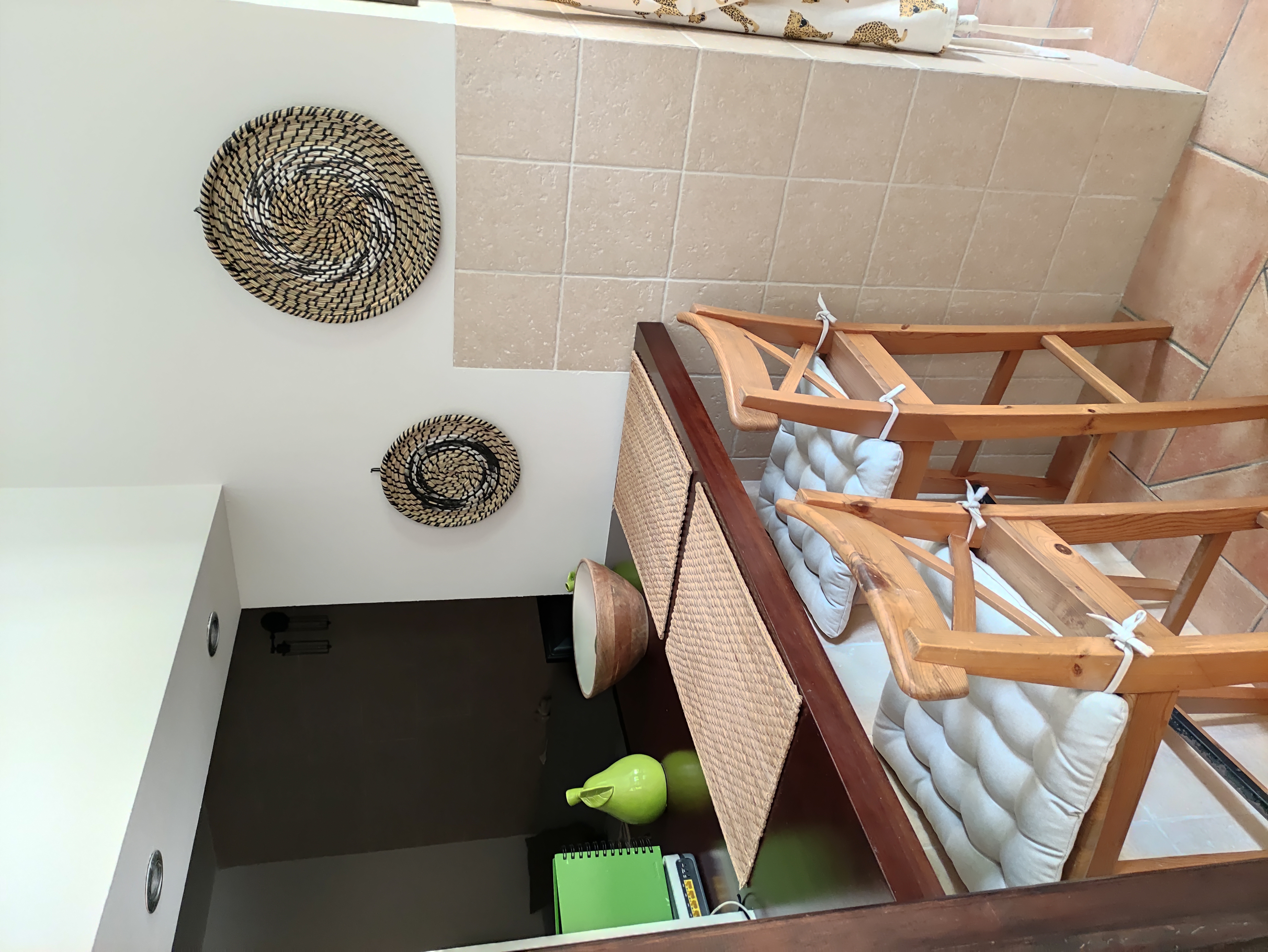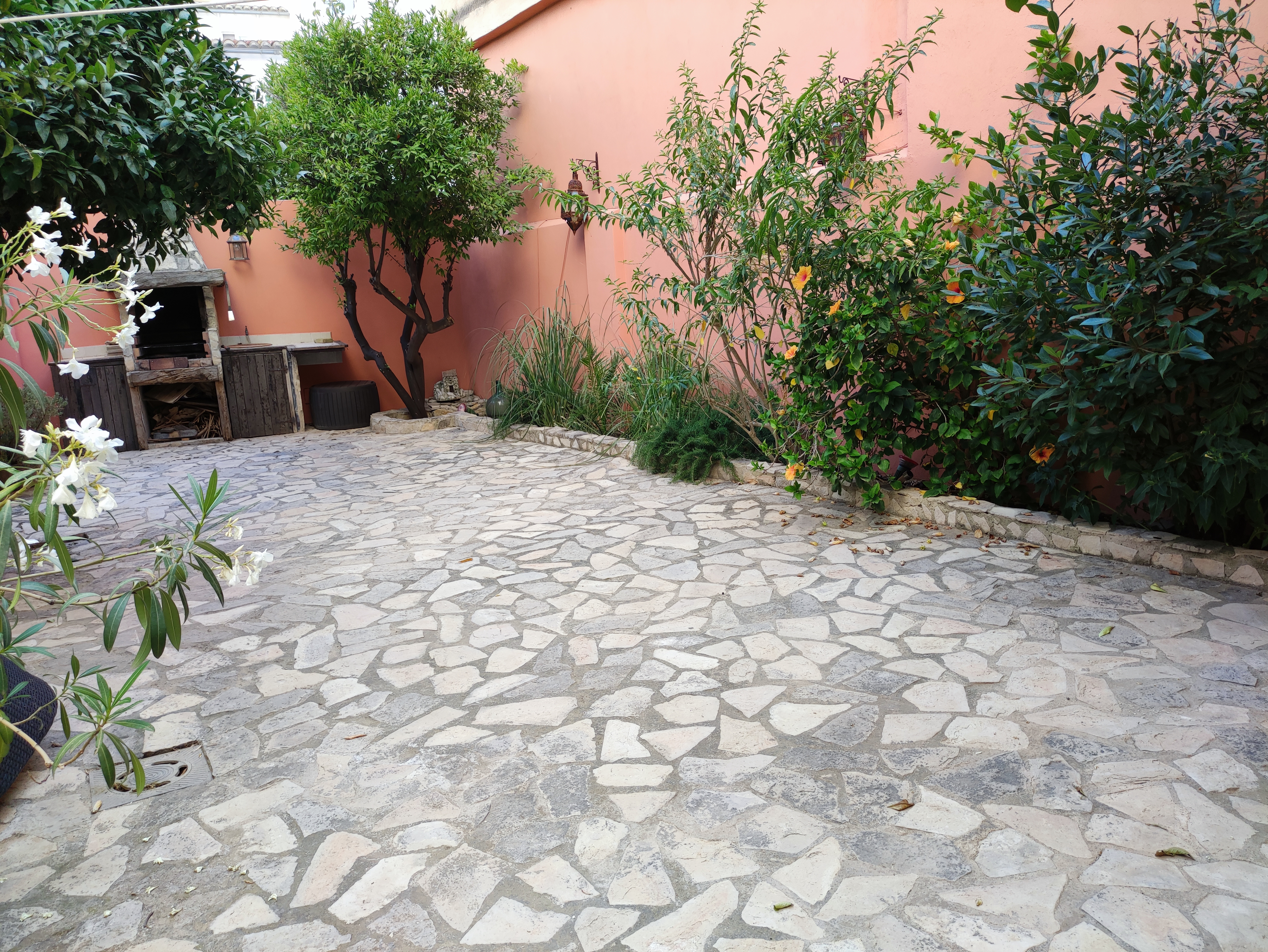 Ved udgangen til terrassen findes et vaskerum med plads til vaskemaskine, tørretumbler og vaskerum. Bortset fra terrassen med veranda, der går ned ad trappen, vil du blive overrasket over terrassen som er omkring 105 meter. Der er en lille privat swimmingpool, chill-out område, grill og frugttræer (blandt andet appelsin-, citron- og mandarin træer). Der findes også et casita med selvstændig varm/kold aircondition, som kan bruges som et opbevaringsrum eller som et ekstra rum (motionscenter, værksted osv.). Alt dette tilføjede det faktum, at ejendommen er beliggende i centrum af Palma, og kun 150 m fra "avenidas". Det har alle de nødvendige faciliteter i nærheden: supermarkeder, busstoppested, restauranter og lokale osv.