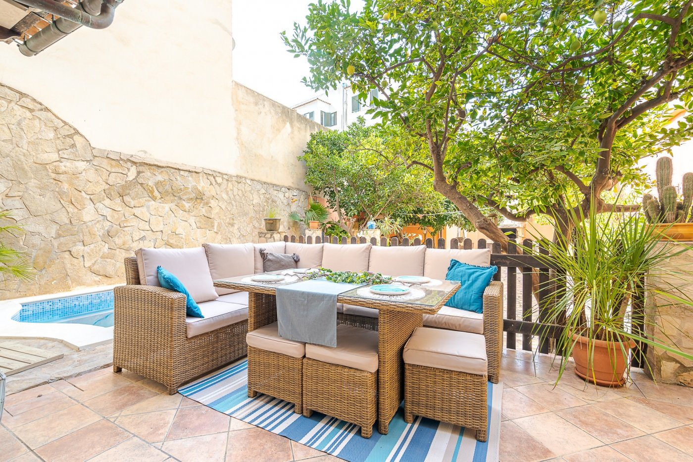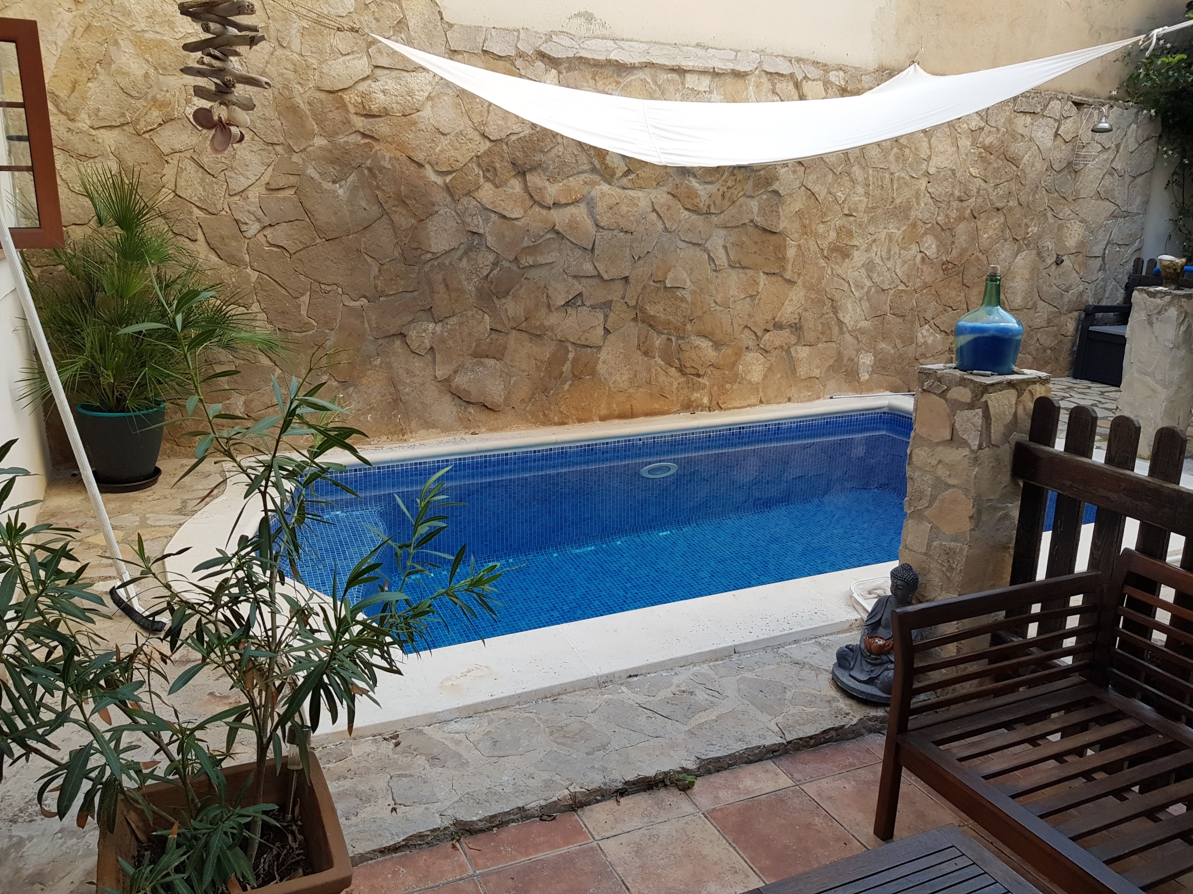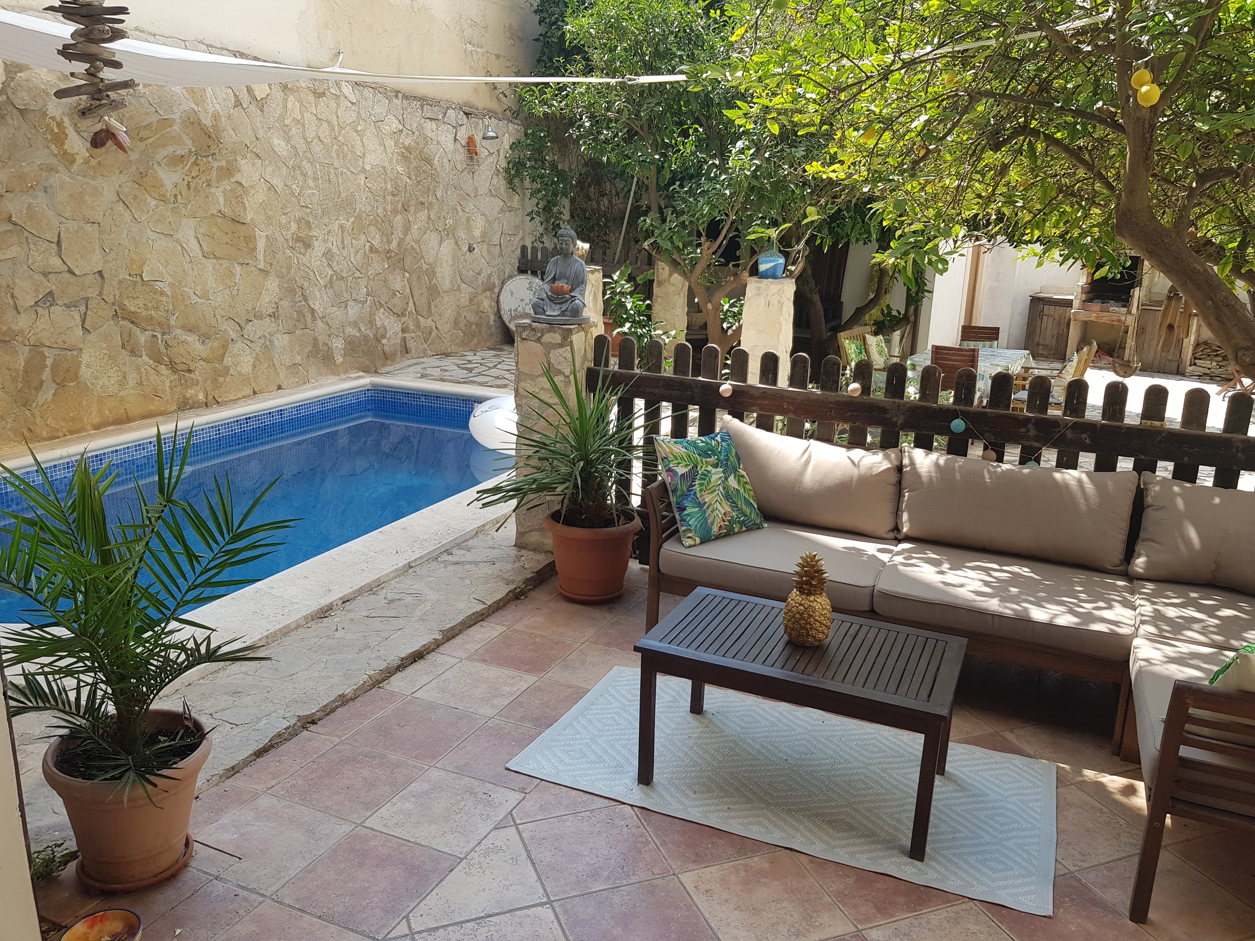 Hvis du ønsker at bo i centrum af Palma, omgivet af alle byens faciliteter, men i et roligt område, så er dette stedet for dig. Lejligheden er speciel i alle aspekter; der er ingen anden lejlighed som den: med dens end 100m2 terrasse, egne frugttræer, privat swimmingpool og dens rustikke stil, kan du være sikker på at have en unik og anderledes lejlighed end nogen anden!