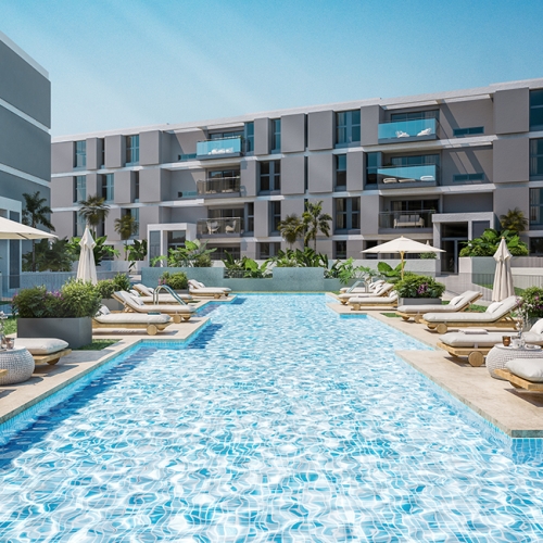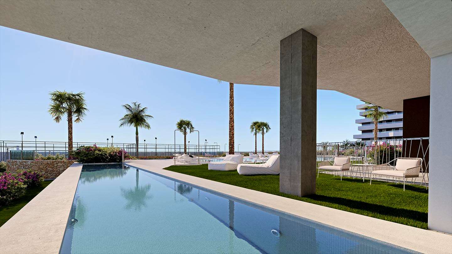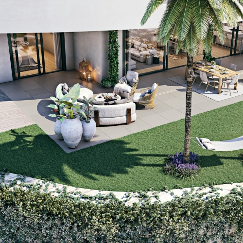 Der er et fælles område med børn og voksne svømmepools, social klub, gymnastiksal, jacuzzi, tennisbane og legeplads til børn, alt sammen omgivet af en omhyggeligt designet have.