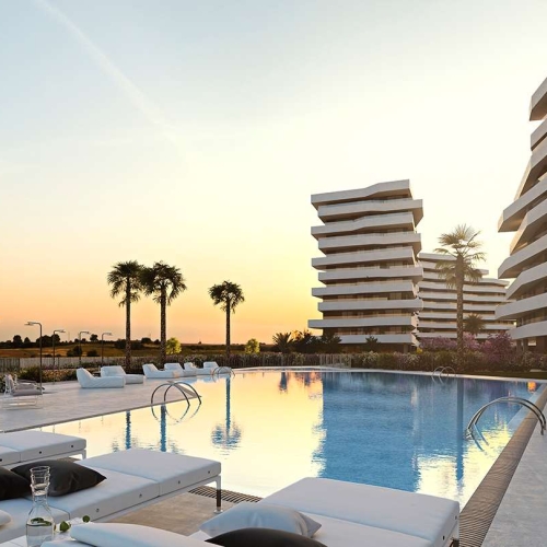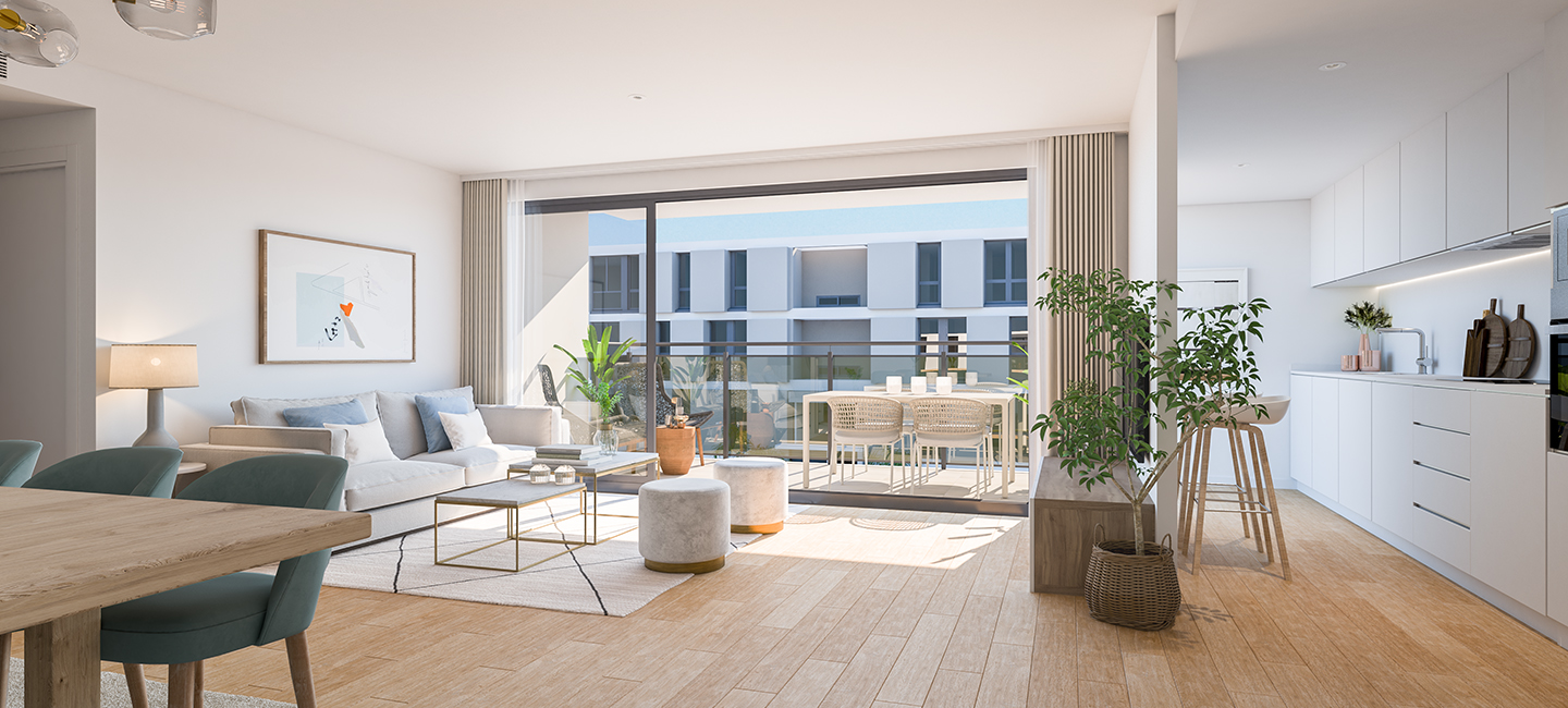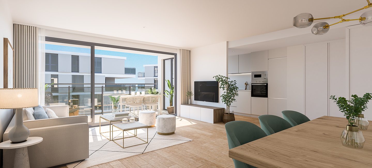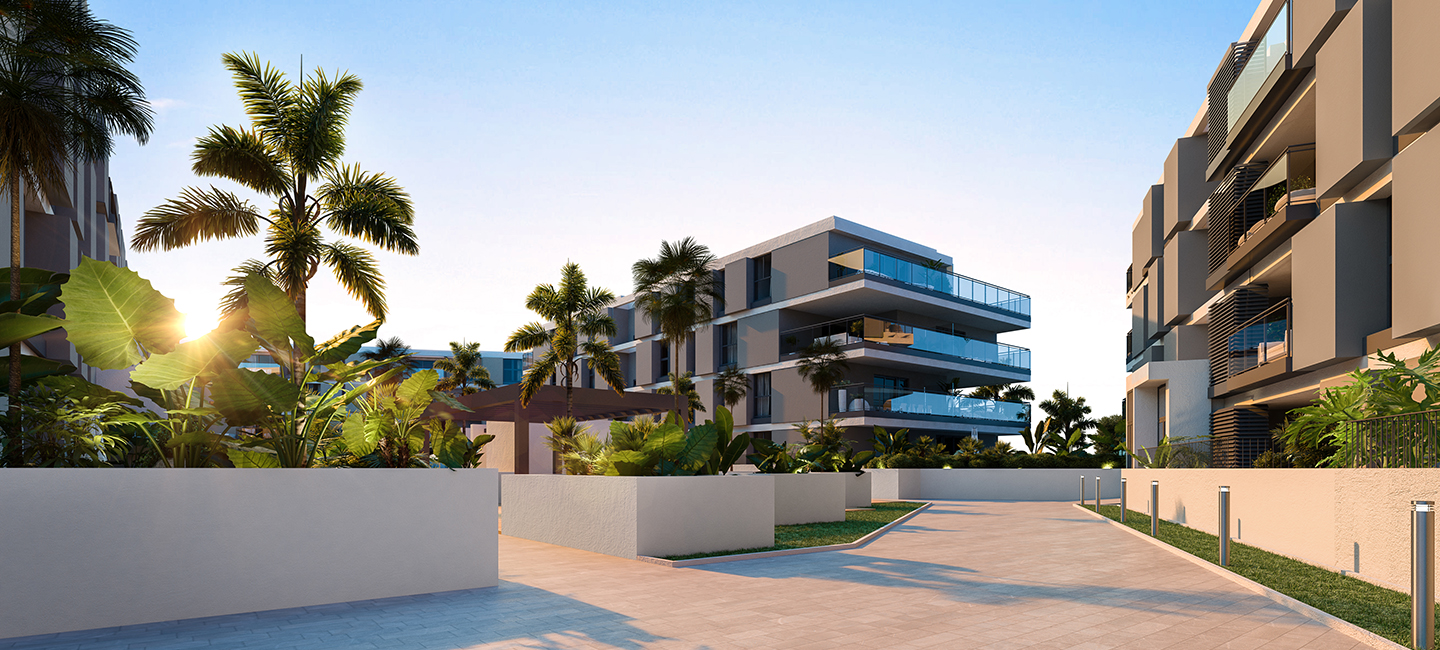 104 2, 3 og 4 værelses designerlejligheder, 60 lejligheder i fase 1, og 44 i fase 2, med typer på 2 til 4 soveværelser med garage, depotrum og fælles pool.