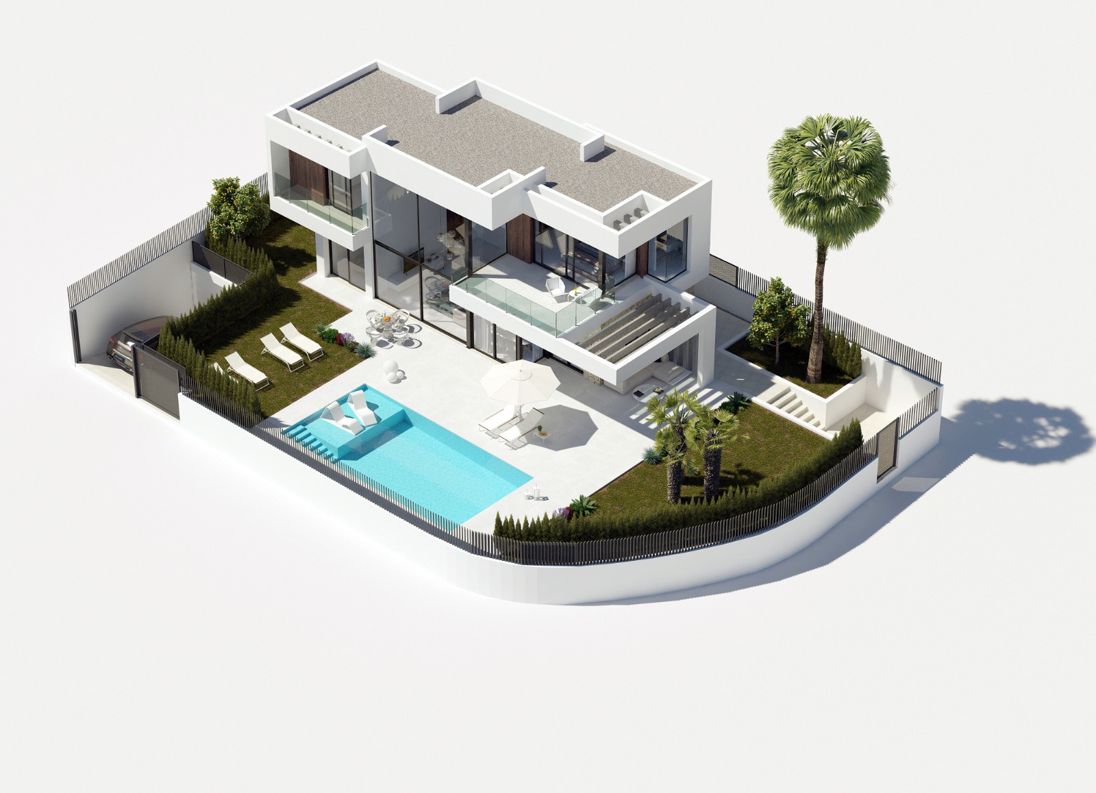 Deres omfattende udsigt over haven og swimmingpoolen giver en kølig kontrast. Hvert hjem har sin egen private pool og solterrasse, så du kan nyde over 320 solskinsdage om året på den vidunderlige Costa Blanca.