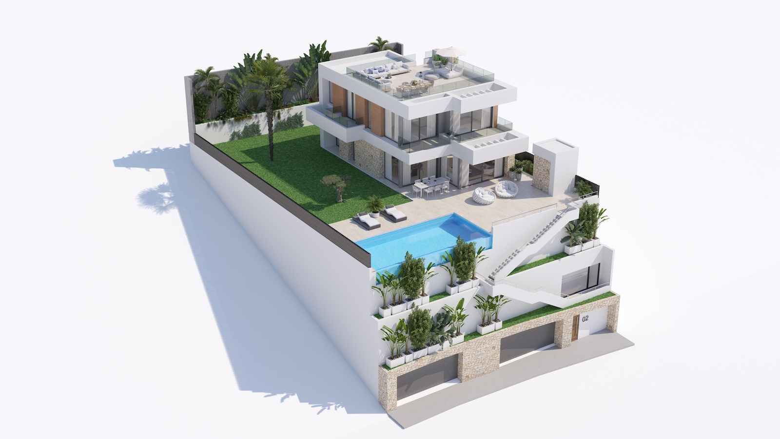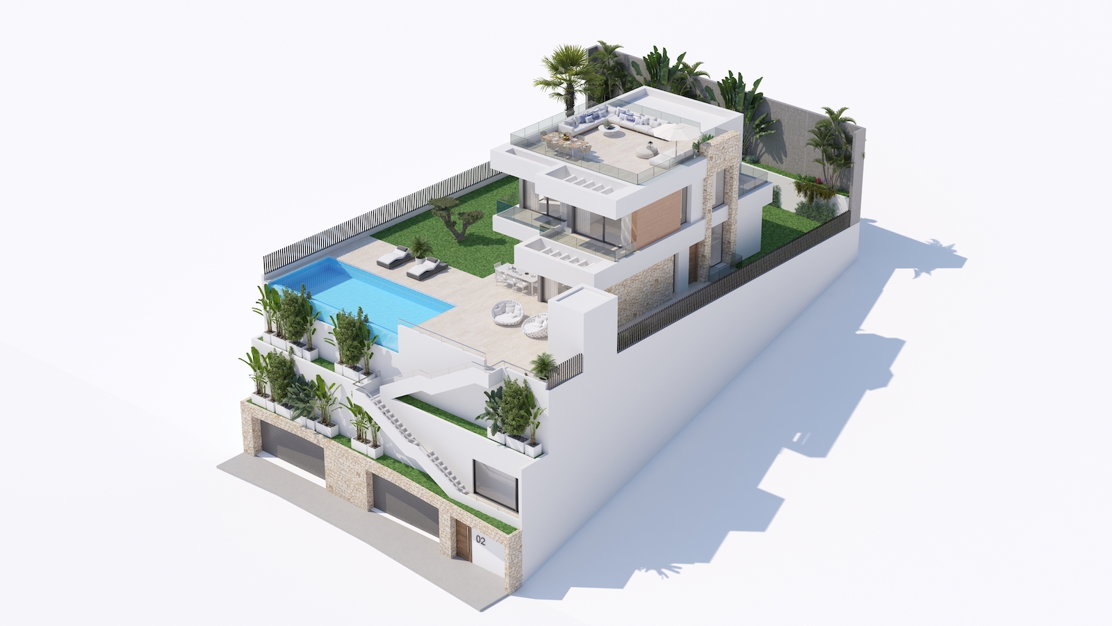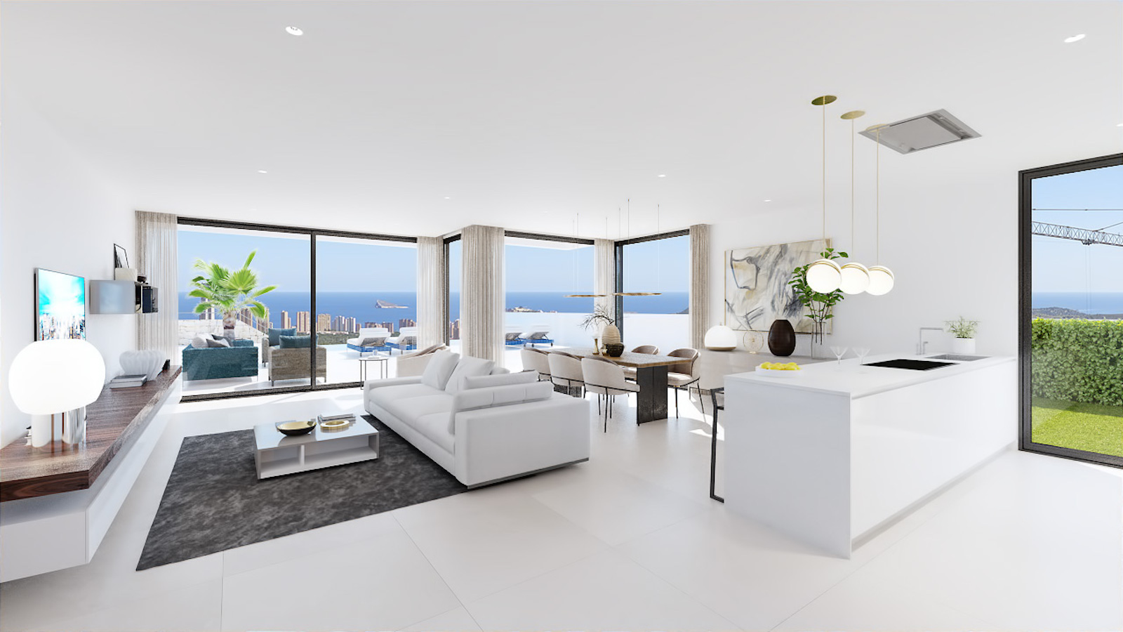 Villaer til salg 250 meter fra havet i Finestrat. 3 soveværelser og 4 badeværelser.