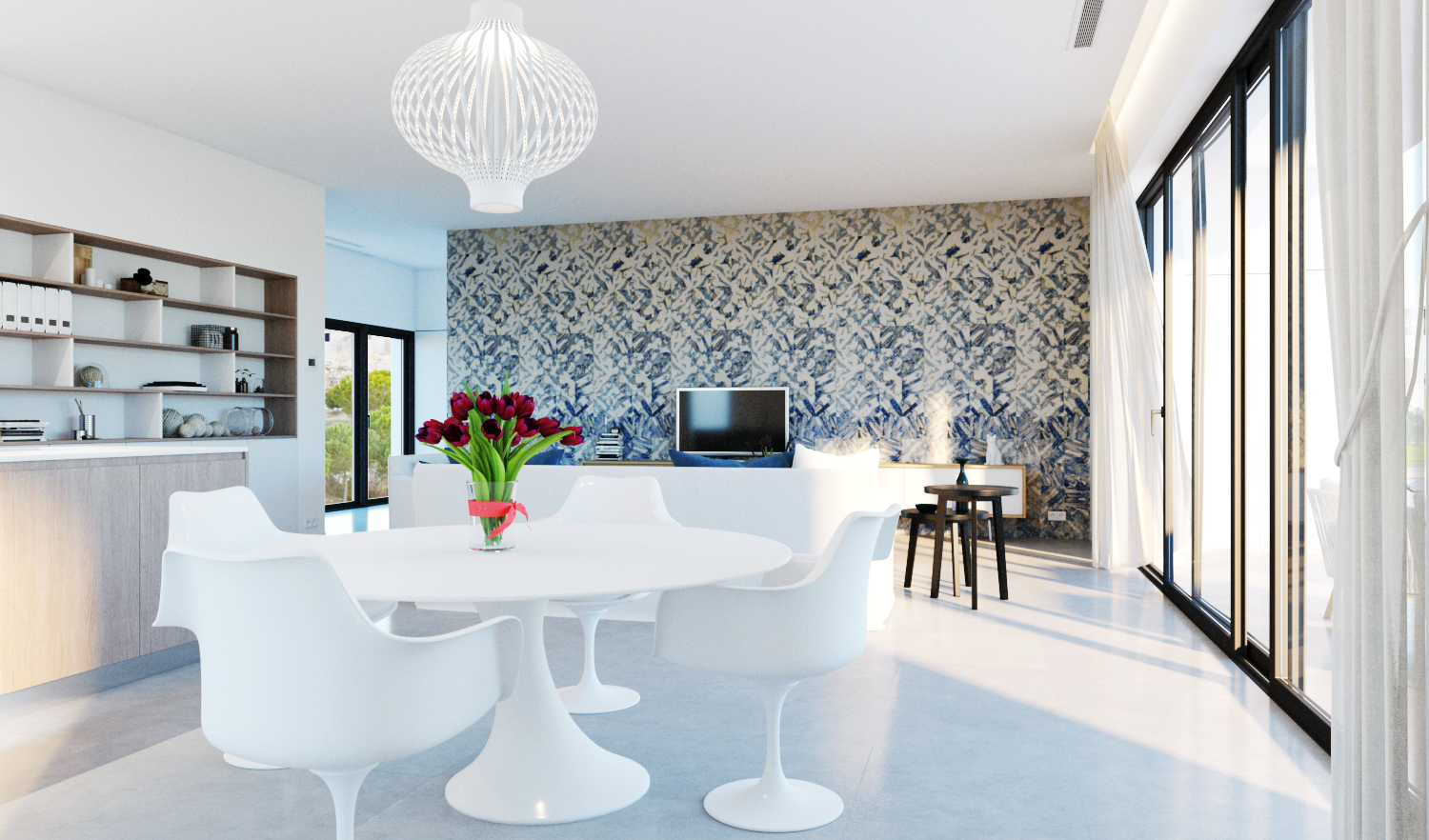 "Du finder denne smukke villa i Javea, mindre end 1 kilometer fra Middelhavet med 3 soveværelser og 2 badeværelser og en grund på 1.000 m2. Når du går ind i villaen, finder du det åbne køkken, spiseplads og stue på mere end 57m2.