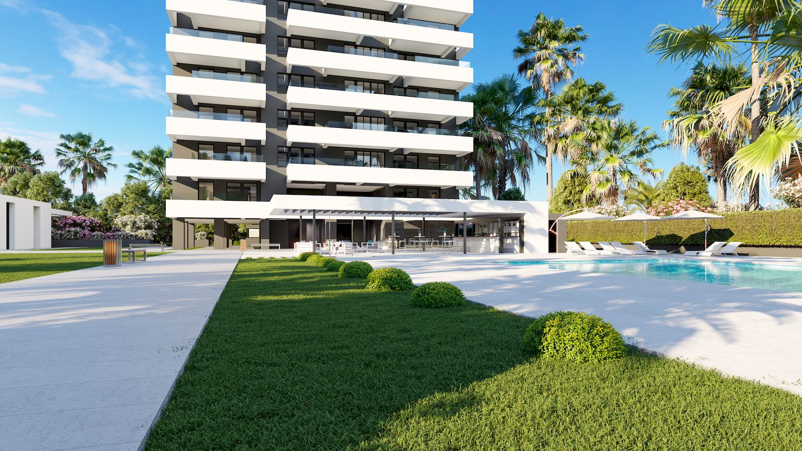 Fællesområdet: Haver, swimmingpool, paddle tennisbane og indendørs rekreativt område inviterer dig til at bo efter en dag på stranden. For at beundre solnedgangen har hver bygning sit eget fælles rum med havudsigt, fitnesscenter, terrasse og gourmetområde (9. etage). Der er underjordiske parkeringspladser og opbevaringsrum til hver lejlighed.
