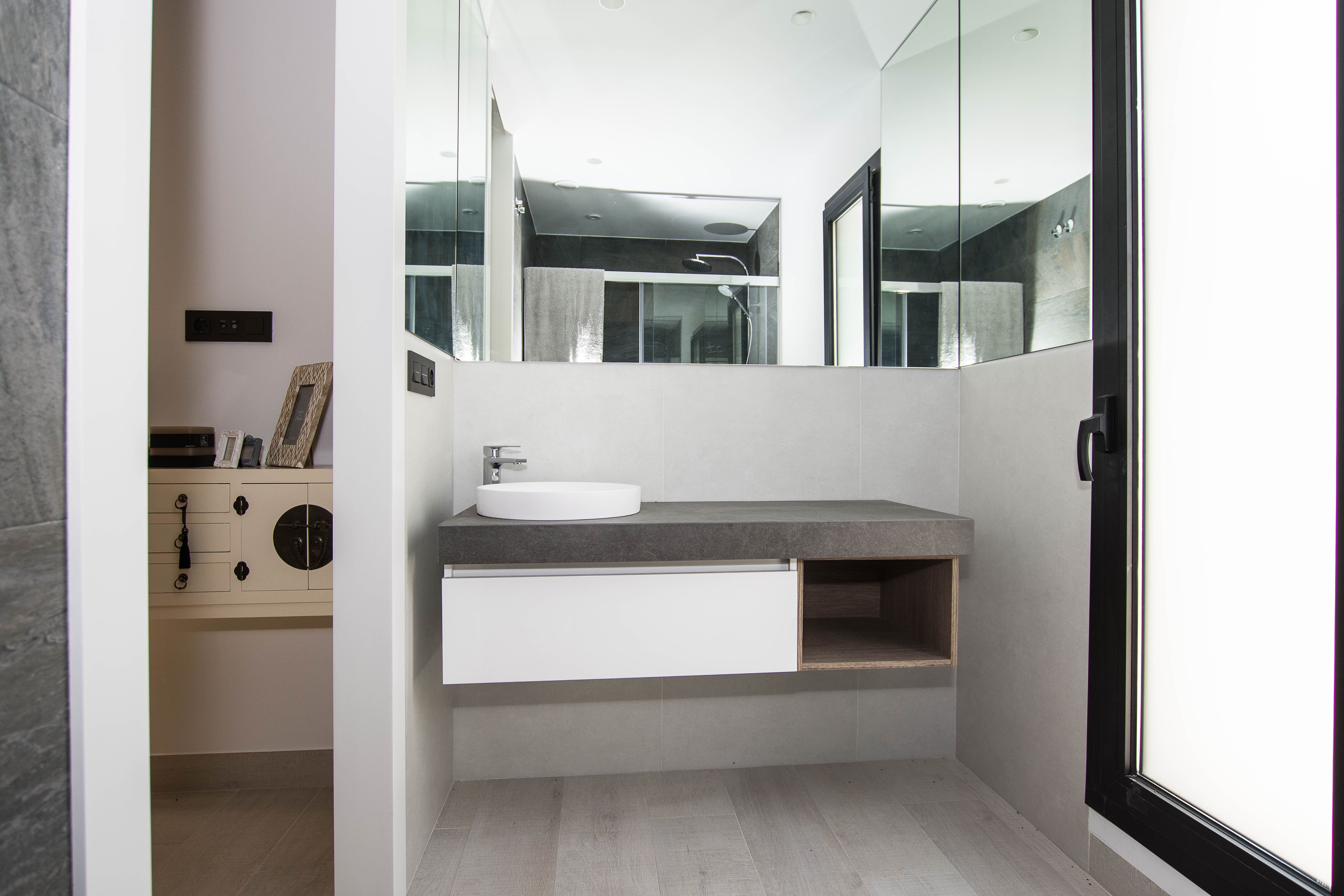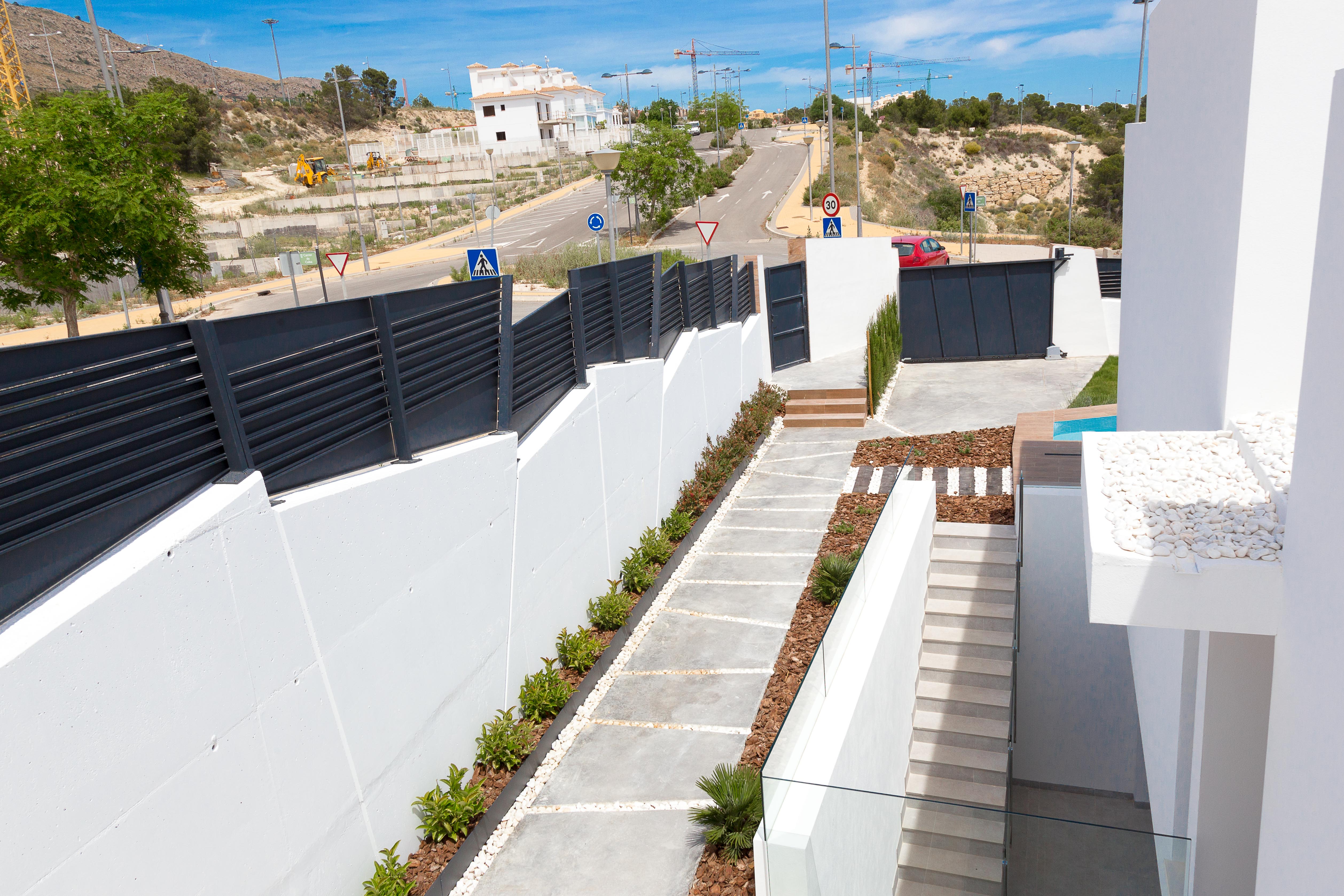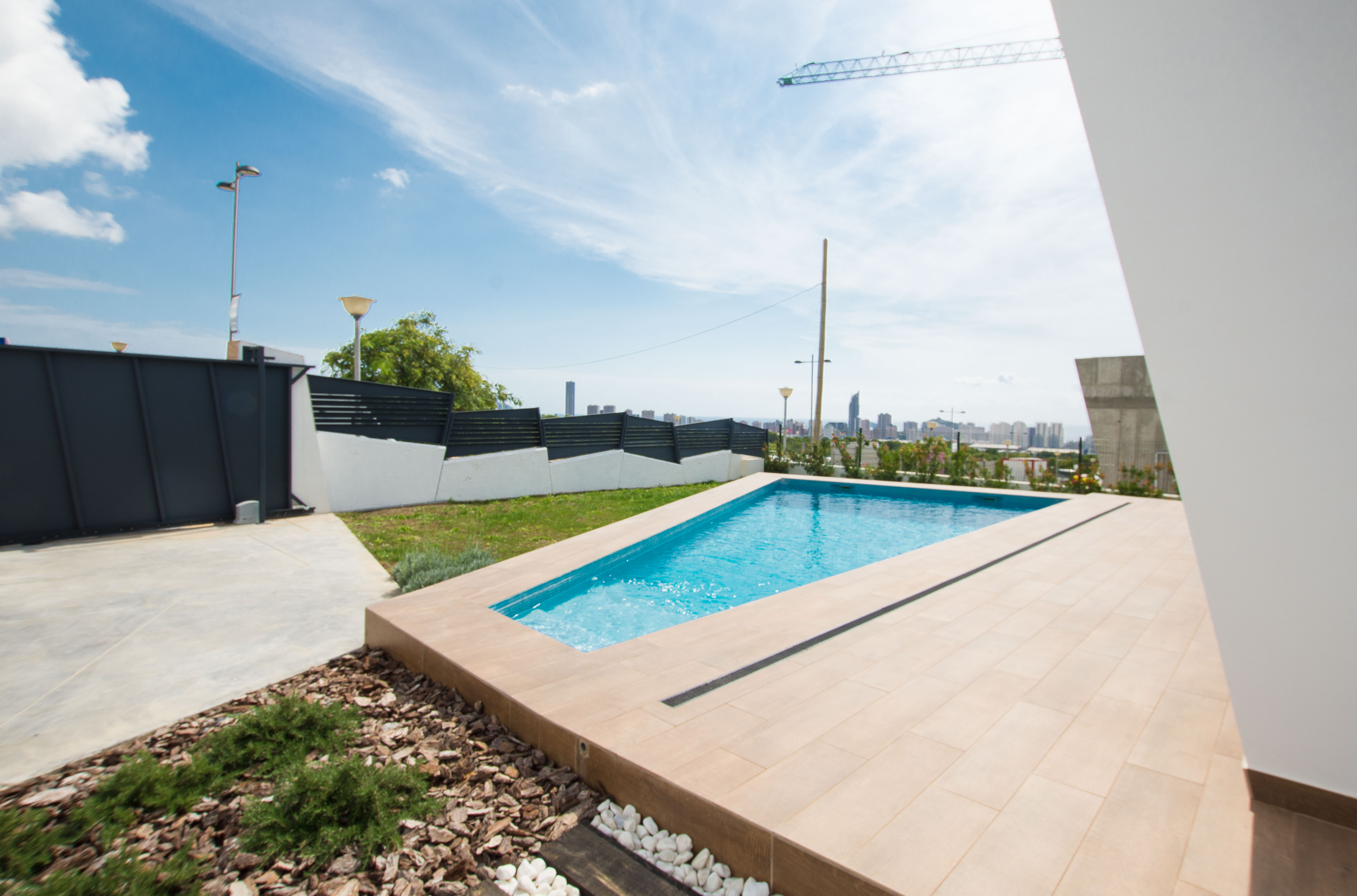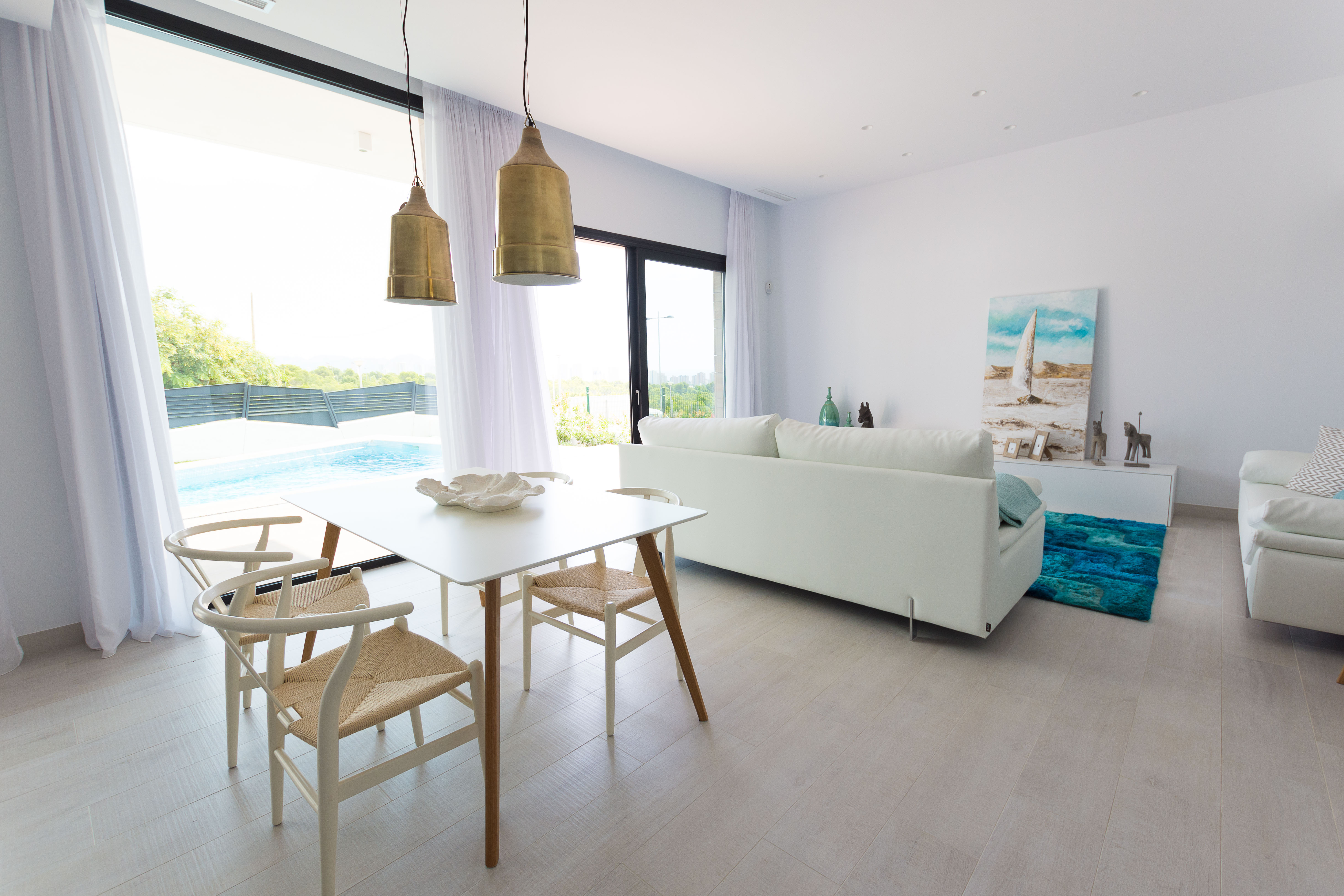 Dette hus er fordelt på et plan, hvor du kan finde 3 soveværelser med dobbeltsenge, en suite, 2 badeværelser, en lys stue med store vinduer og direkte adgang til poolen og haven, solområde.