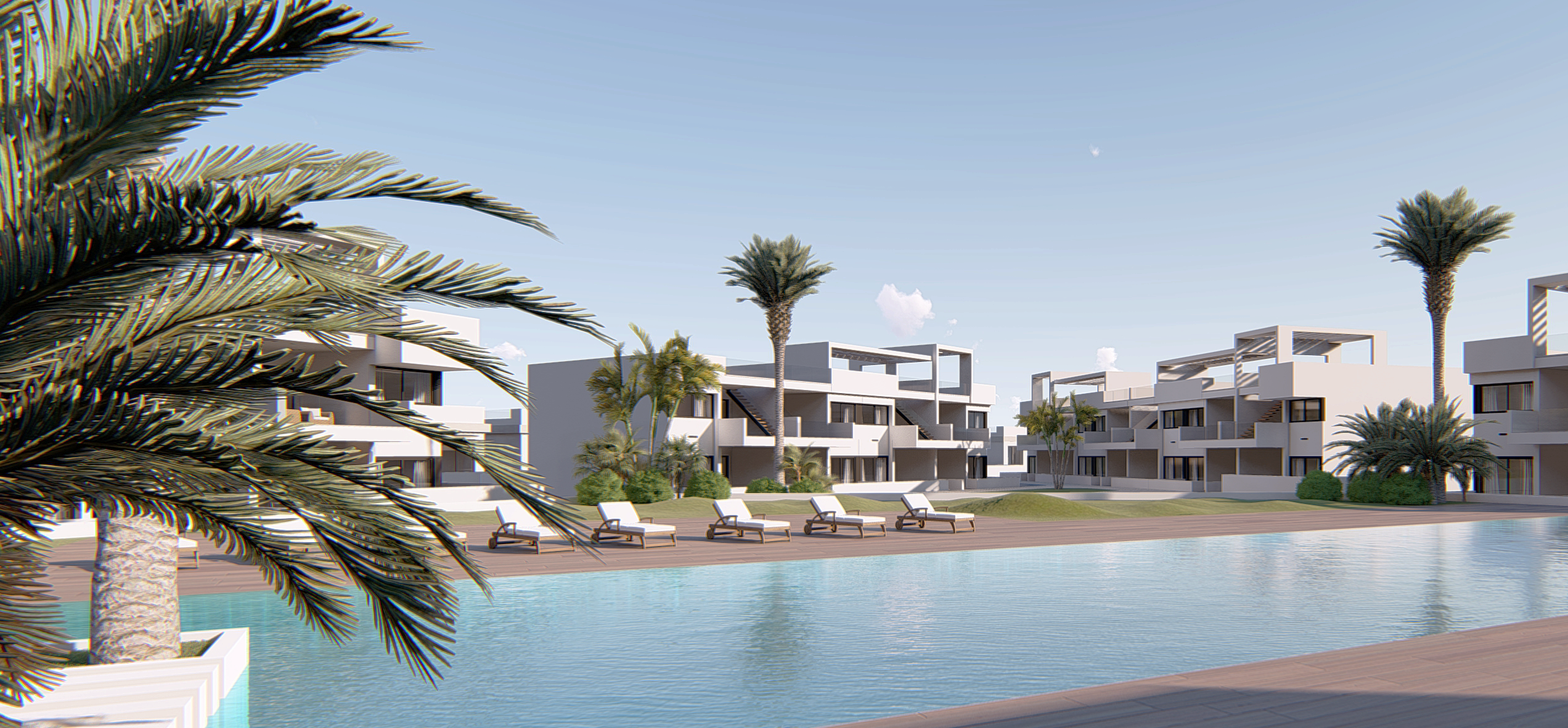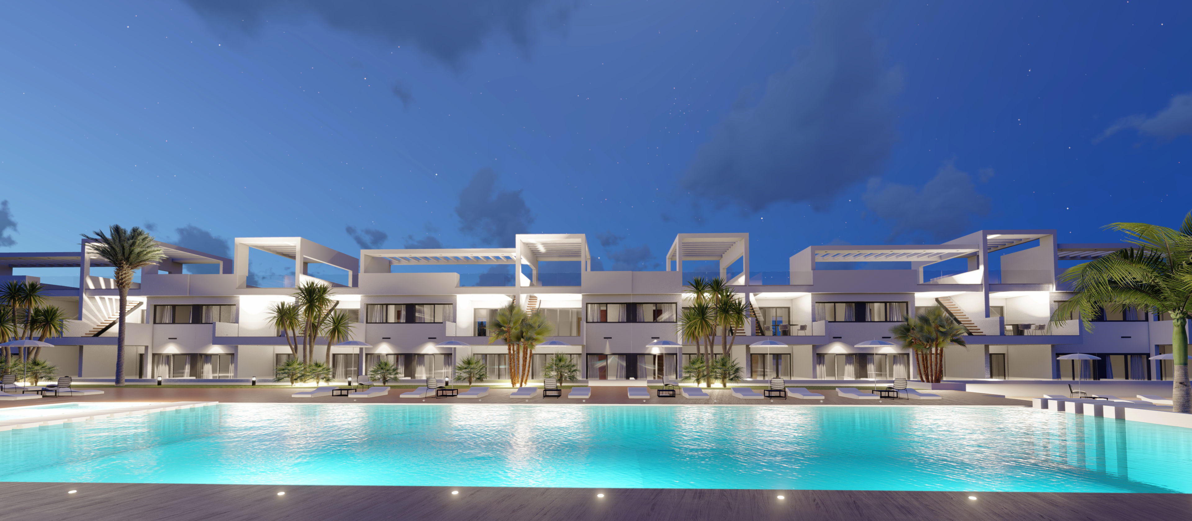 Bungalowerne på 120m2, har flere terrasser eller solområder, 2 soveværelser og 2 toiletter. Bungalowerne har også en underjordisk garage og et lagerrum.