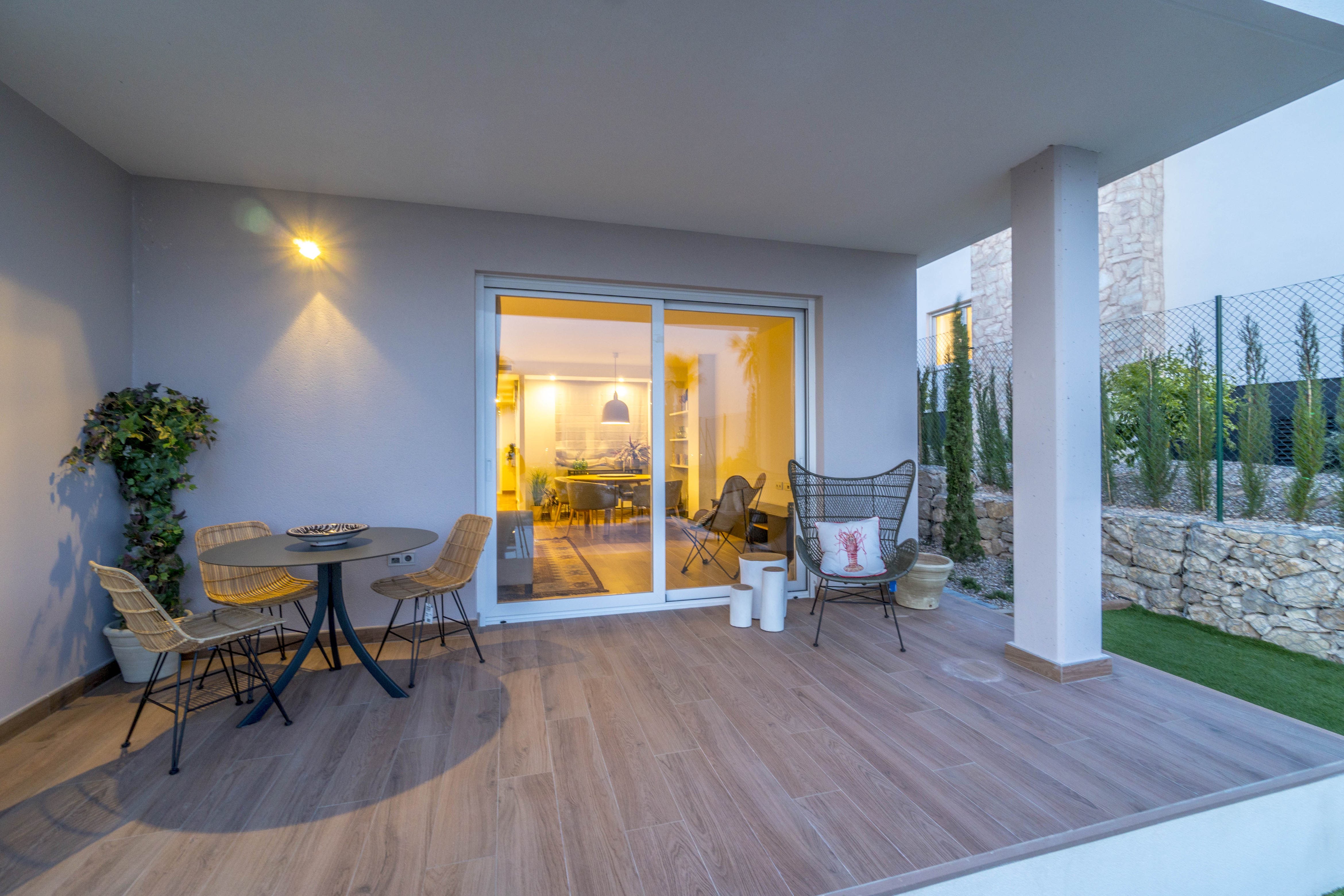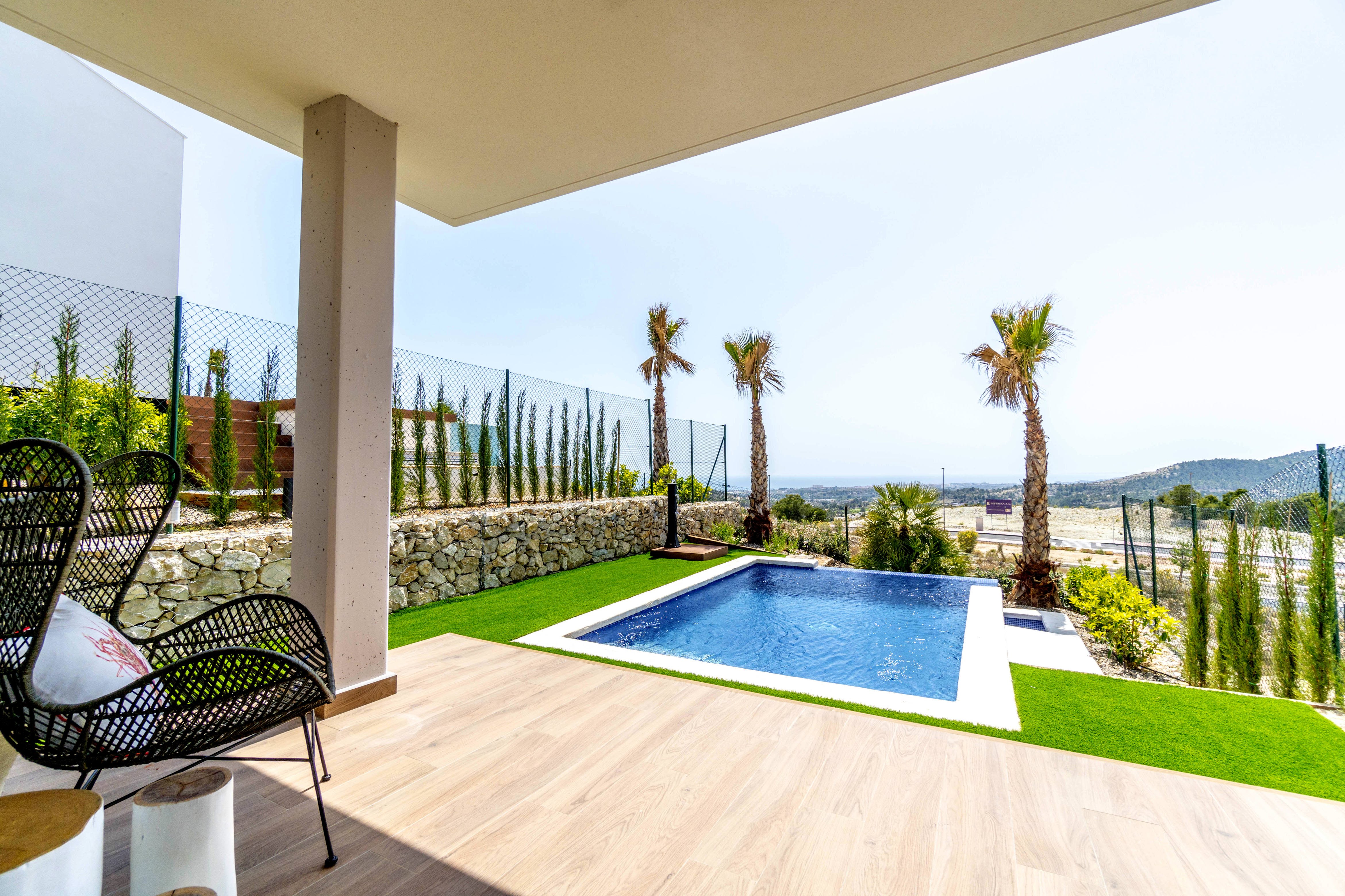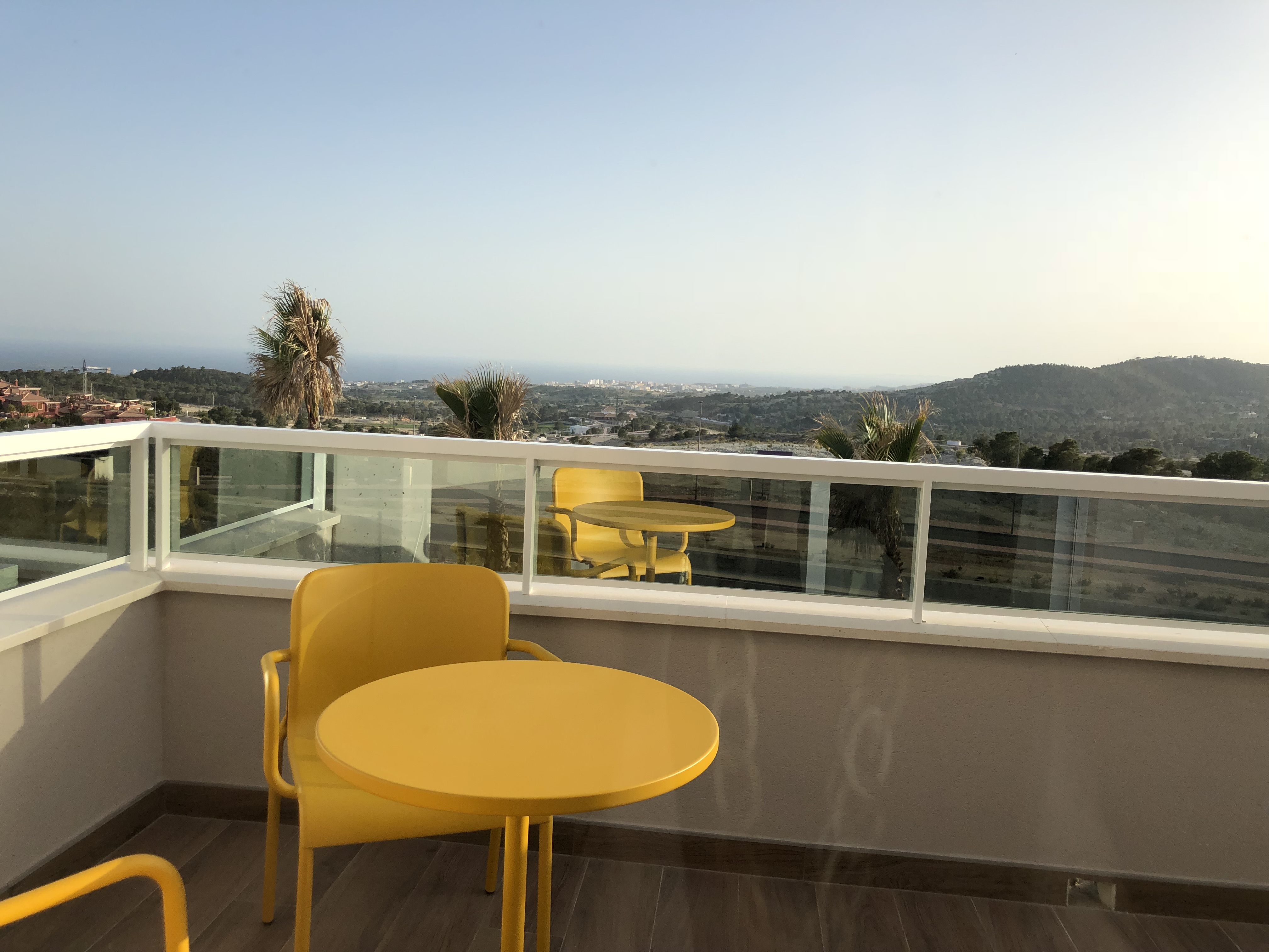 Attraktivt 2-etagers rækkehus med en fantastisk udsigt over Costa Blanca og Puig Campana fra alle rum. Ved siden af golfbanen “Alfarella”.
