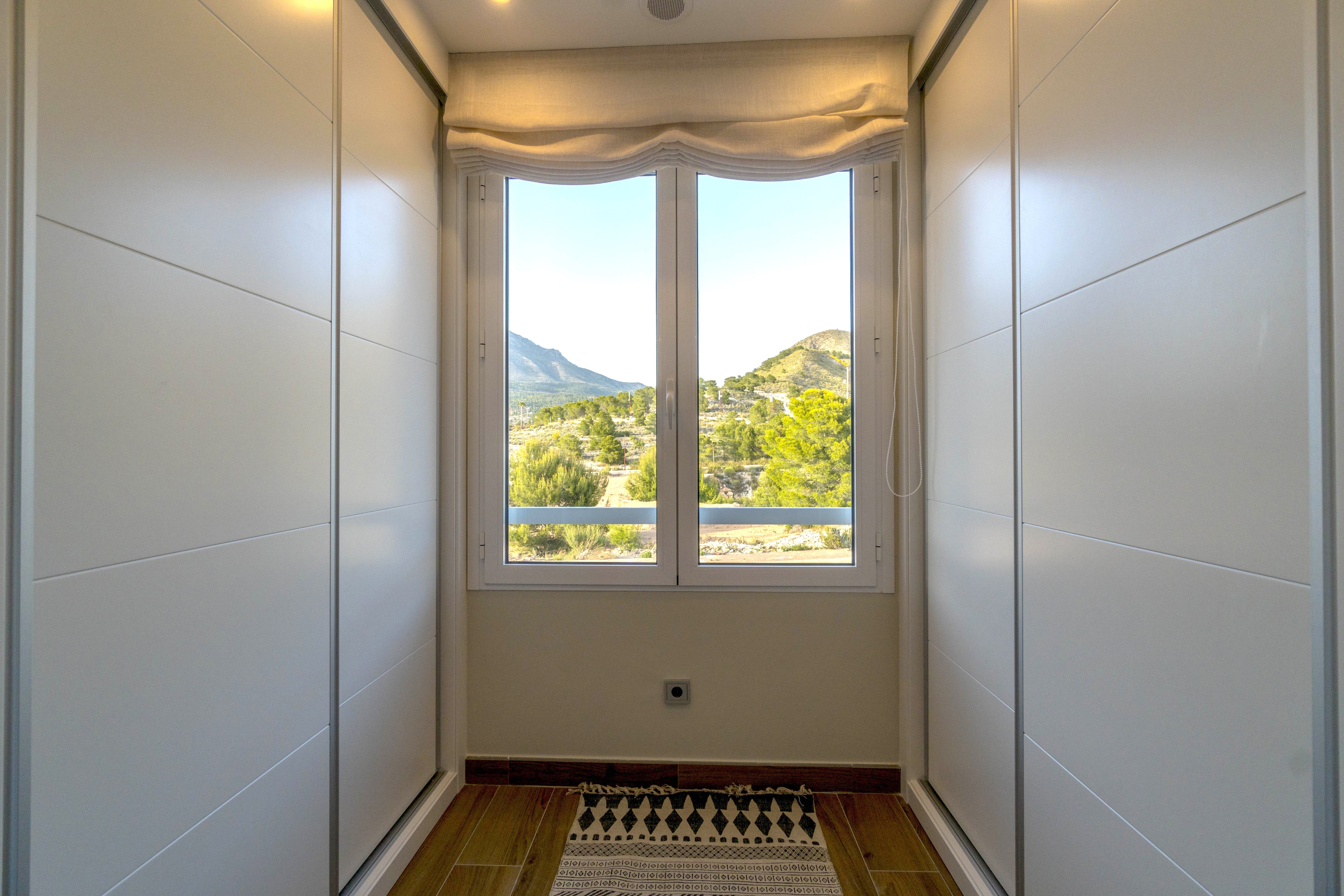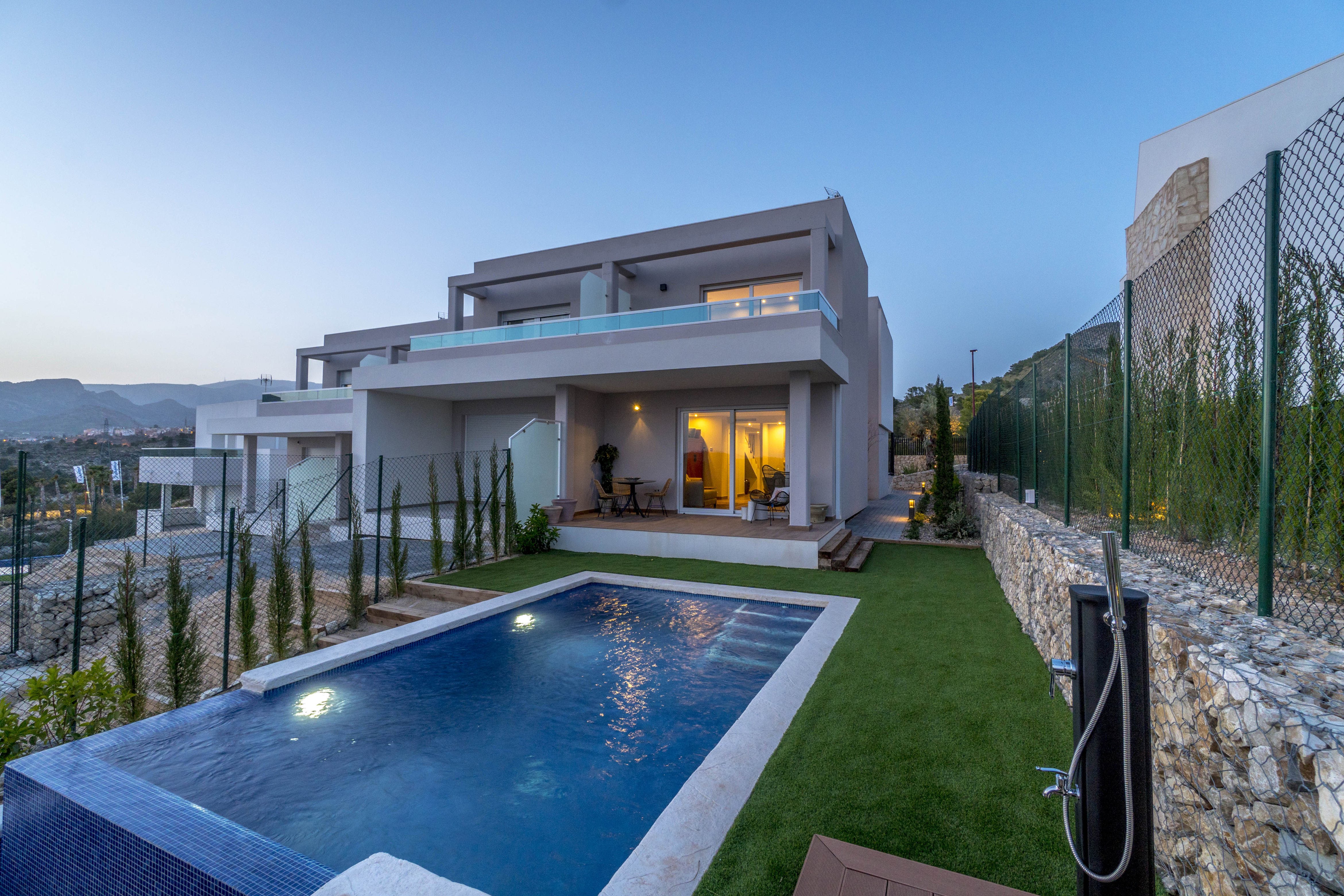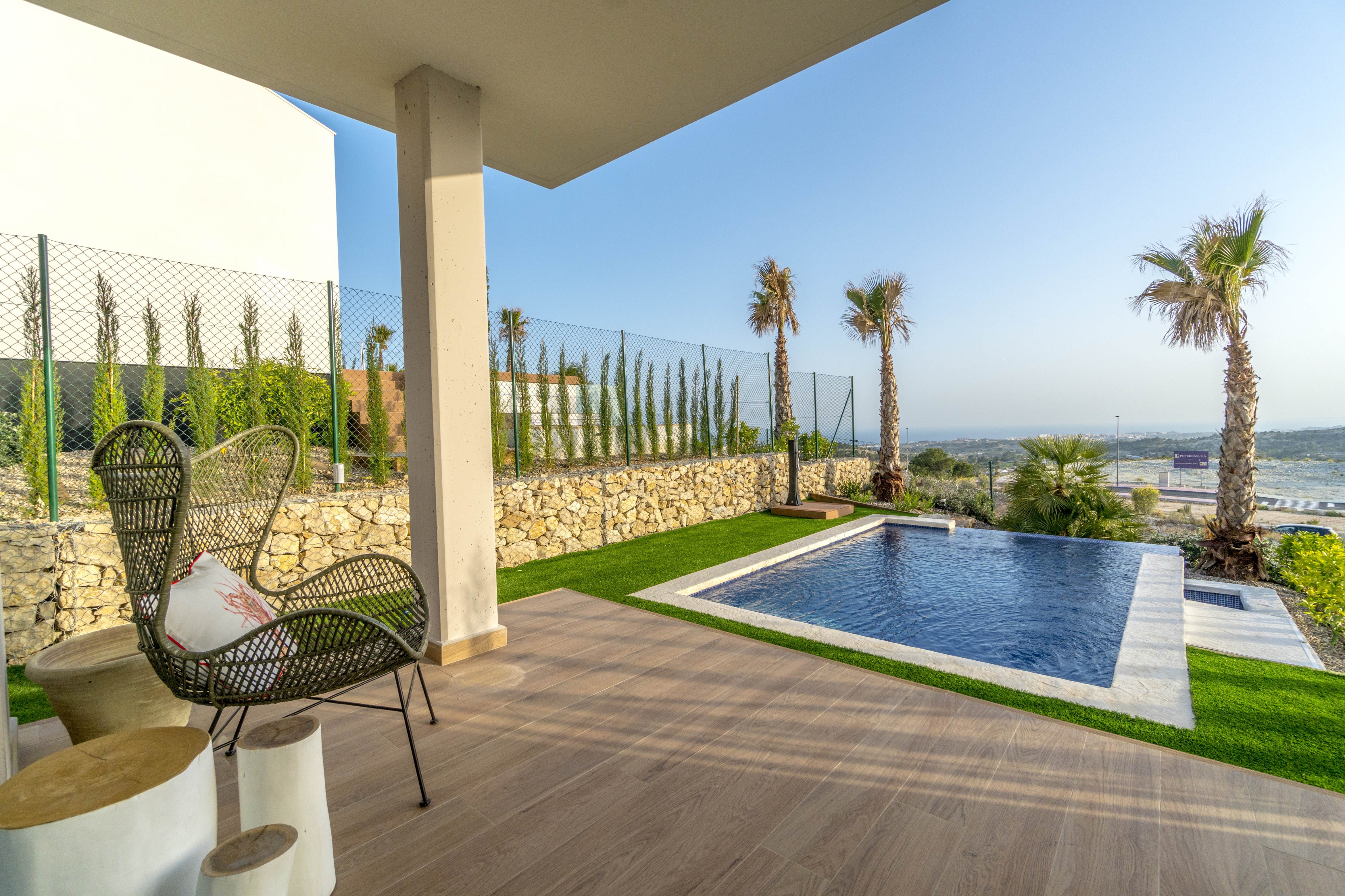Attraktivt 2-etagers rækkehus med en fantastisk udsigt over Costa Blanca og Puig Campana fra alle rum. Ved siden af golfbanen “Alfarella”.