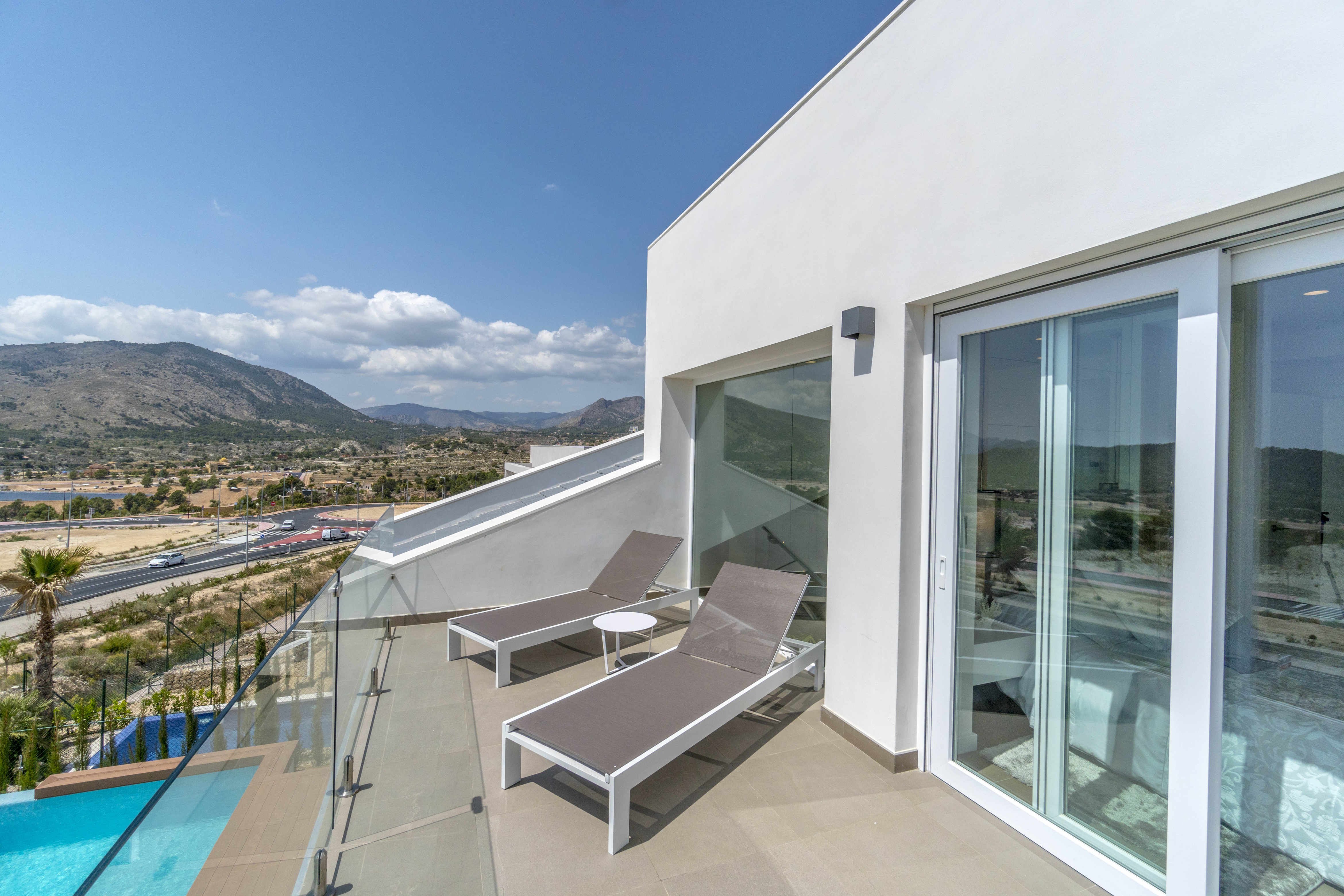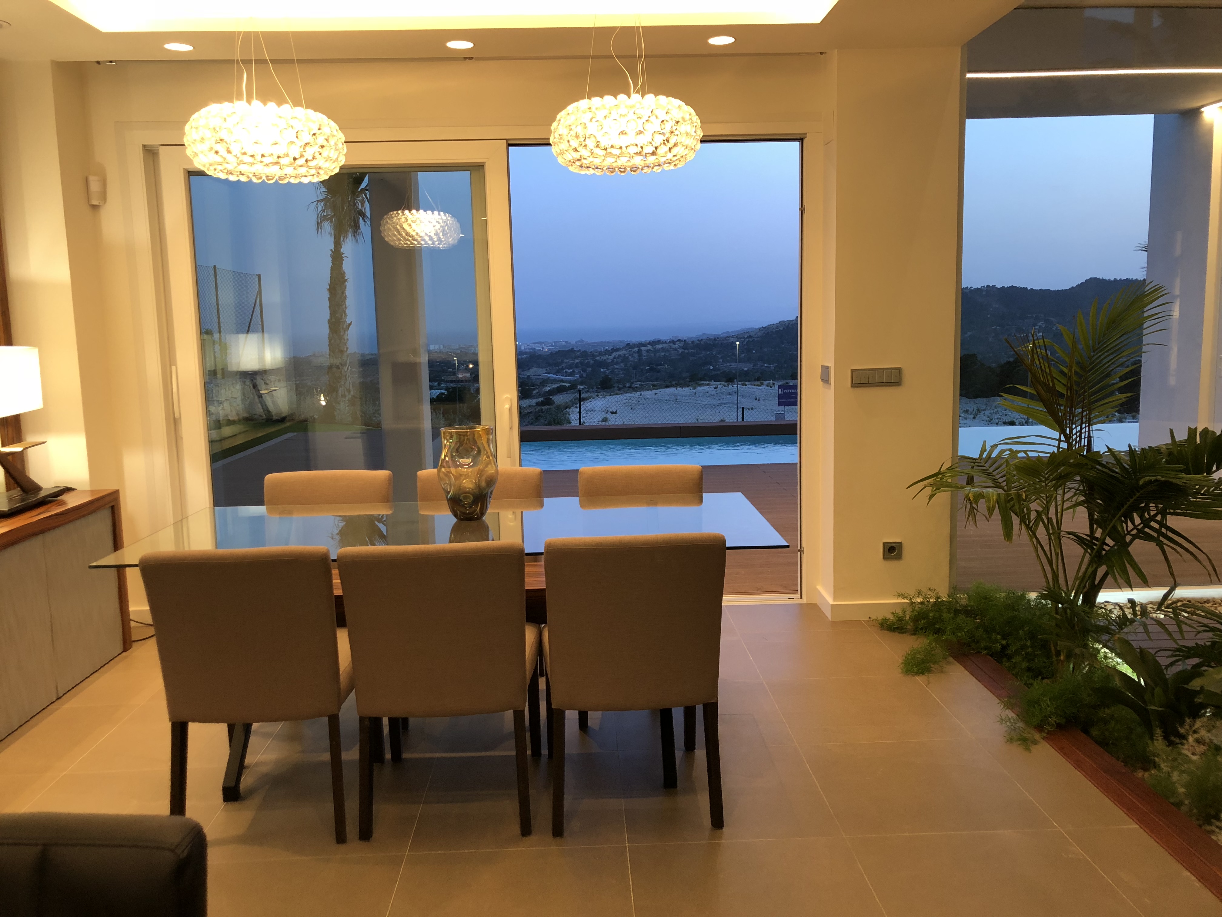 High-end Villa beliggende på plot M 5 kun 100 meter fra golfbanen "Alfarella", der vender ud mod havet fra fronten og fremragende udsigt over Puig Campana fra bagsiden.